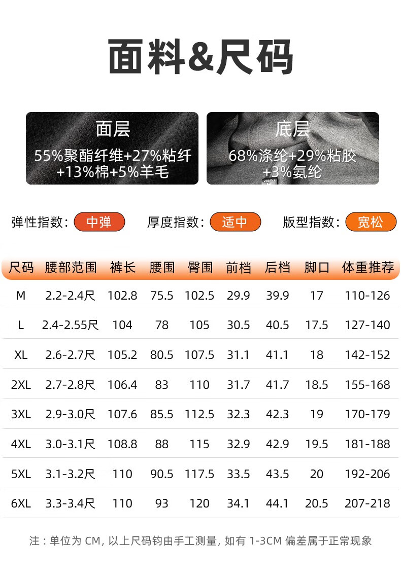 Outseam (cm) 99 cm 101.5 cm 104 cm 106.5 cm 109 cm