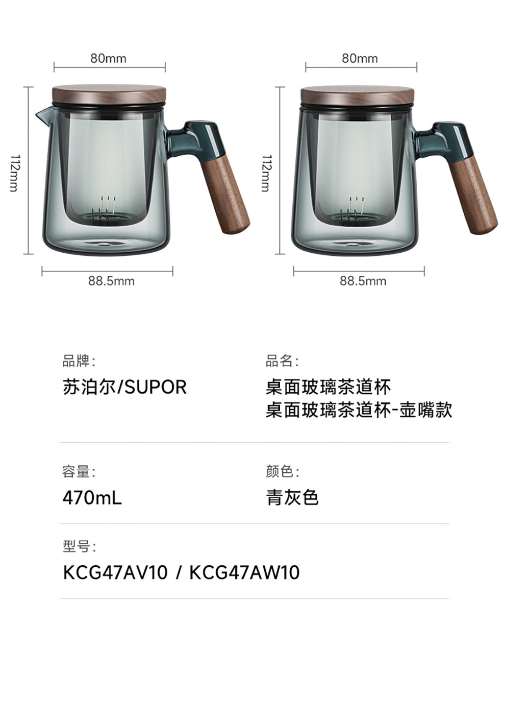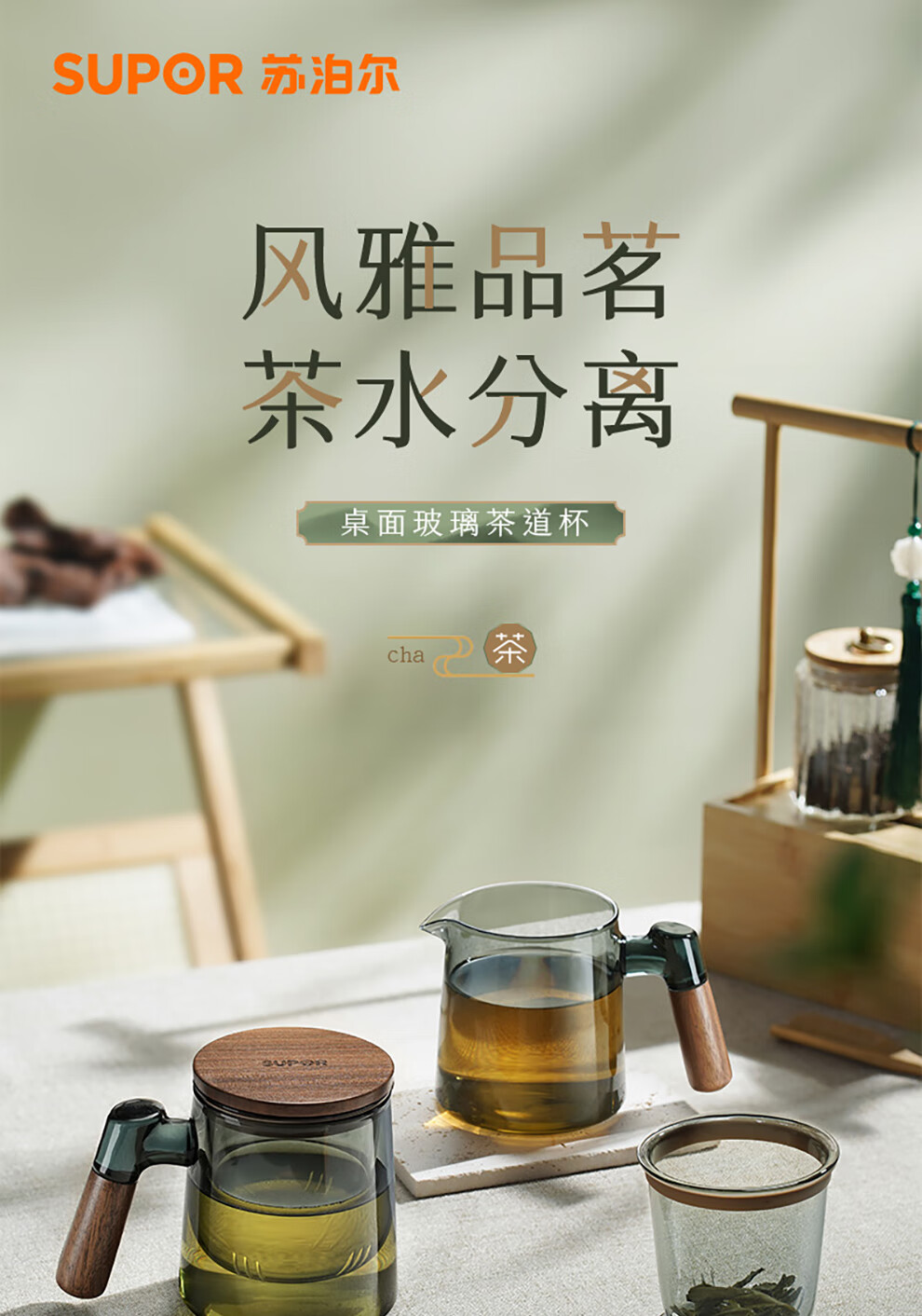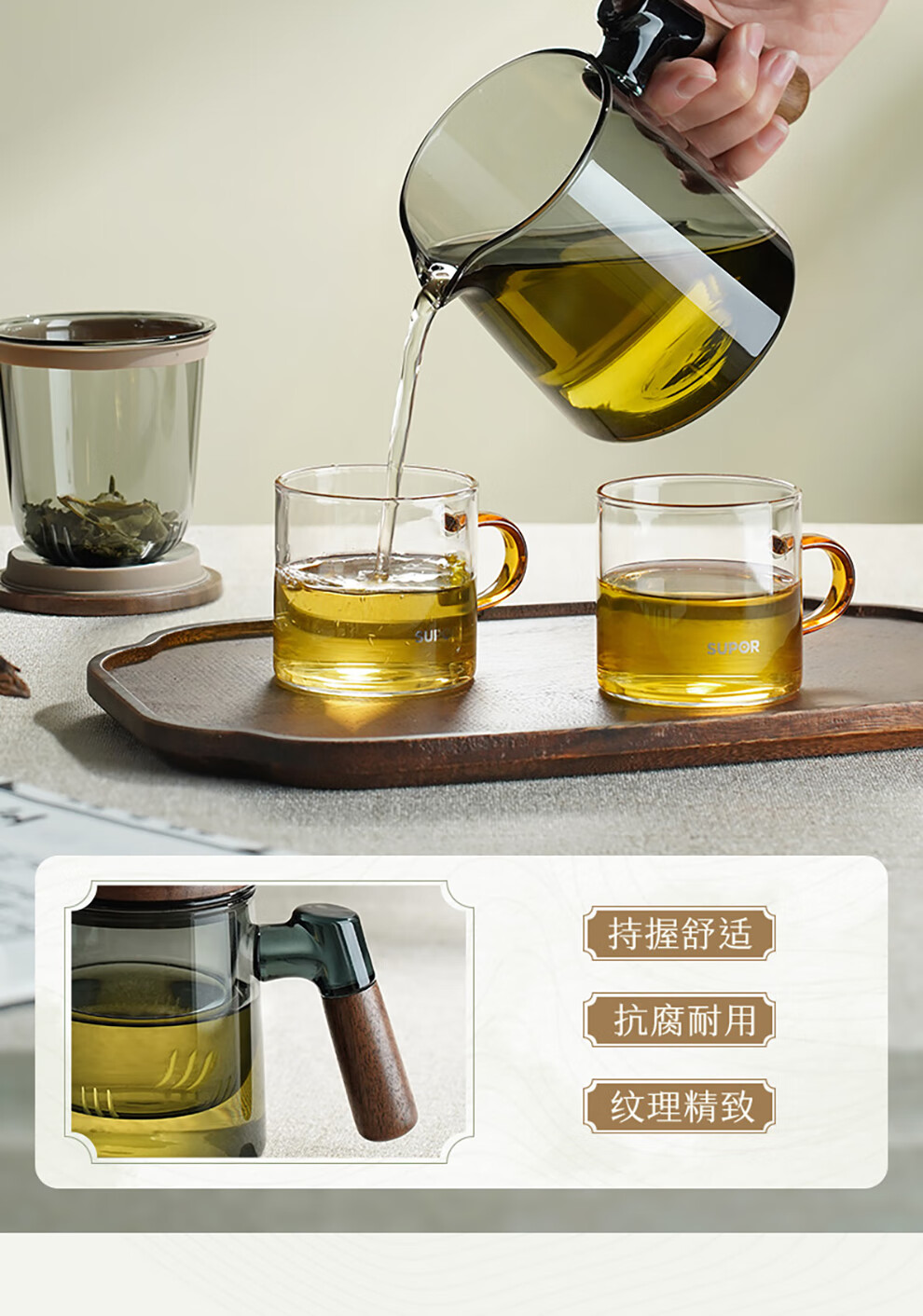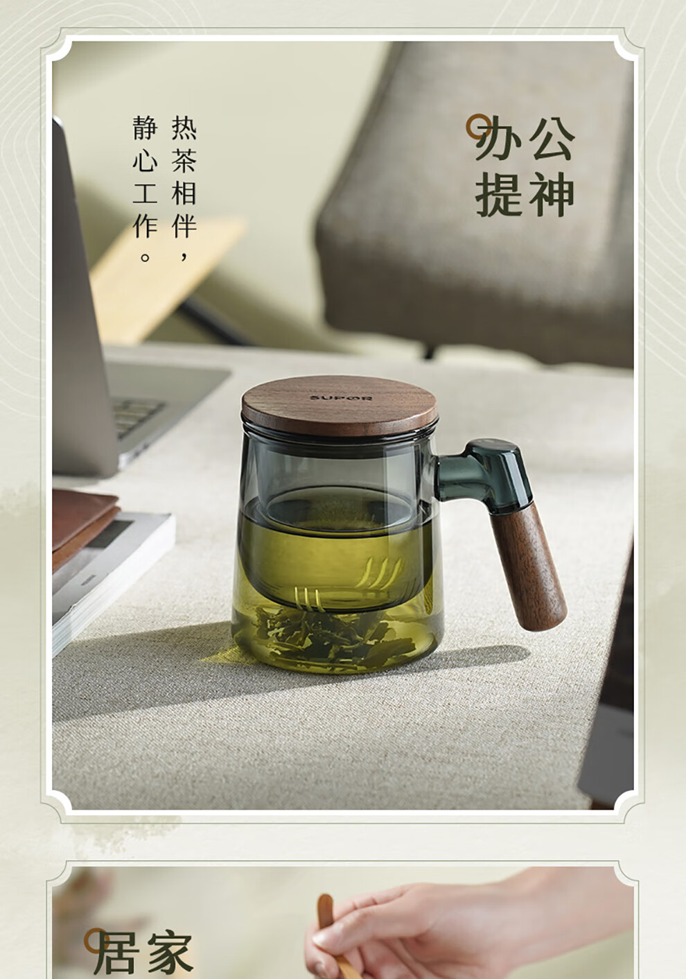 SUPOR SUPOR glass tea cup, tea and water separation, small cup for office tea ceremony, personal use, high-end and exquisite spout, 470mL high borosilicate tea ceremony glass, high temperature resistance/with handle