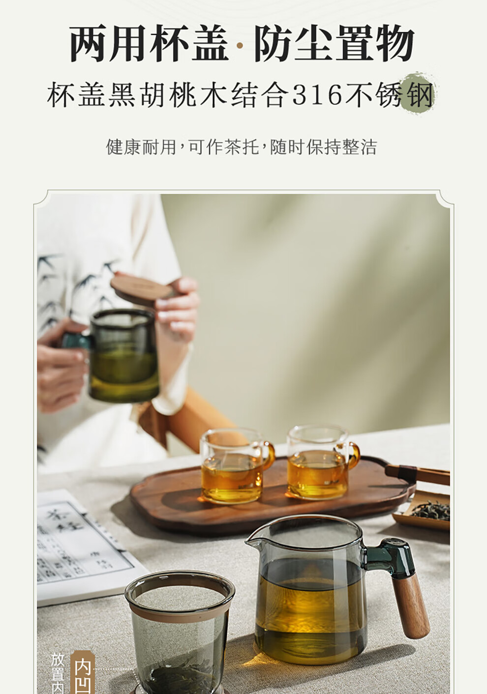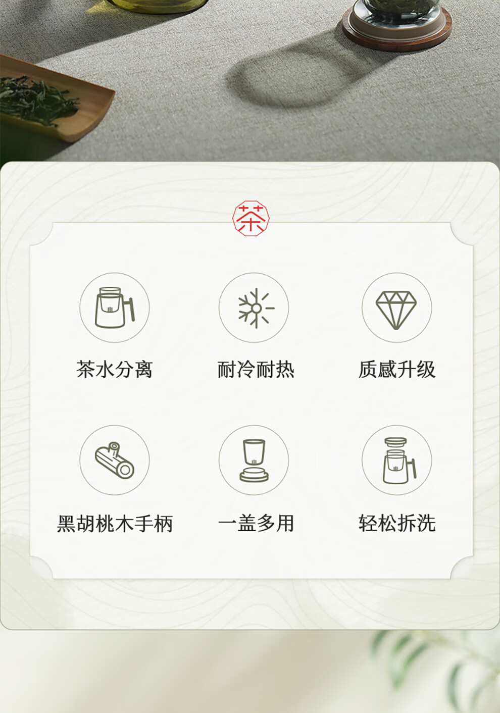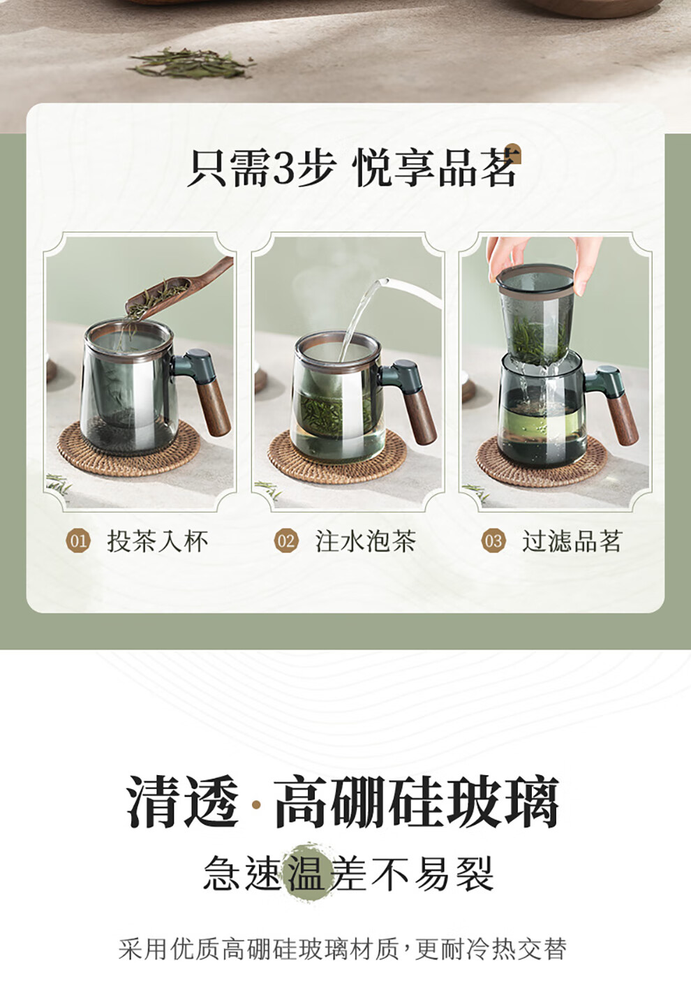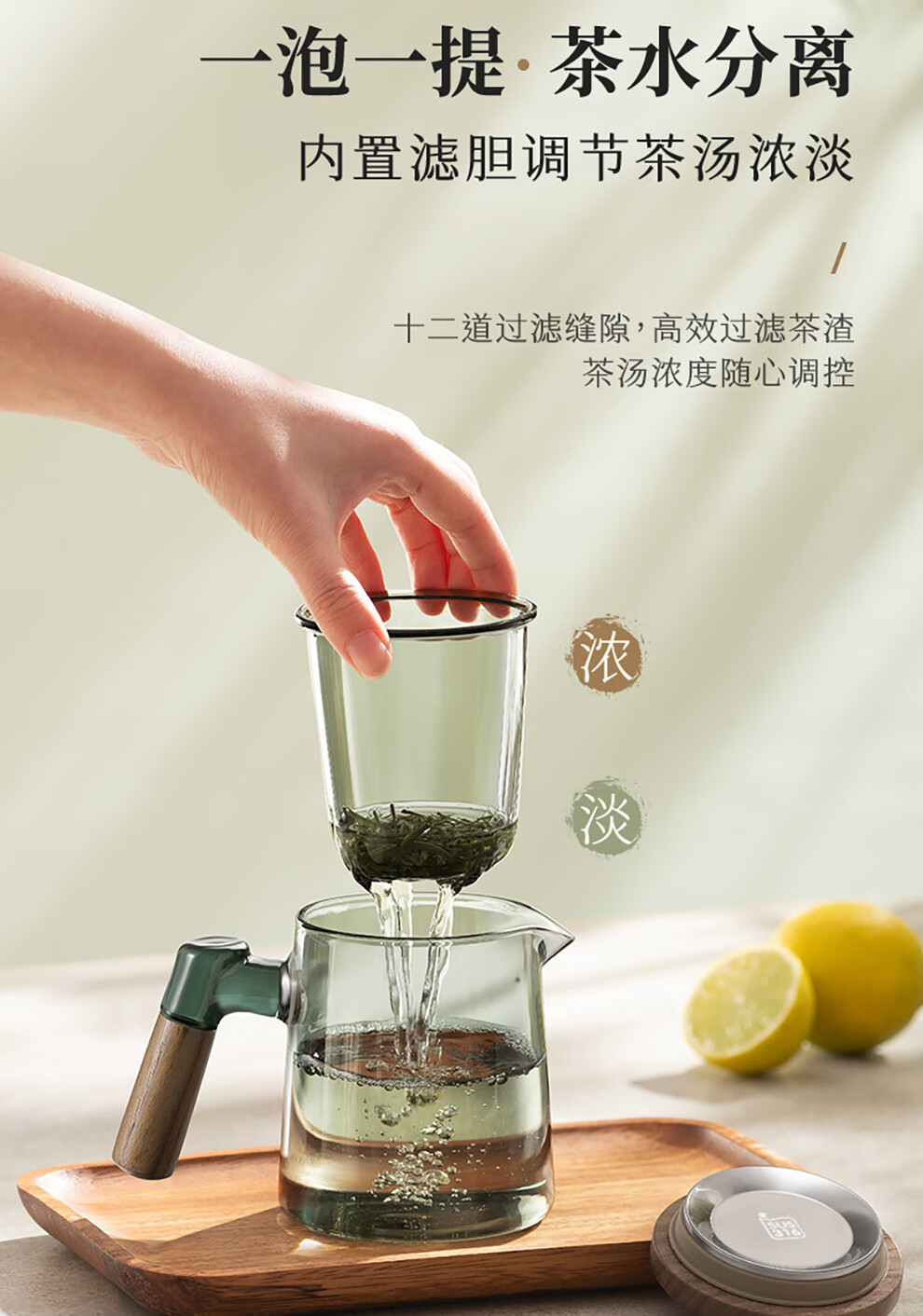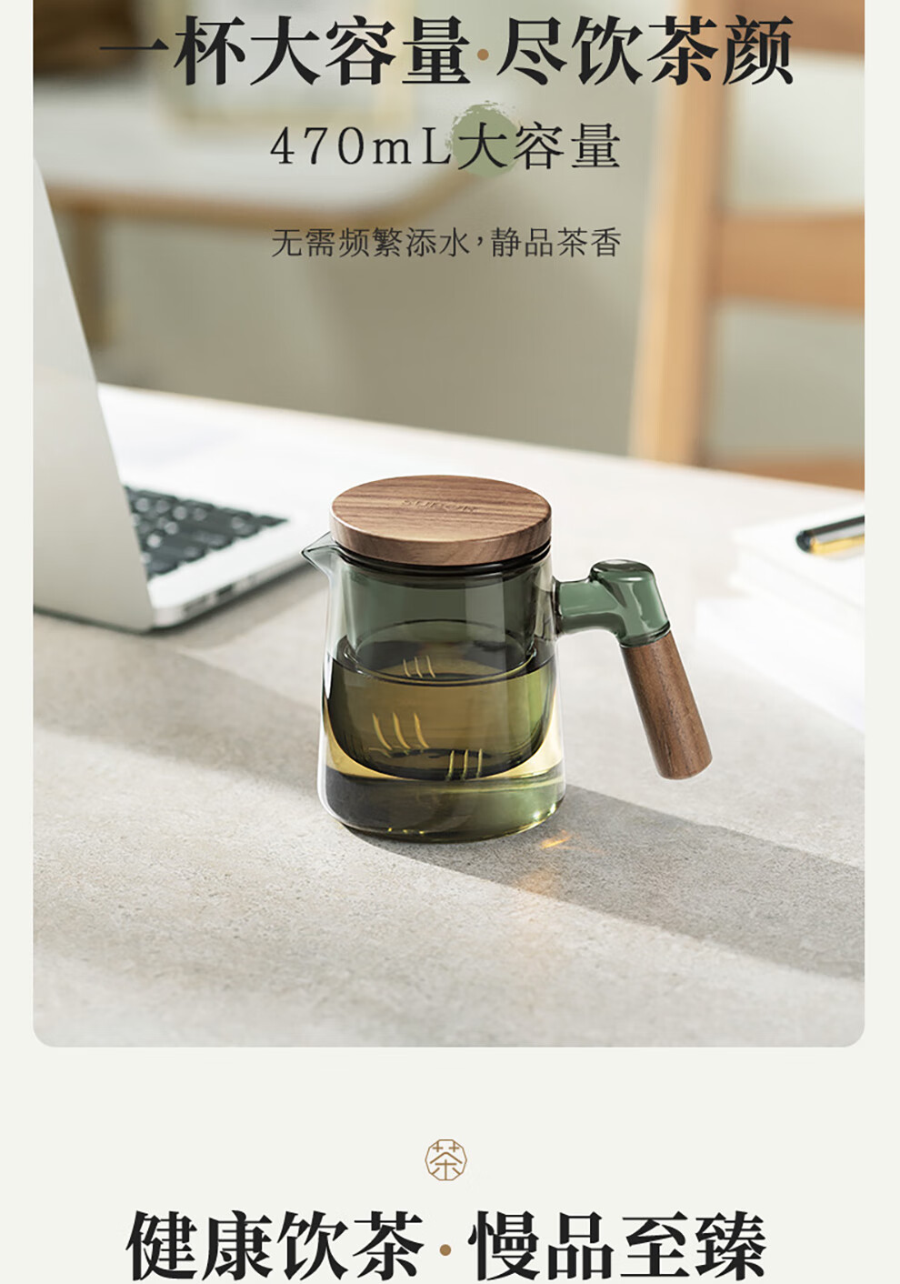 SUPOR SUPOR glass tea cup, tea and water separation, small cup for office tea ceremony, personal use, high-end and exquisite spout, 470mL high borosilicate tea ceremony glass, high temperature resistance/with handle