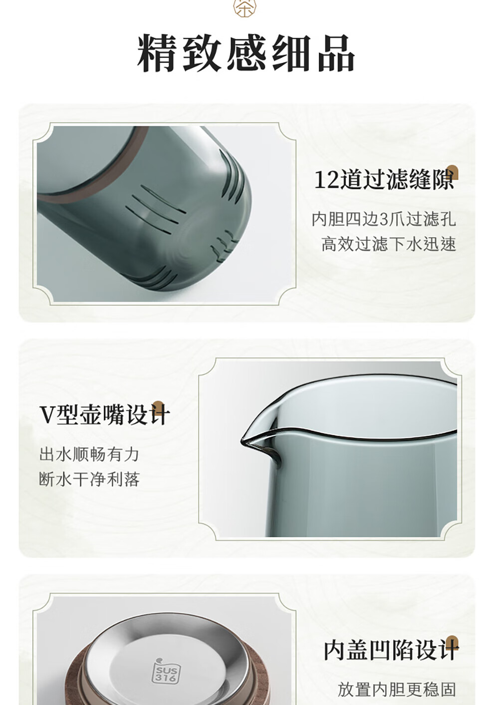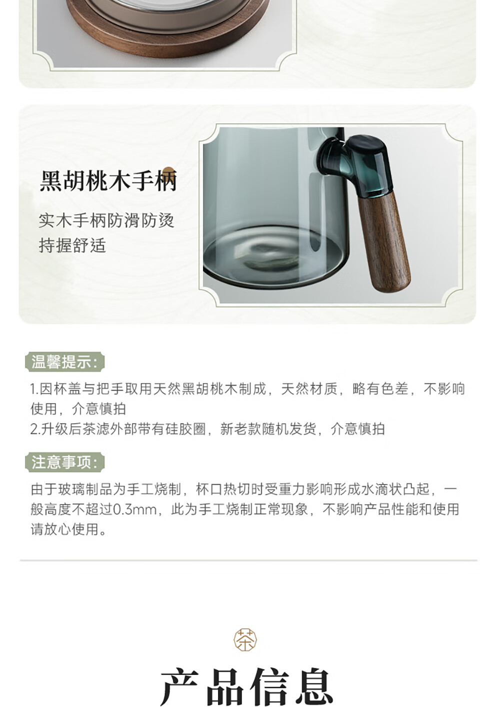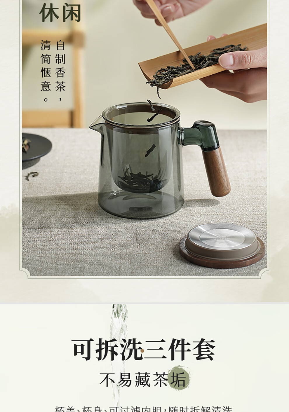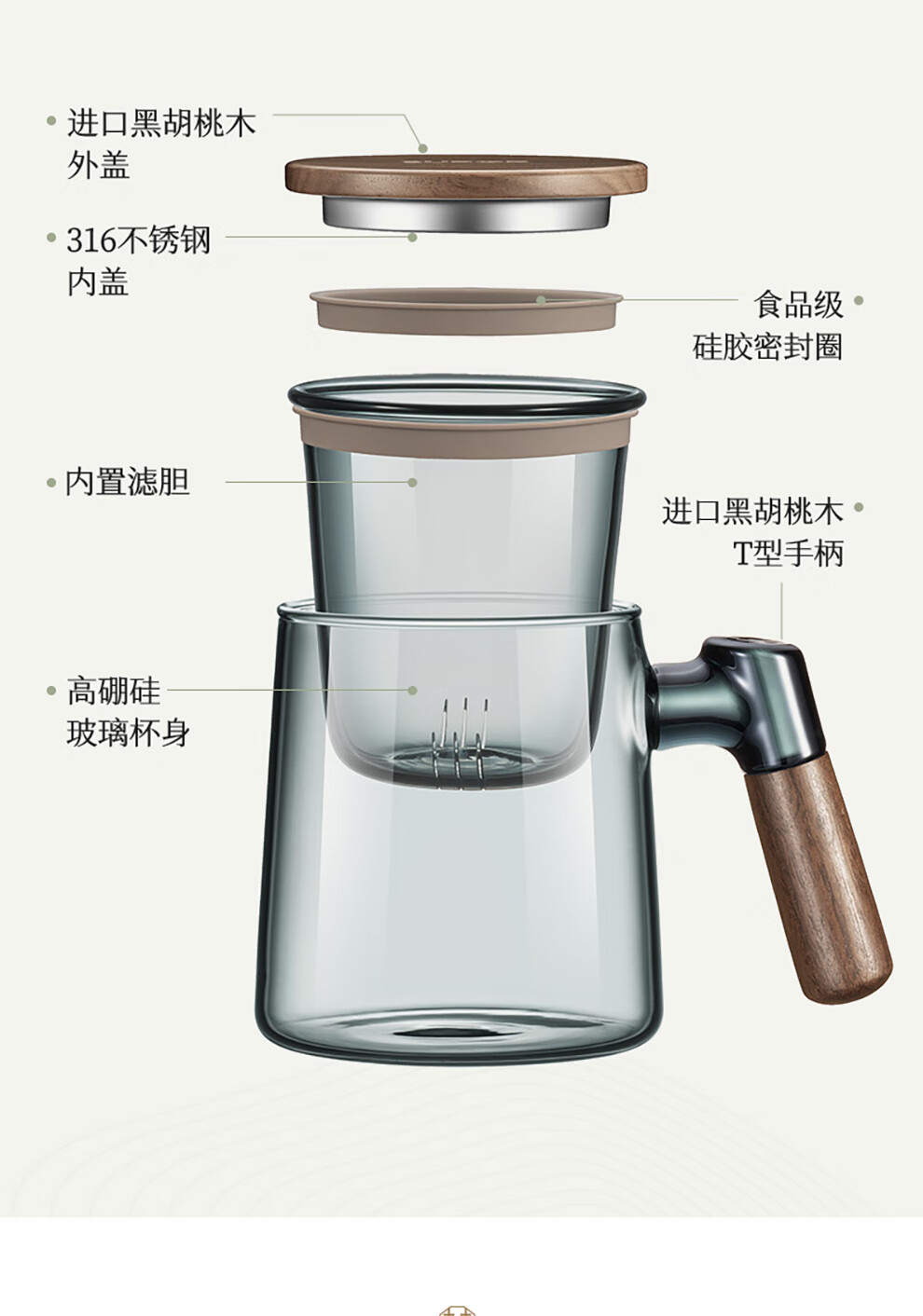 SUPOR SUPOR glass tea cup, tea and water separation, small cup for office tea ceremony, personal use, high-end and exquisite spout, 470mL high borosilicate tea ceremony glass, high temperature resistance/with handle