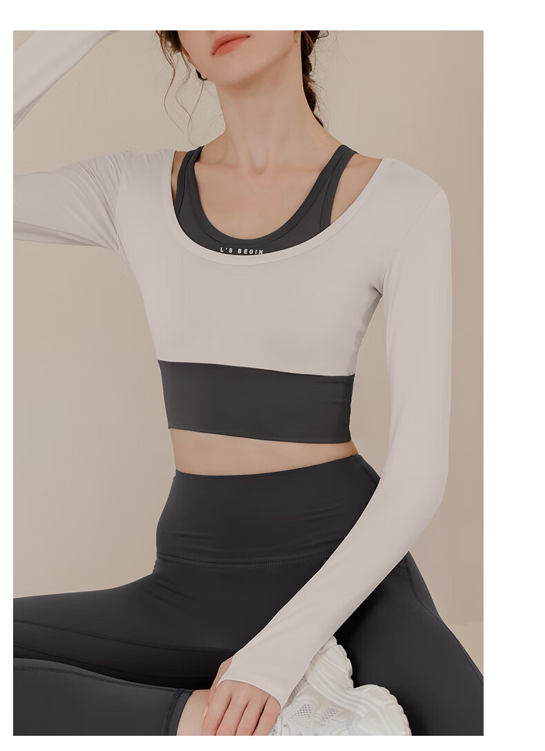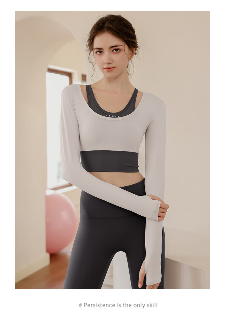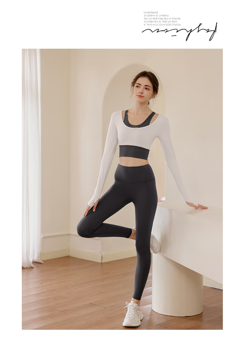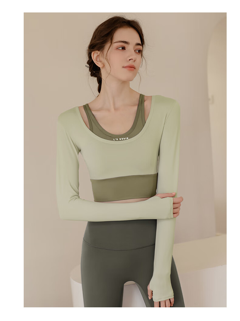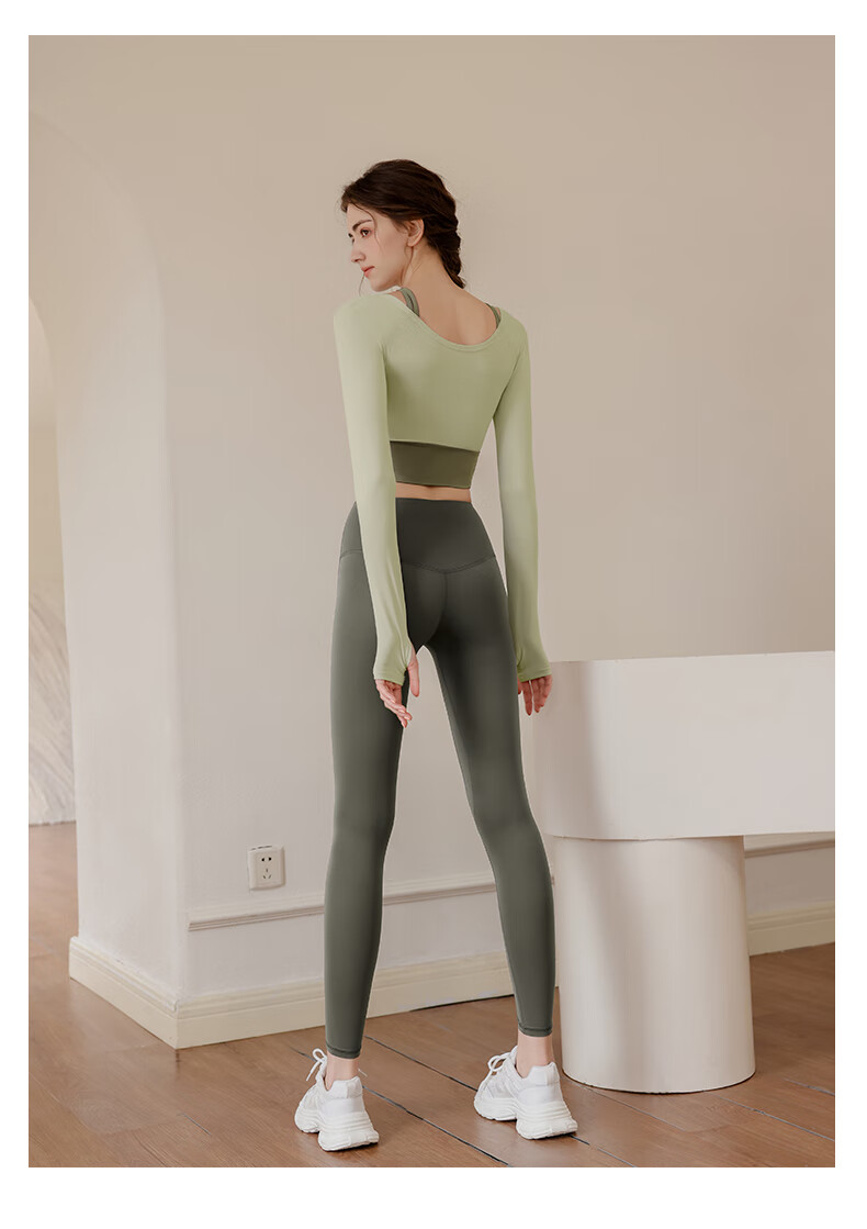 Kong Yu Yoga Wear Women's Suit Pilates Training Wear Top with Breast Pad Spring and Summer New Sports Fitness Wear Long Sleeve Green Top + Green Pants L