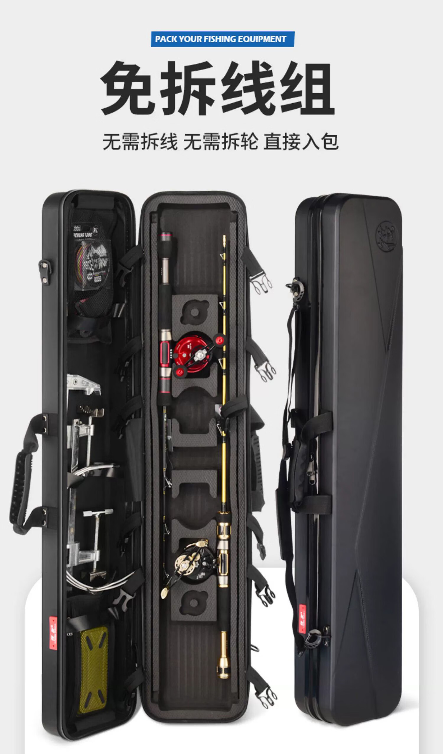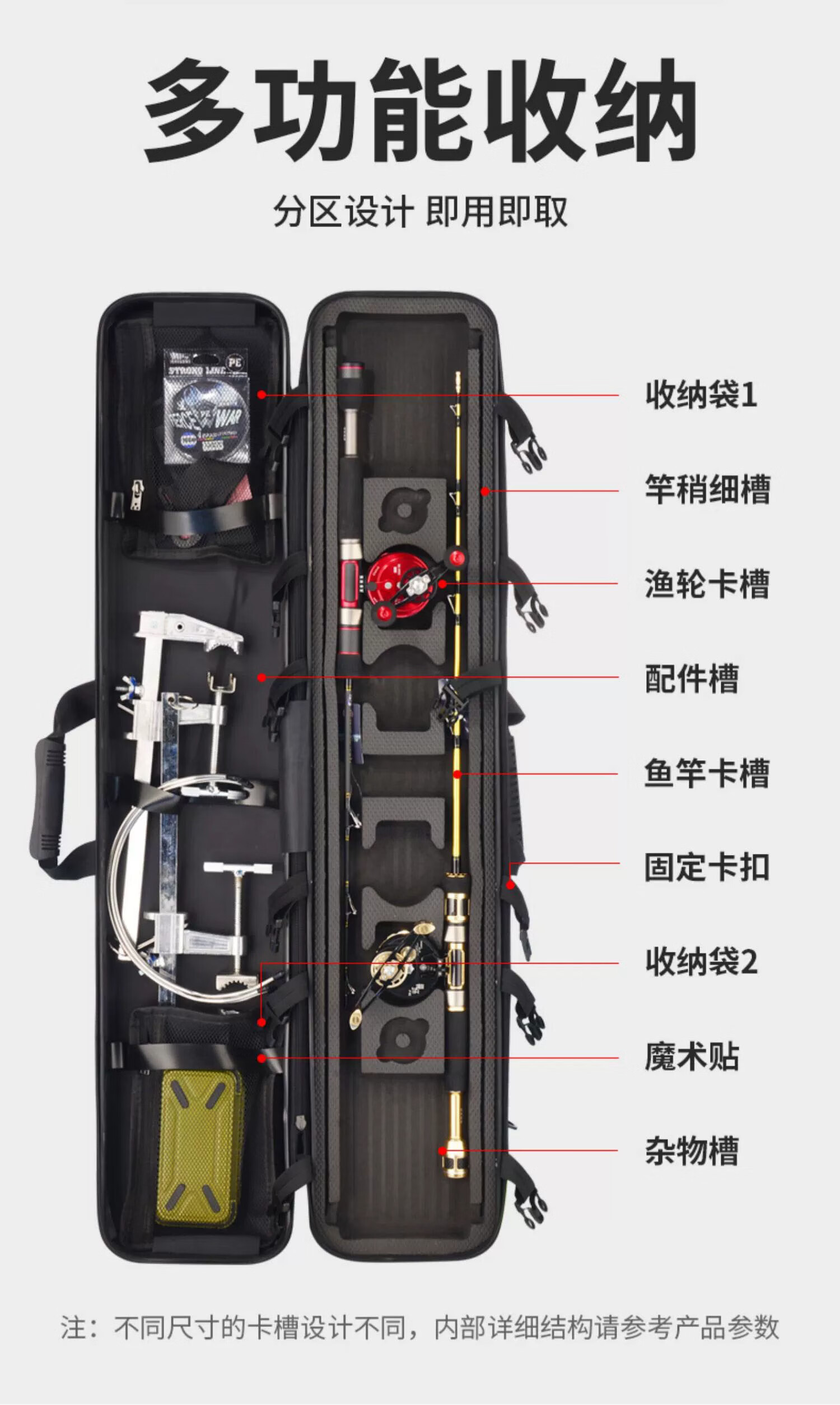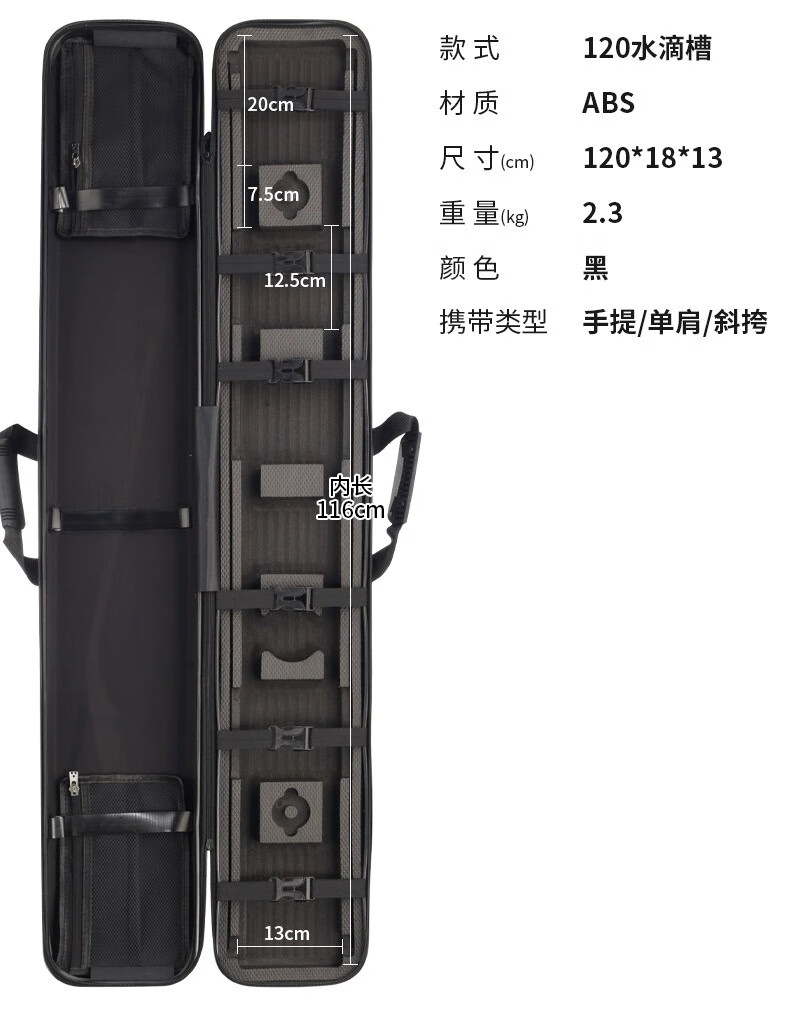 Miaozun free stitching set raft fishing rod package bridge raft storage lure multi-functional raft rod package fish wheel water drop wheel waterproof hard shell water drop groove-120cm black-raft rod below 110cm