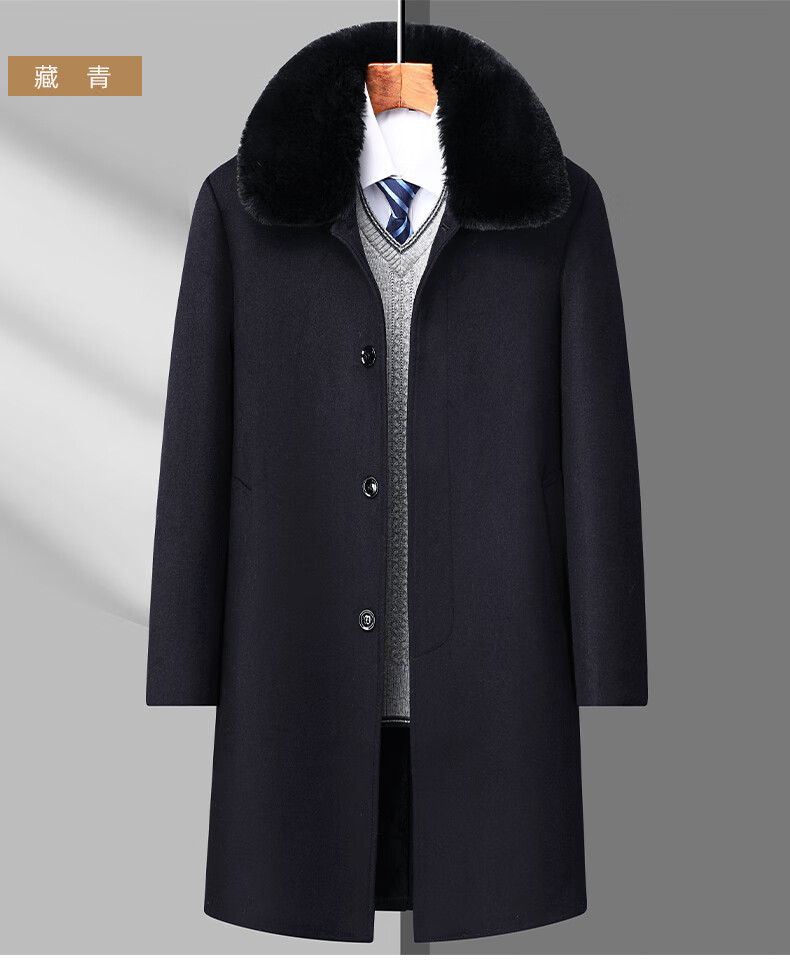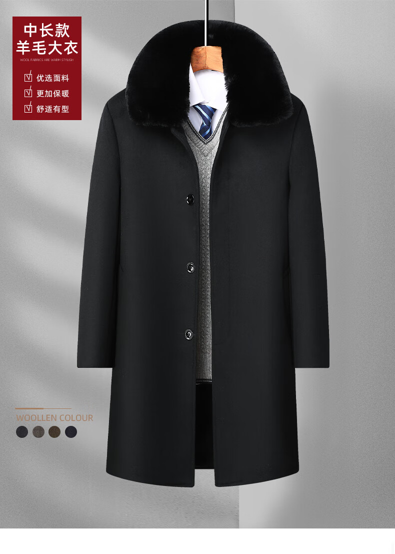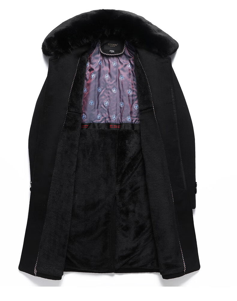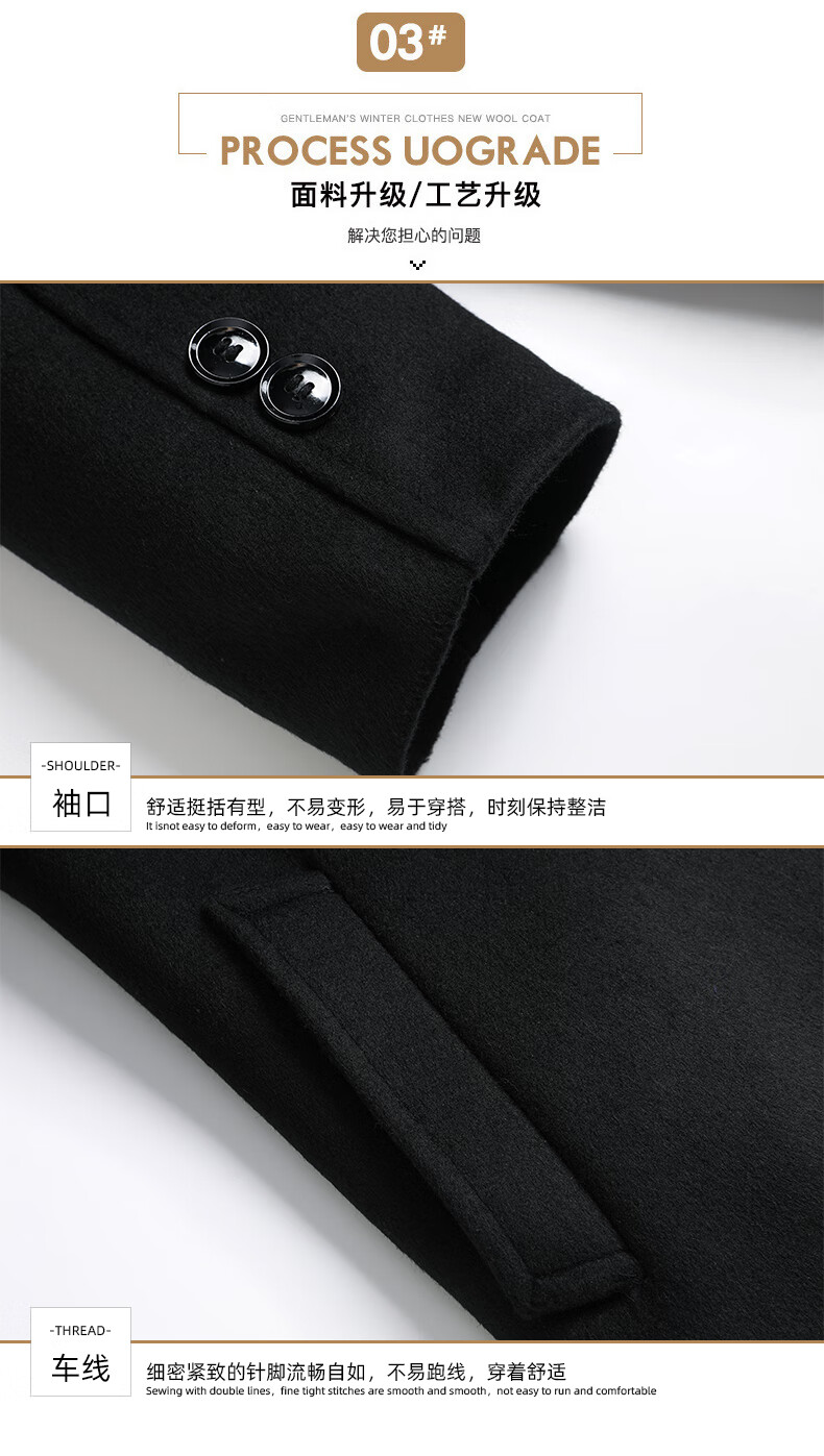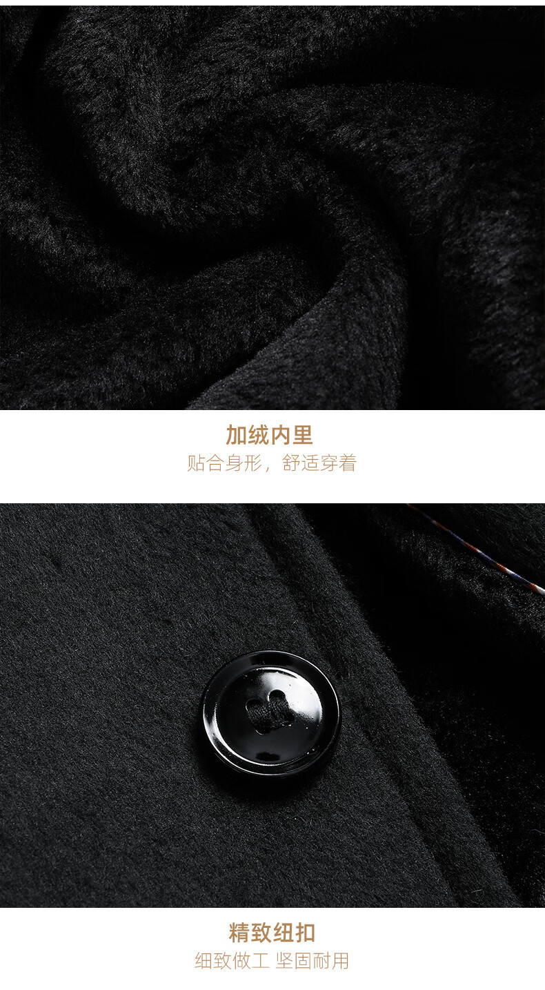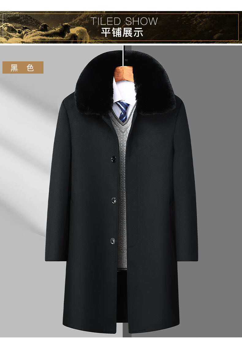Woodpecker Woolen Coat Men's Middle-aged and Elderly Winter Dad's Clothing Plus Velvet Thickened Elderly Long Over-the-Knee Woolen Coat Jacket Black 175