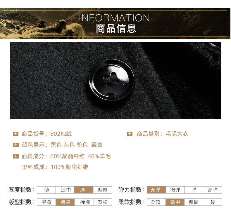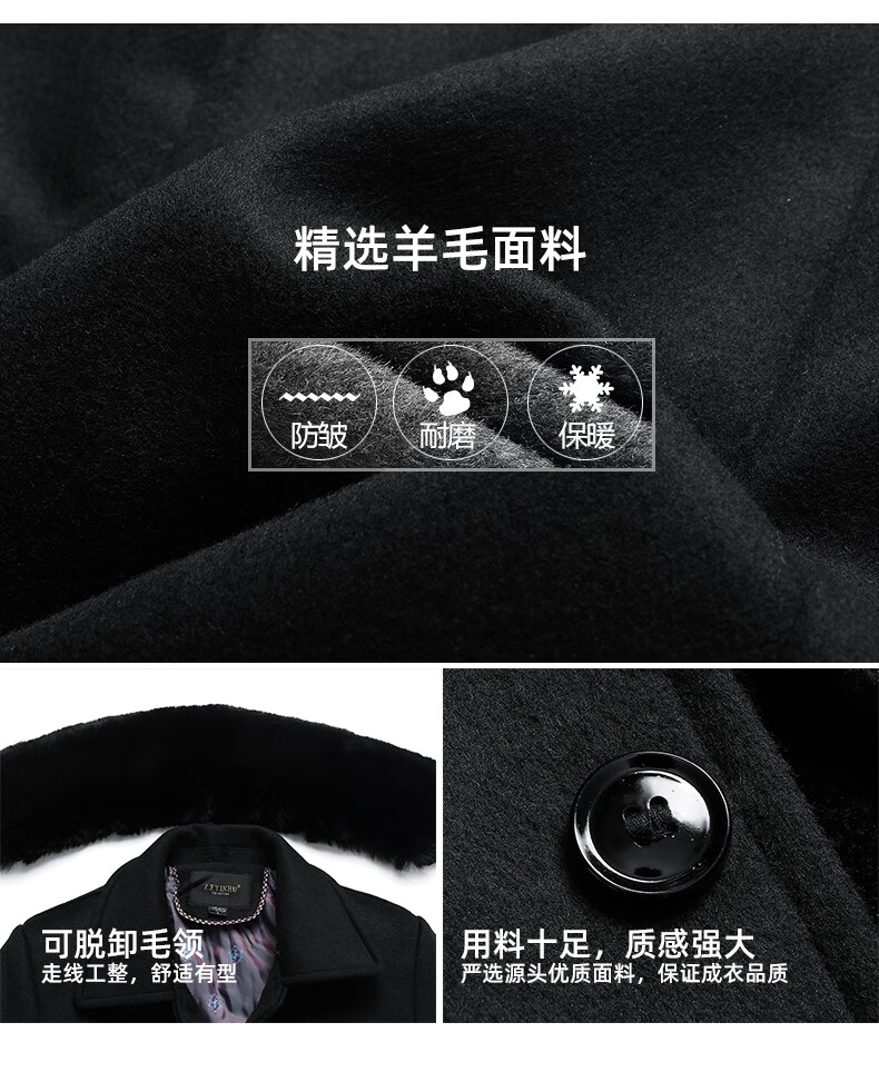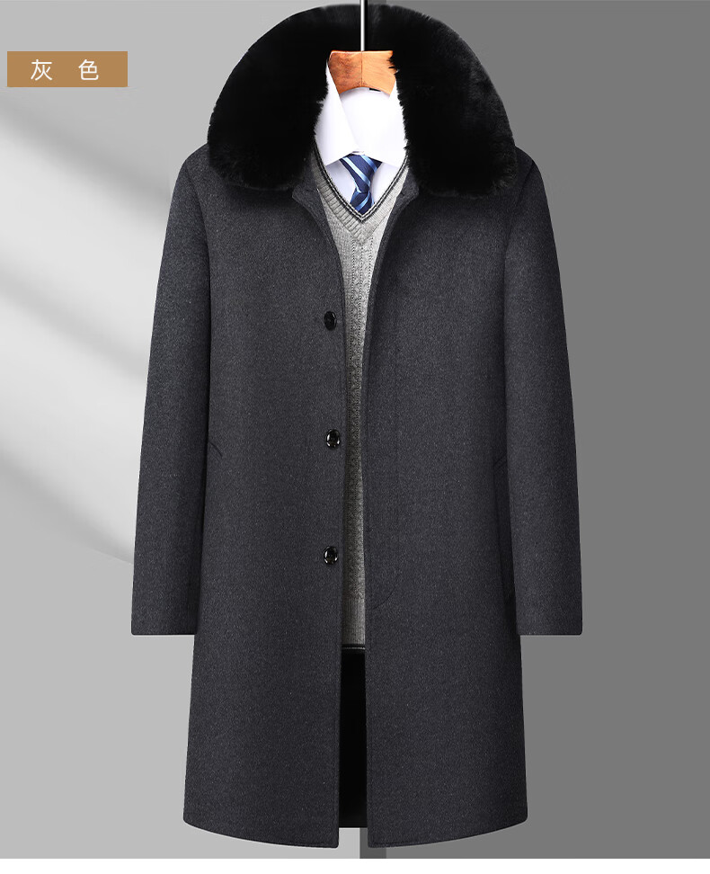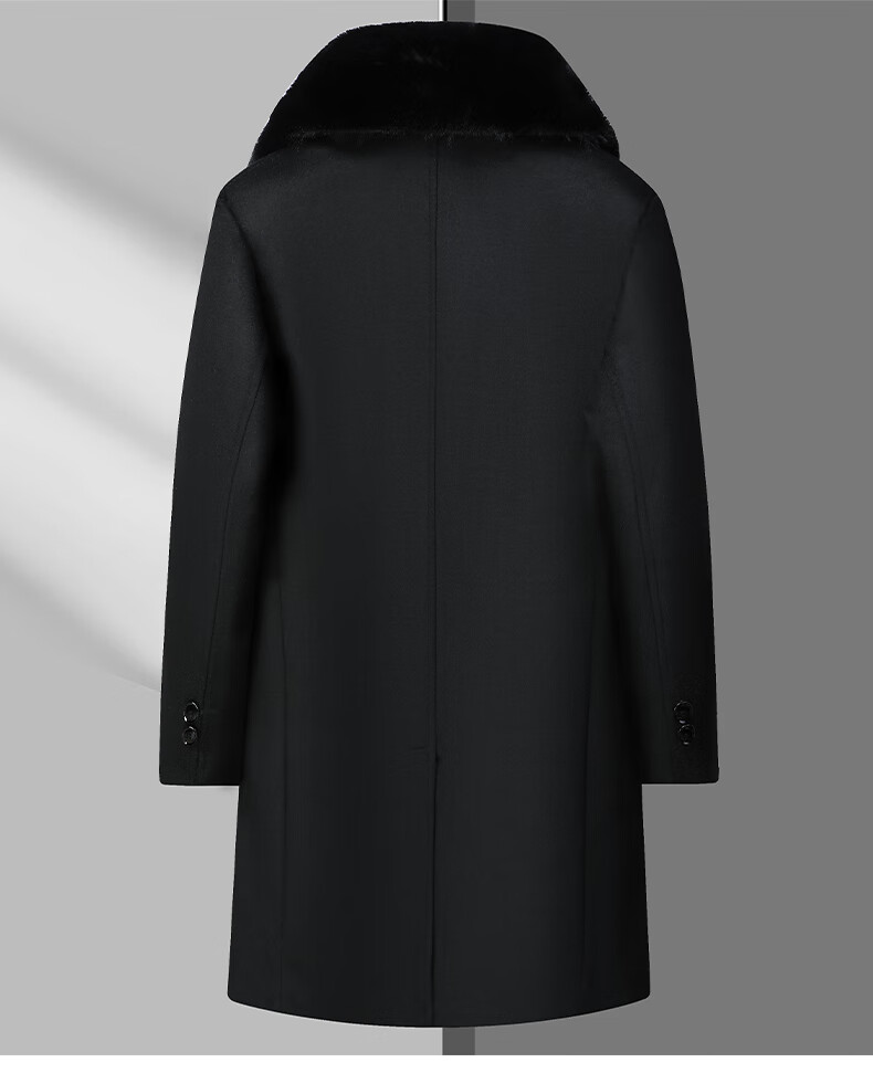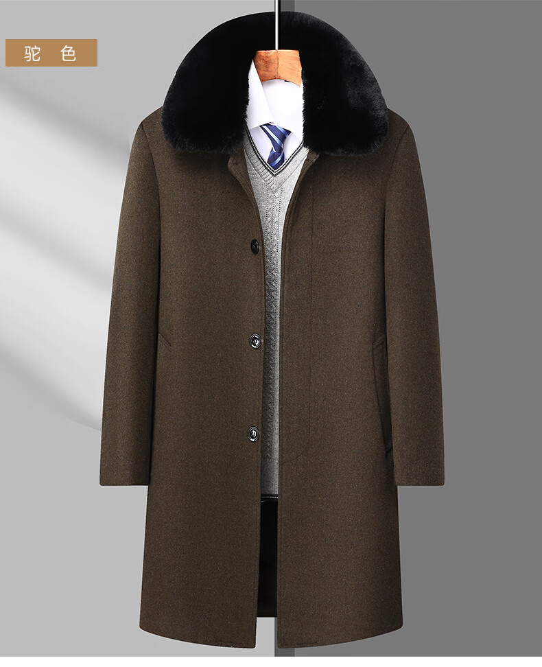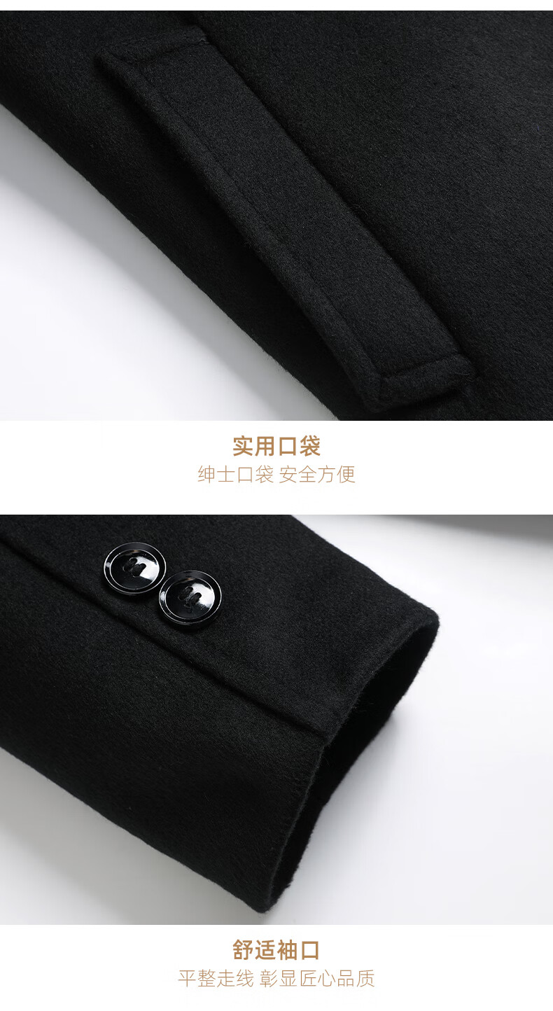 Woodpecker Woolen Coat Men's Middle-aged and Elderly Winter Dad's Clothing Plus Velvet Thickened Elderly Long Over-the-Knee Woolen Coat Jacket Black 175