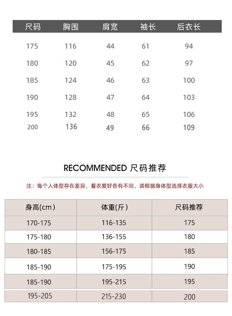 China (cm) 165 / 88-90 170 / 96-98 175 / 108-110 180 / 118-122 185 / 126-130