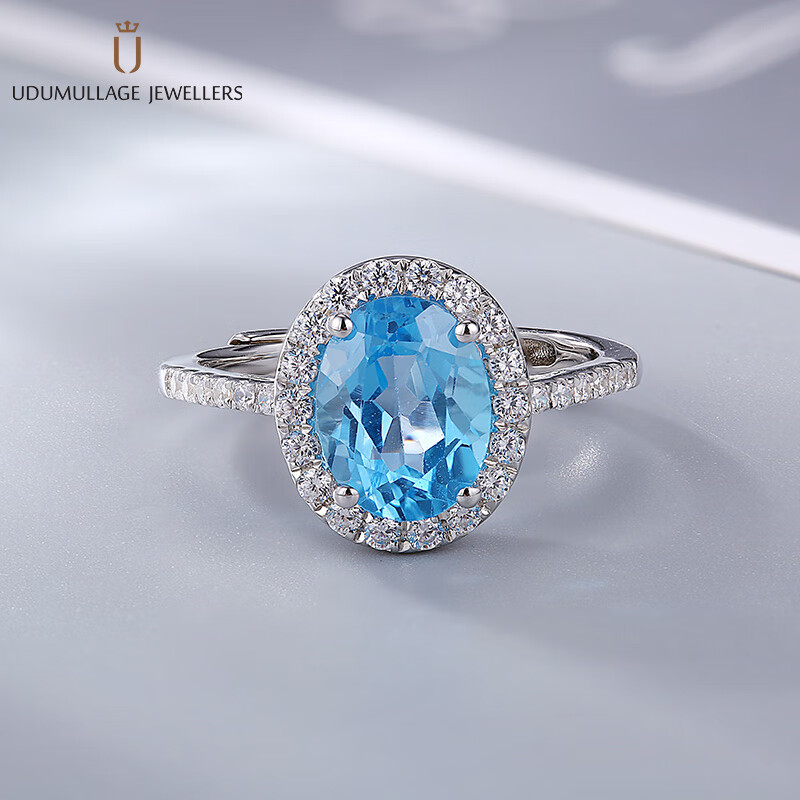UDUMULLAGE JEWELLERS Sri Lankan Topaz Ring, Chinese Valentine's Day birthday gift, gift for girlfriend and elders, oval living mouth design