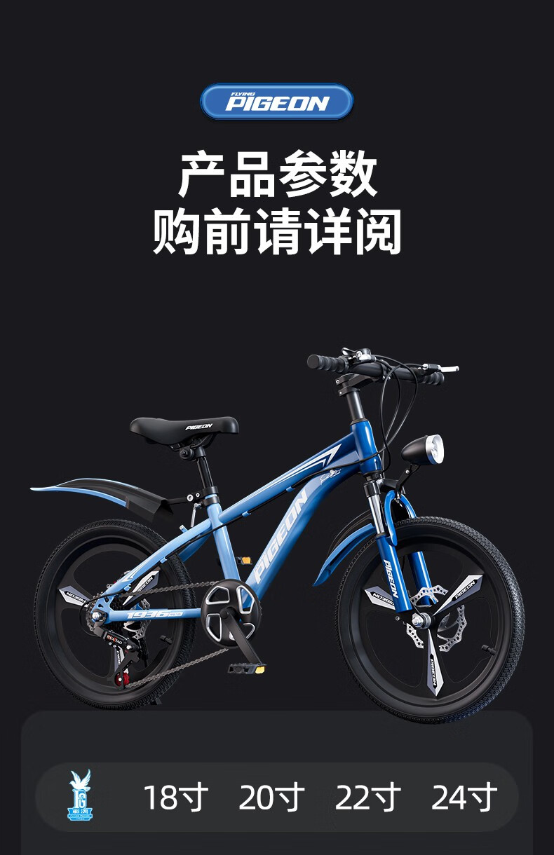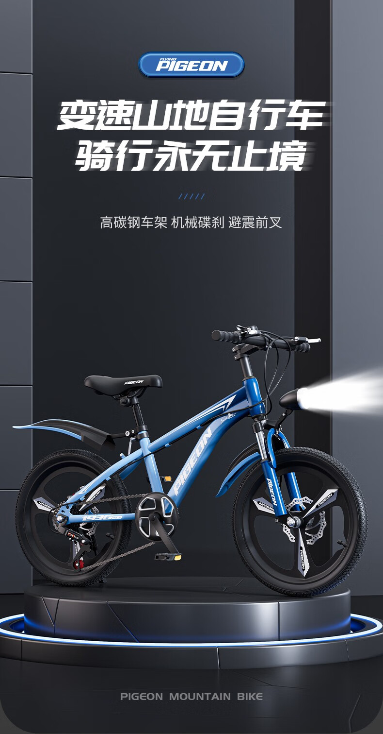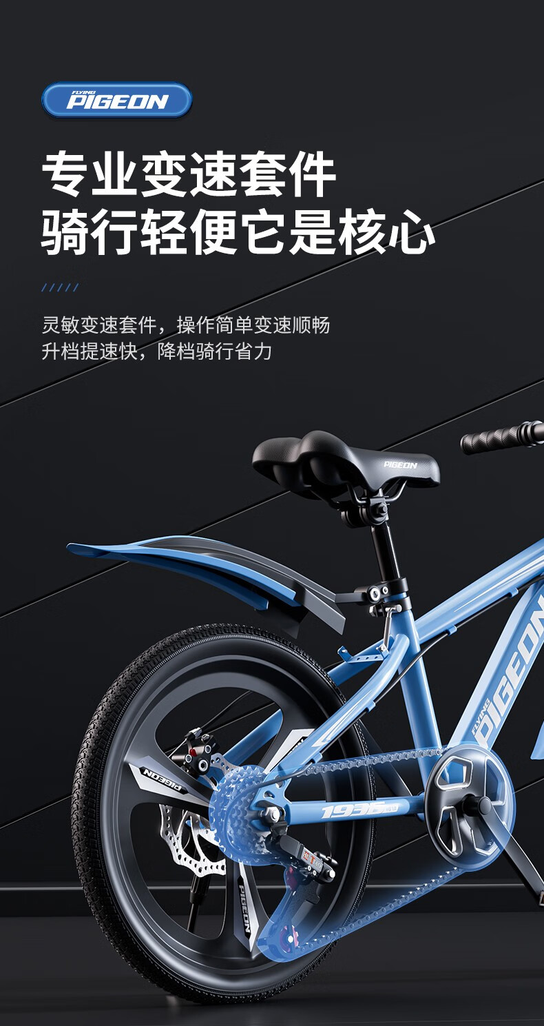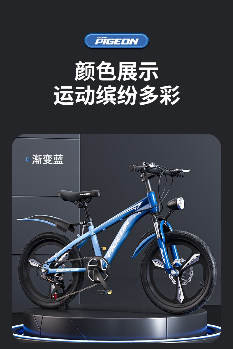 Flying Pigeon Children's Bicycle Student Mountain Bike Variable Speed Disc Brake Pedal for Medium and Large Children Teenagers Boys and Girls 6-10-15 Years Old Variable Speed Gradient Purple + Spoke Wheel + Shock Absorbing Disc Brake 20 Inch Recommended Height 130-150cm
