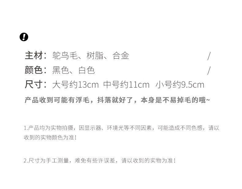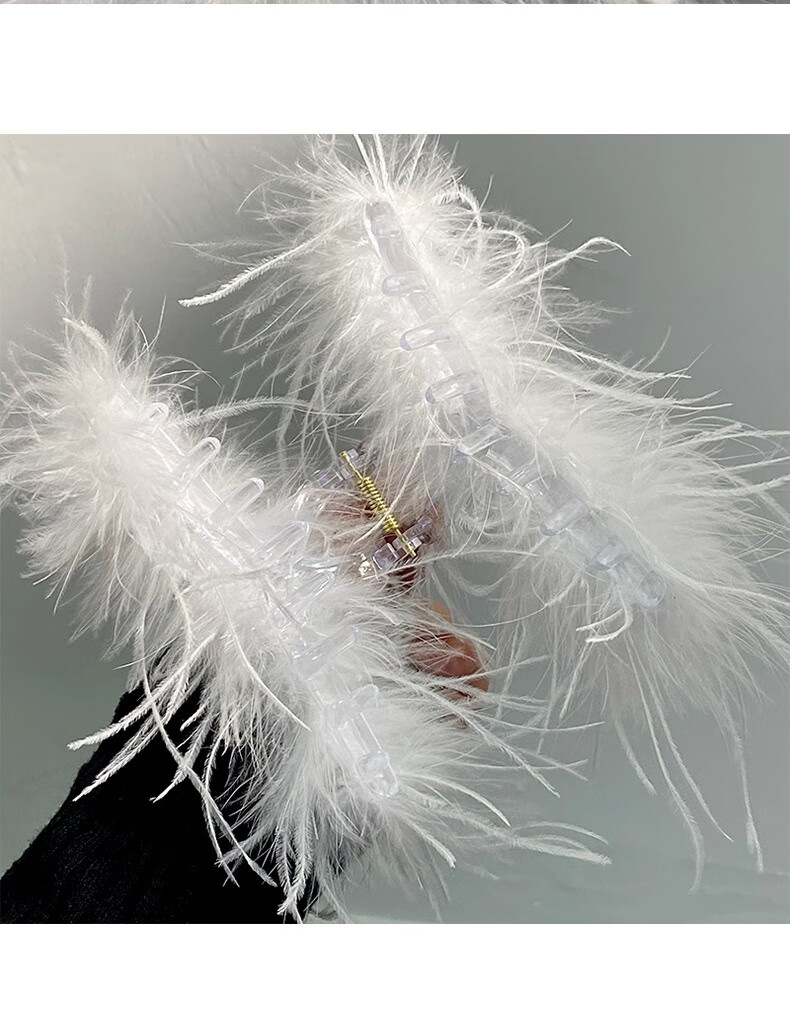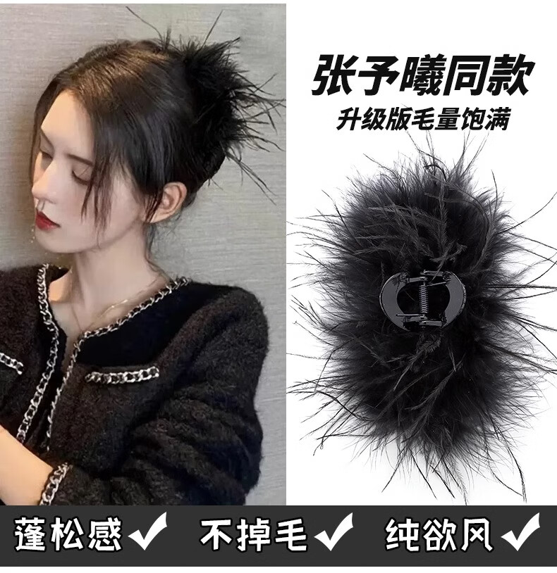 Danqin Super Immortal Ostrich Feather Hairpin Clip Large Back of the Head New Hair Shark Advanced Clip Hairpin Headgear Black Feather 13cm High-end Mainstream Color