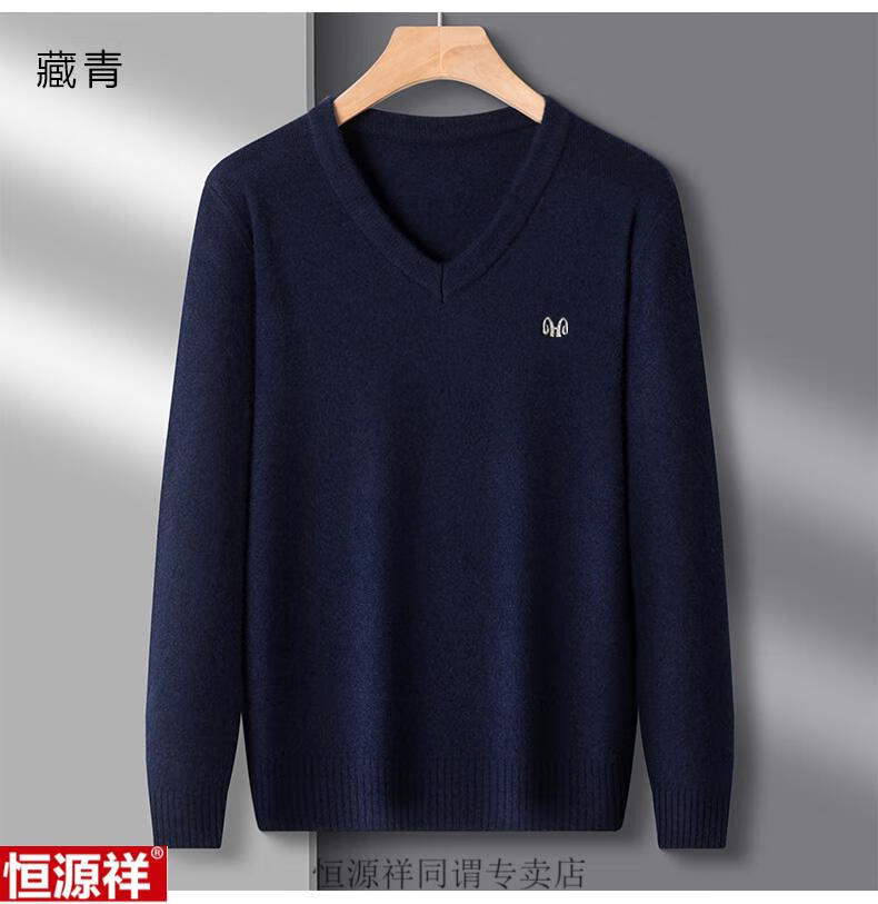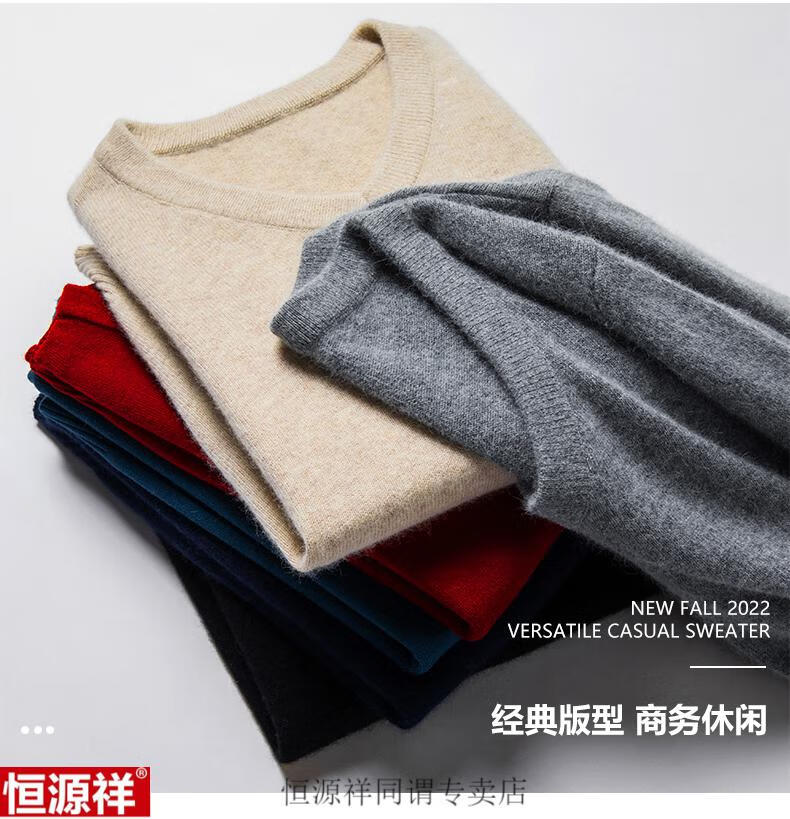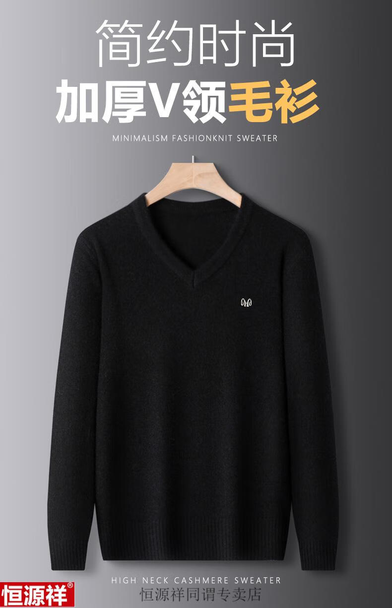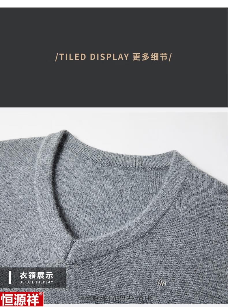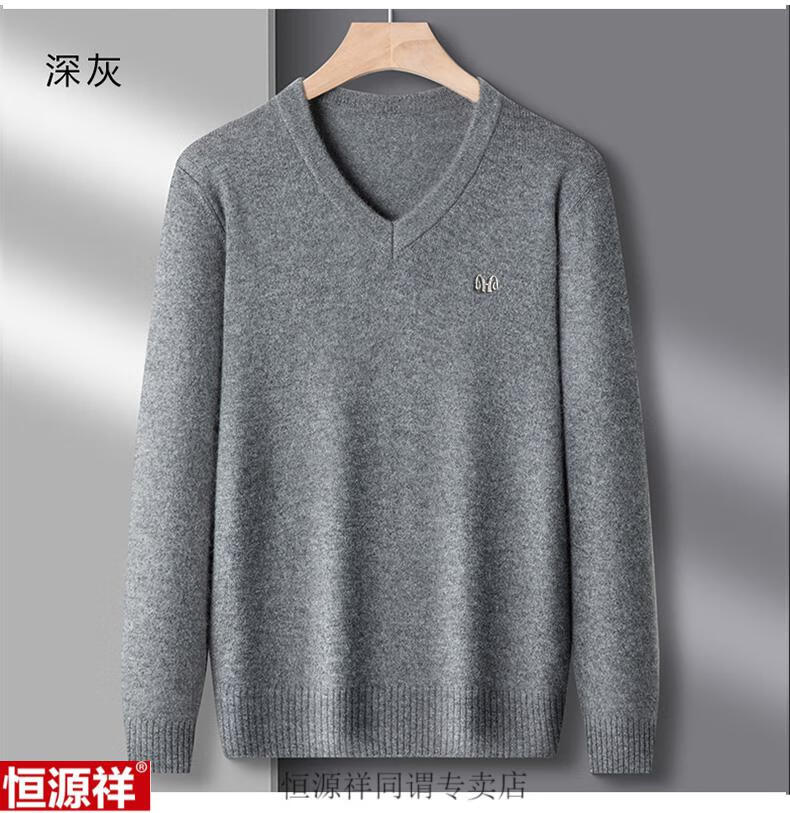 Hengyuanxiang woolen sweater men's winter sweetheart collar 100 pure wool sweater V-neck solid color bottoming sweater wool inner sweater for men 8801 gray XH high-grade sheep wool V
