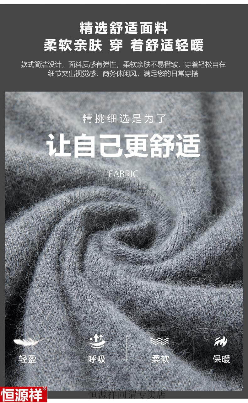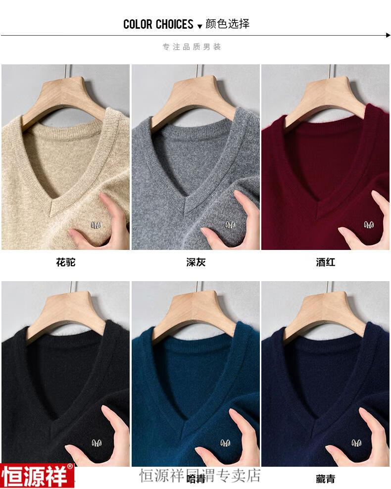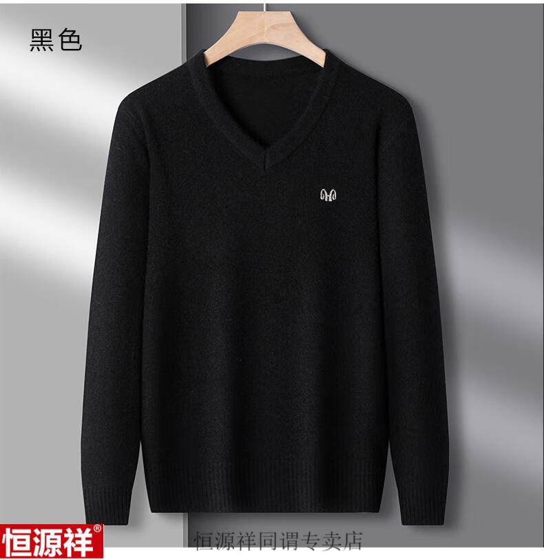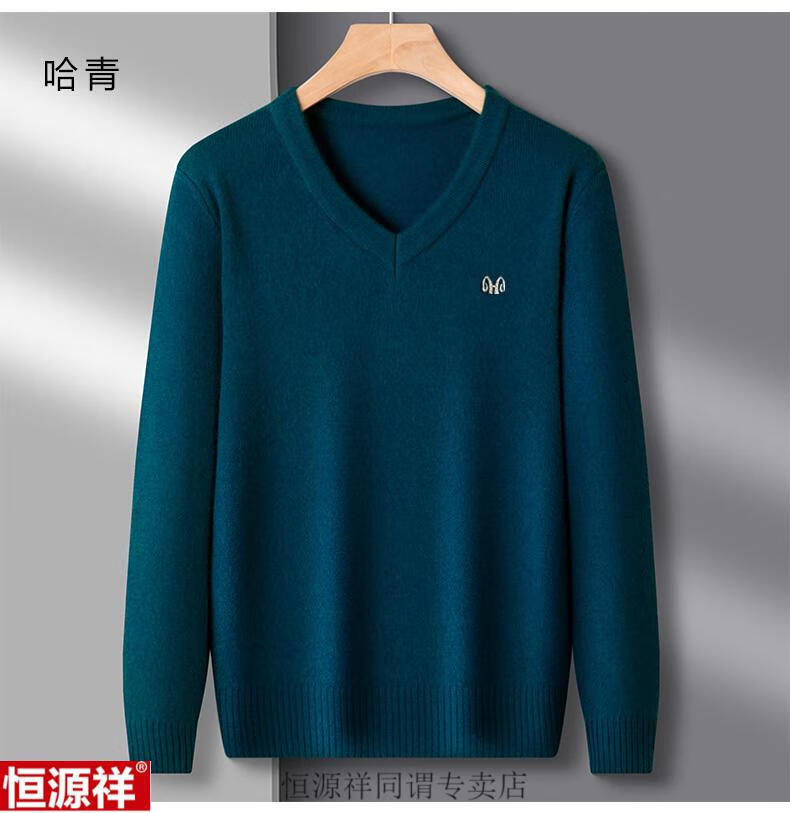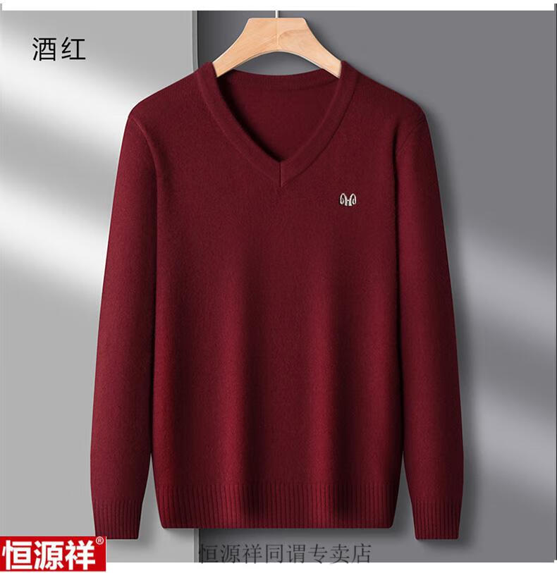 Hengyuanxiang woolen sweater men's winter sweetheart collar 100 pure wool sweater V-neck solid color bottoming sweater wool inner sweater for men 8801 gray XH high-grade sheep wool V