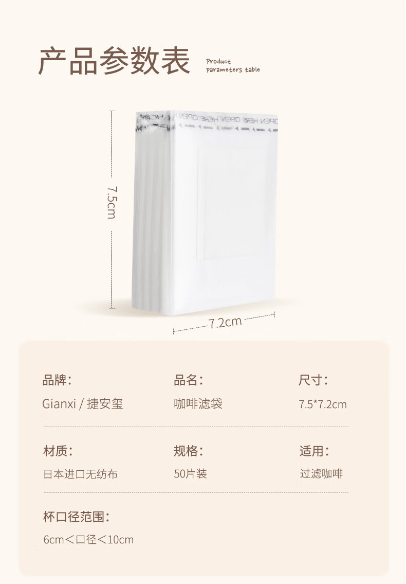 Ji'anxi coffee filter paper ear-hanging filter paper hand-brewed coffee powder filter paper imported hanging ear bag filter disposable coffee filter bag storage one-piece 75 imported food grade sealed carry
