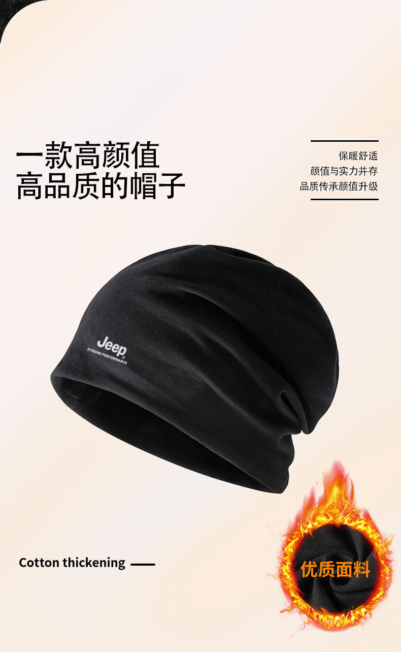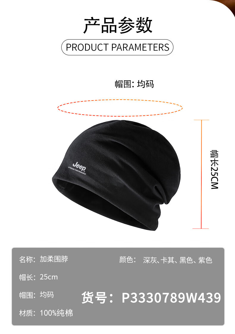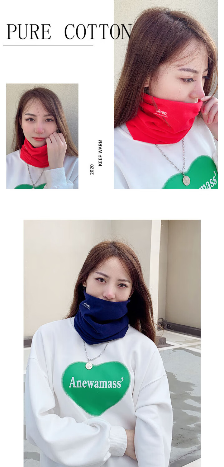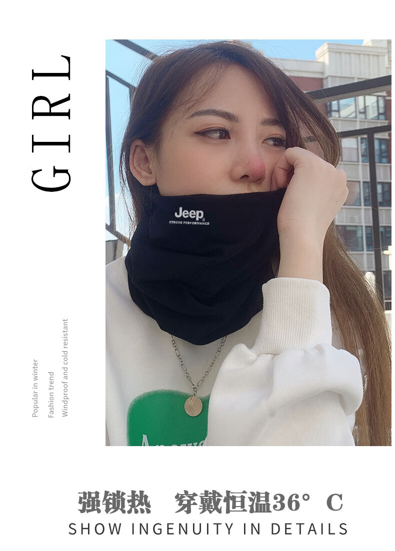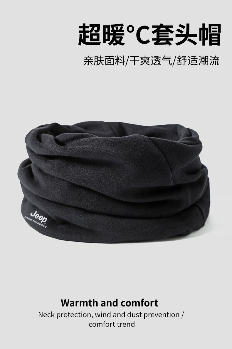 Jeep pure cotton neck scarf for men and women, autumn and winter warm dual-purpose neck warmer, men's advanced neck protection, cold-proof scarf, cycling and windproof, black (pure cotton dual-use model), one size fits all