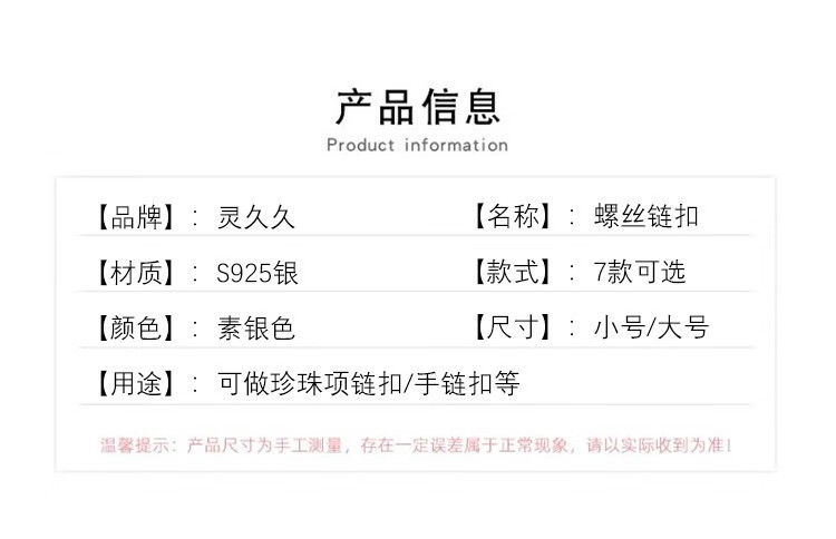 Lingjiujiu Pearl Necklace DIY Accessories Necklace Buckle Button Head Pearl Buckle Turnbuckle 925 Silver Accessories Connecting Buckle Type A-Small