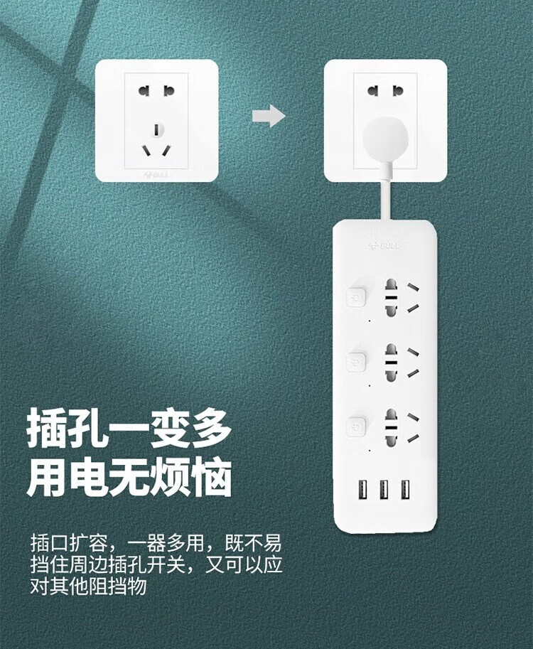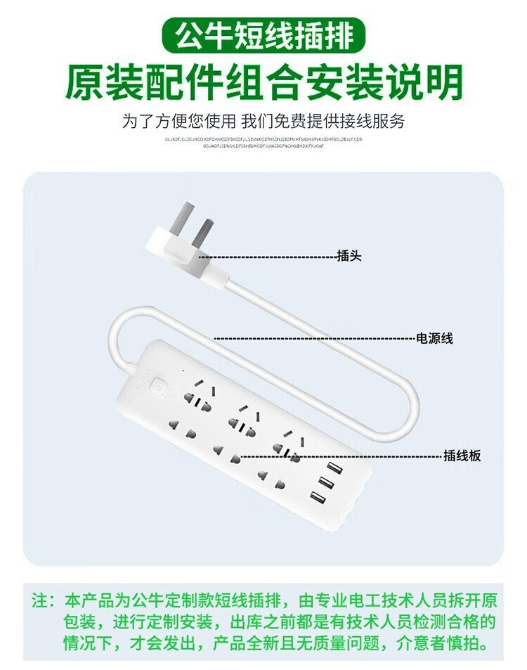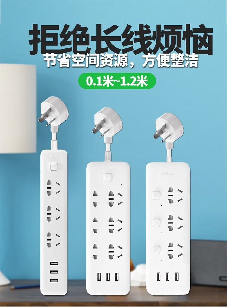 Bull short-line plug strip 0.2m ultra-thin plug converter sandwich socket gap plug board black flat head drag line board total control 3 positions black spot quick delivery line length 0.5 meters