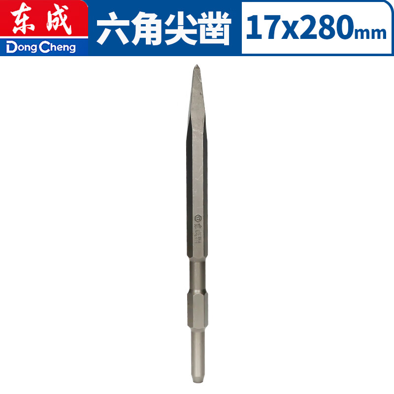 Dongcheng square handle electric hammer electric pick chisel short tip chisel flat chisel concrete polished rod slotting shovel drill bit hexagonal handle 17x280mm pointed flat chisel one each Dongcheng