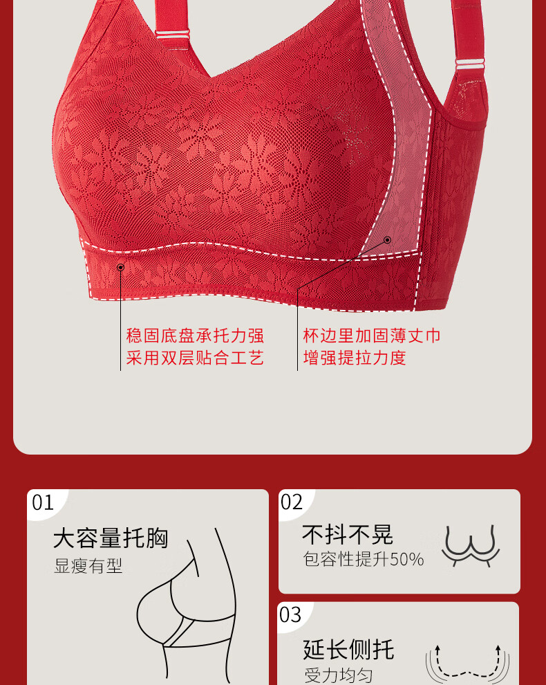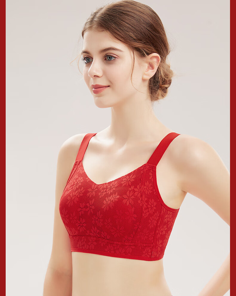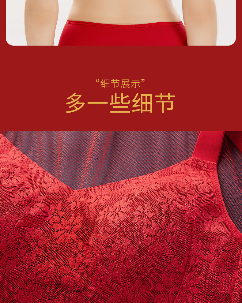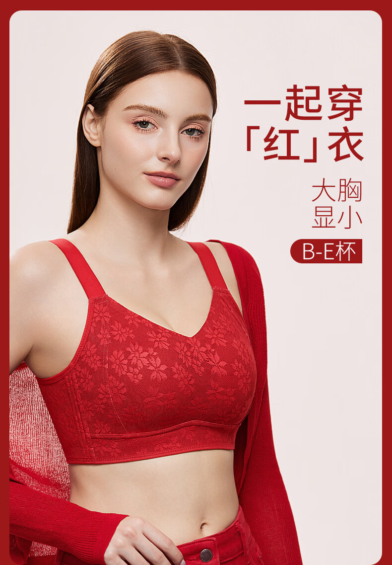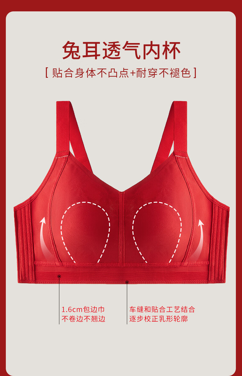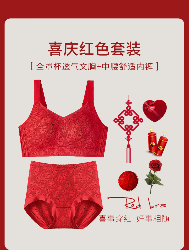 Qianami gift box red underwear for women in the zodiac year, big breast slimming and lifting body shaping bra set, big red set M (75BCD/70E)