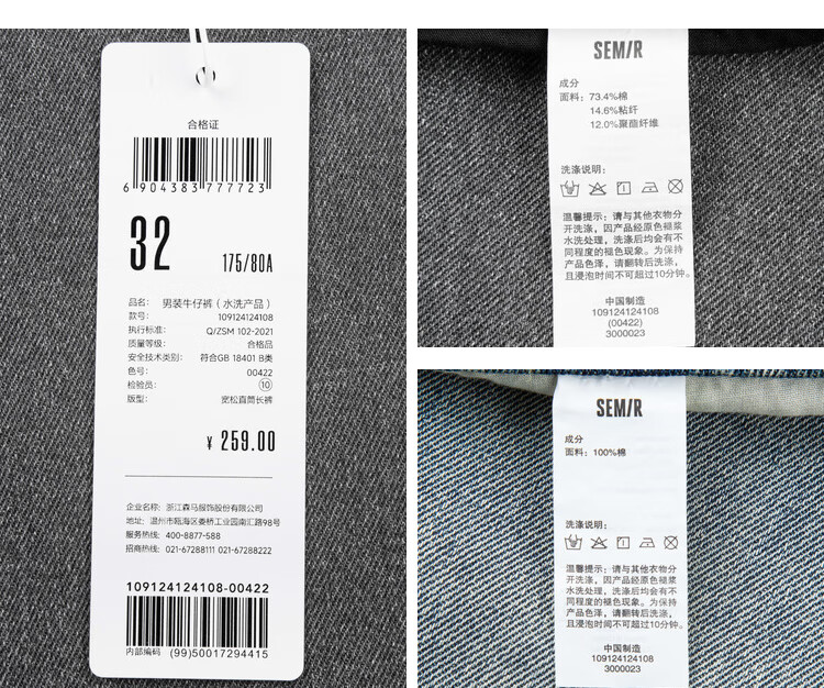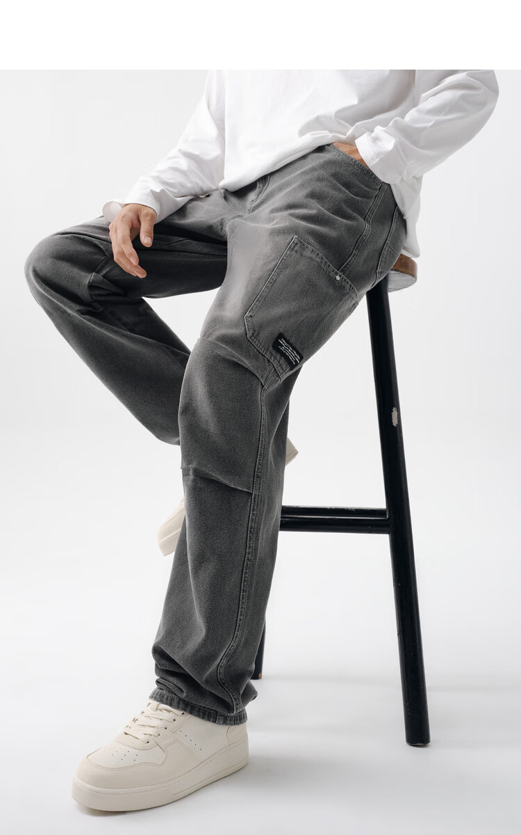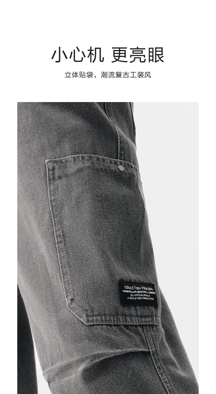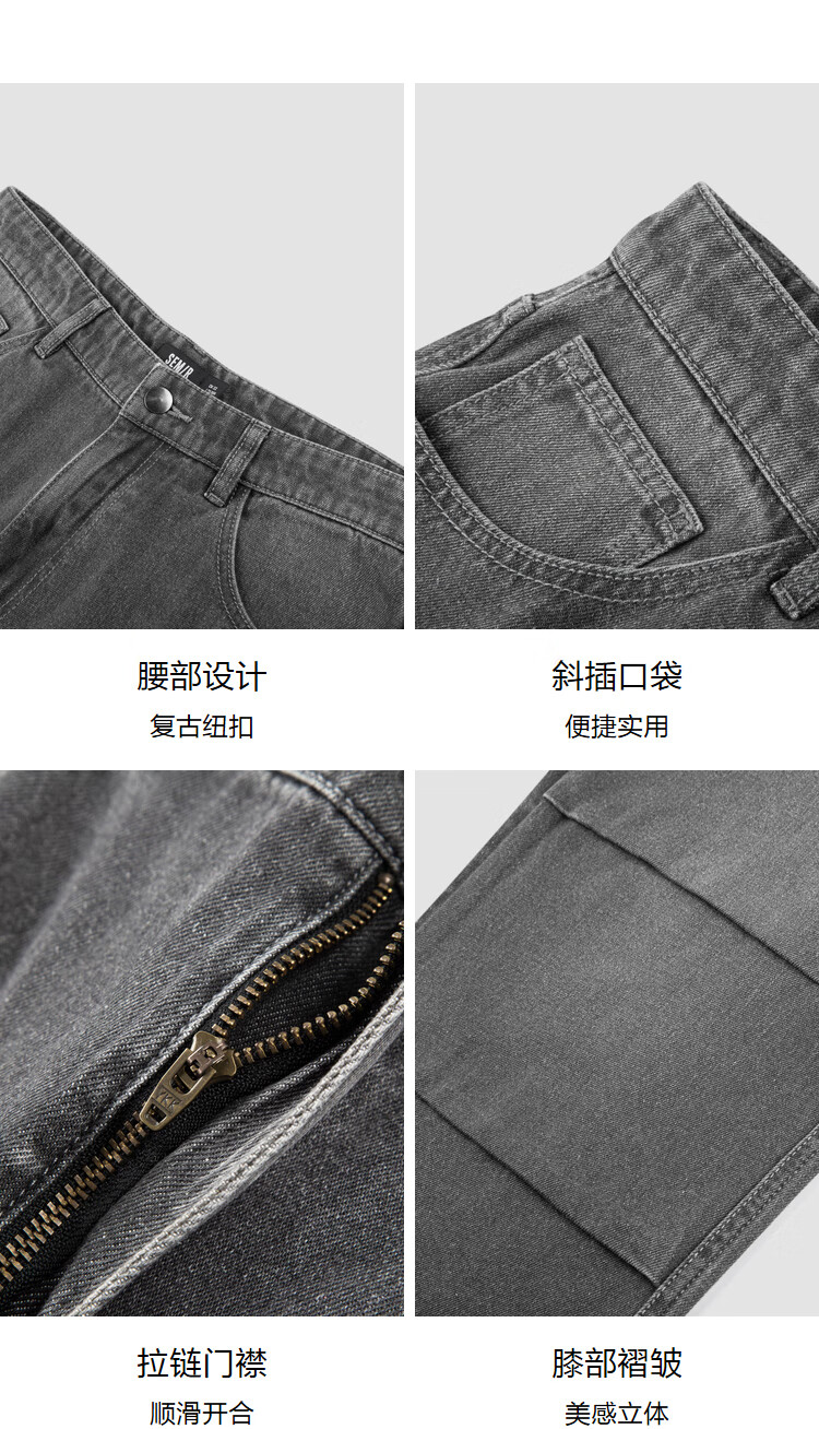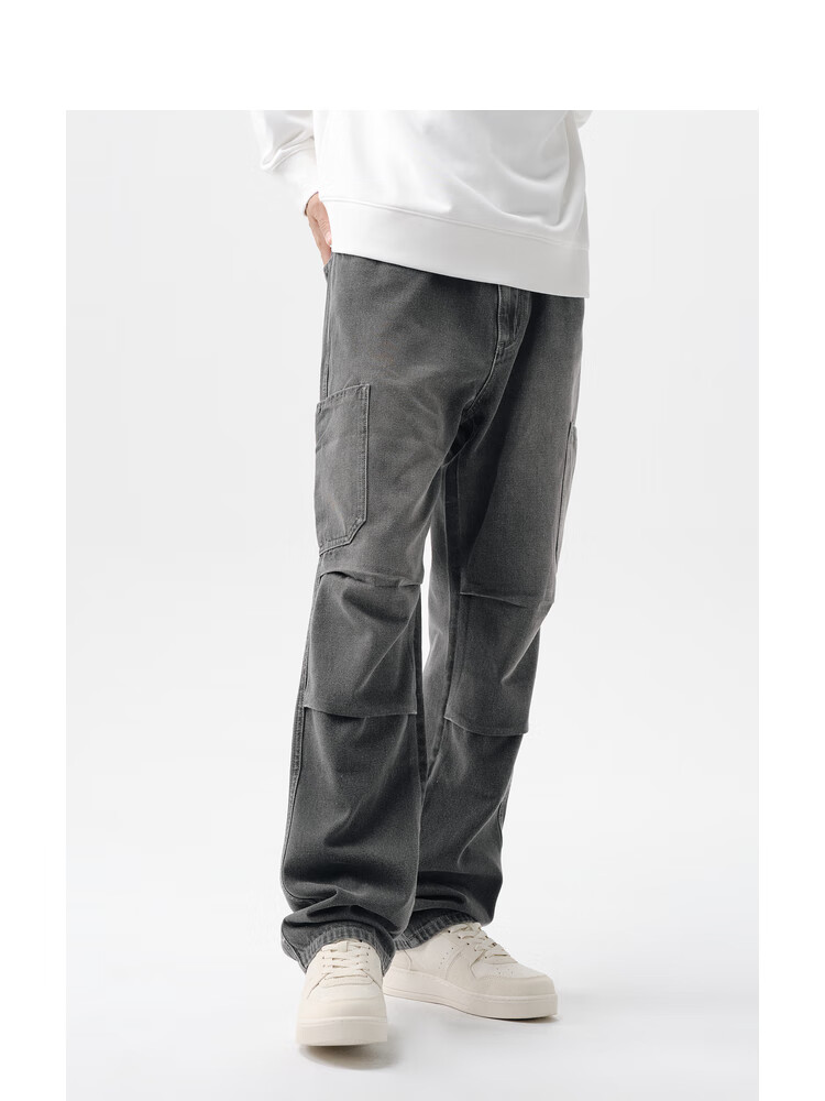 Semir denim trousers for men, spring and autumn retro outdoor overalls, fashionable loose straight pants, gray tone 00422 31