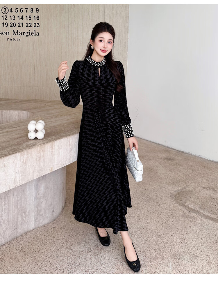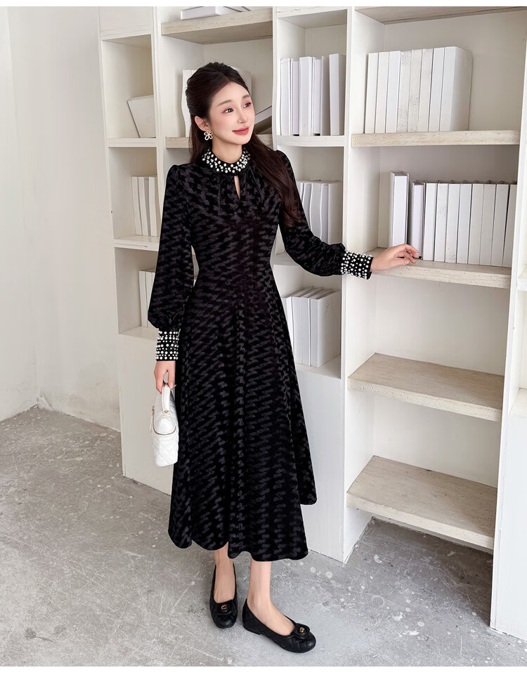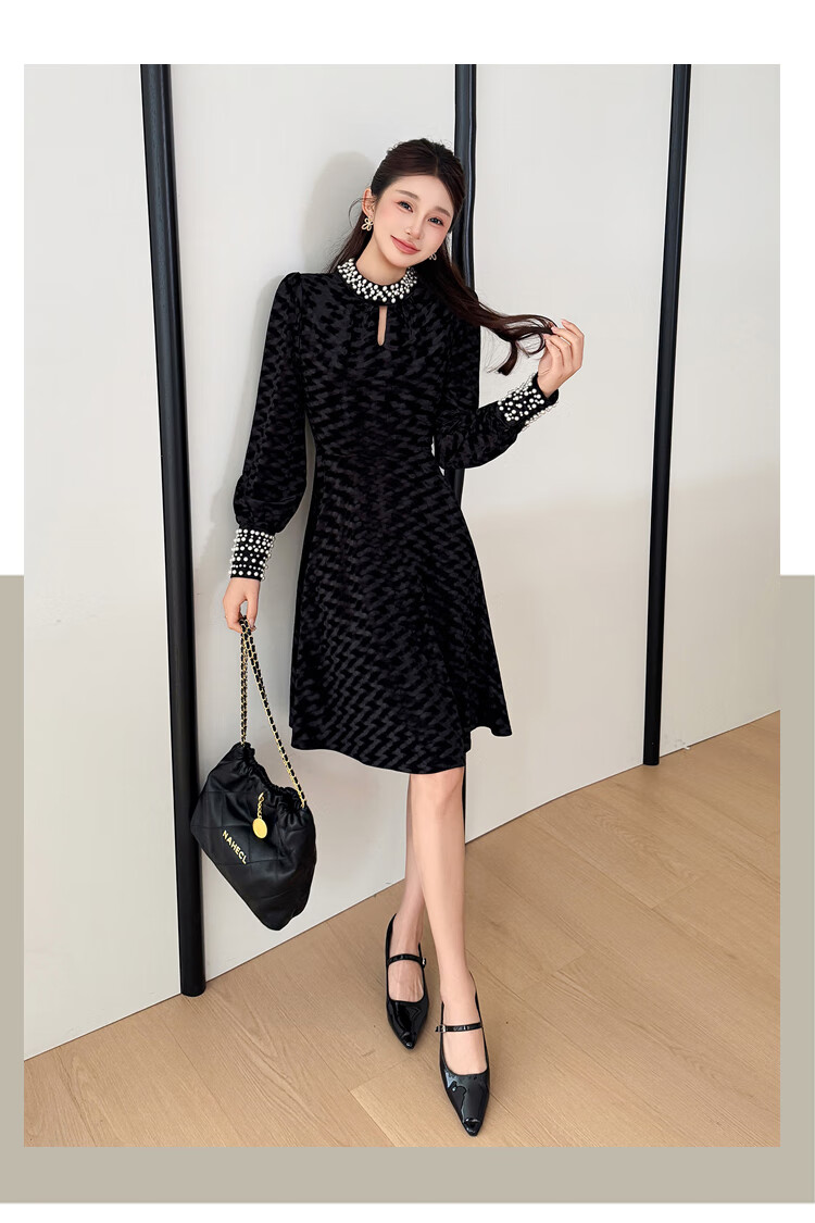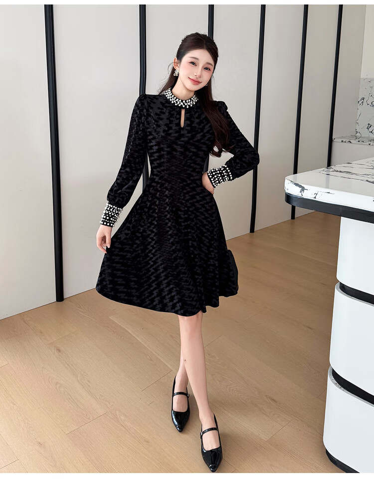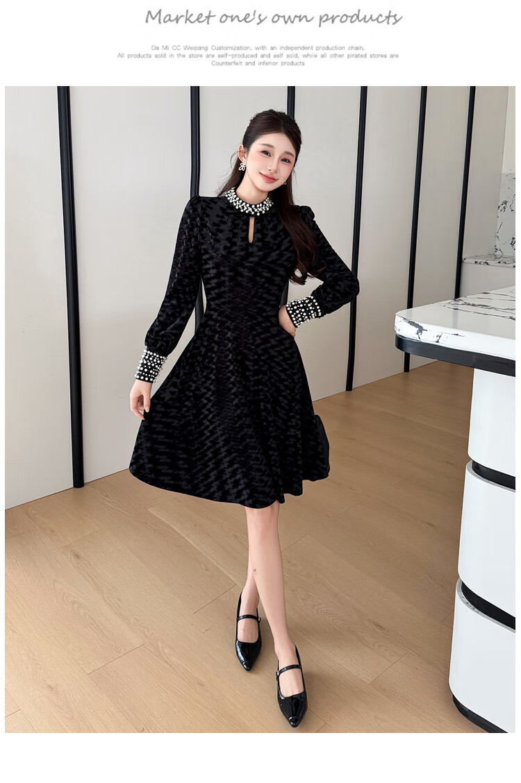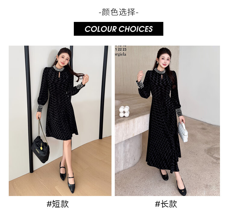 Five orange dresses, new autumn and winter styles, with coats and large beading, Hepburn style black velvet long skirt, black short style L