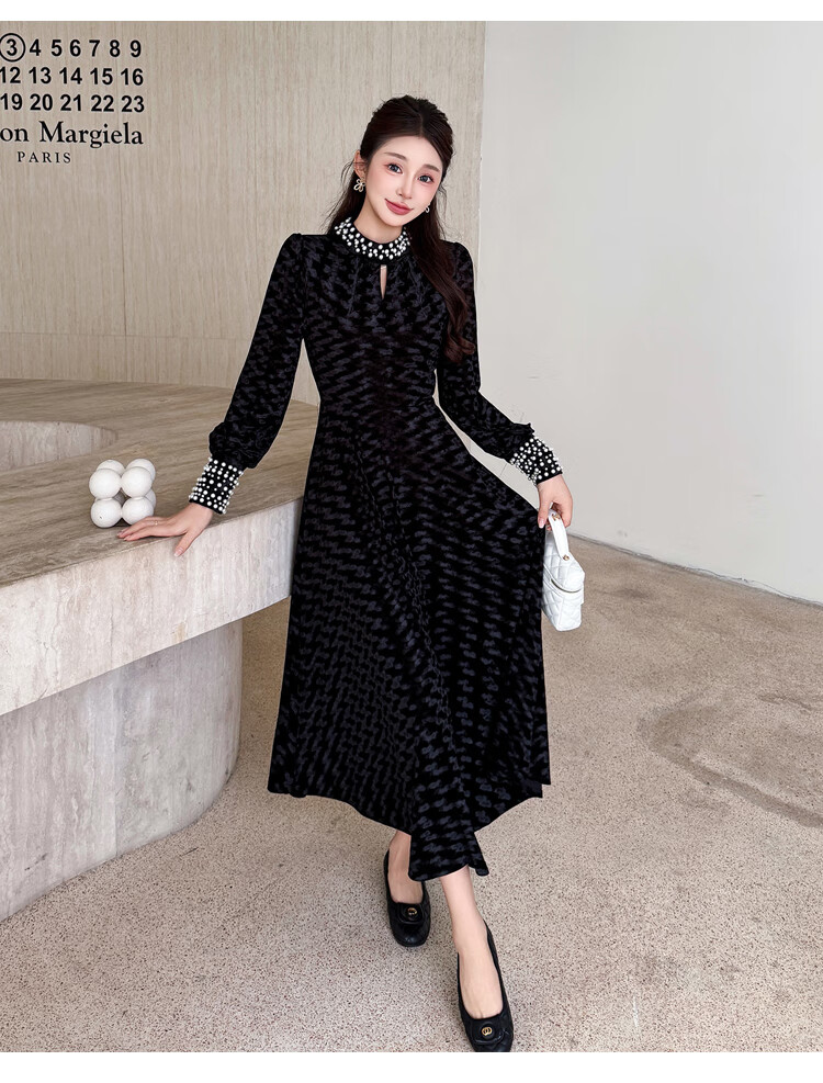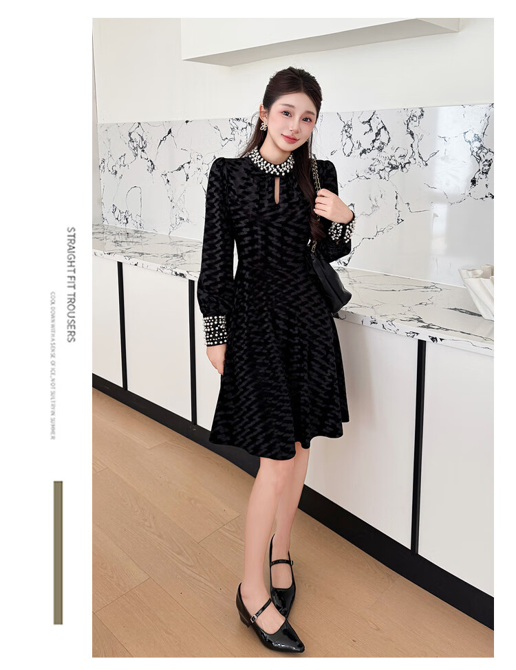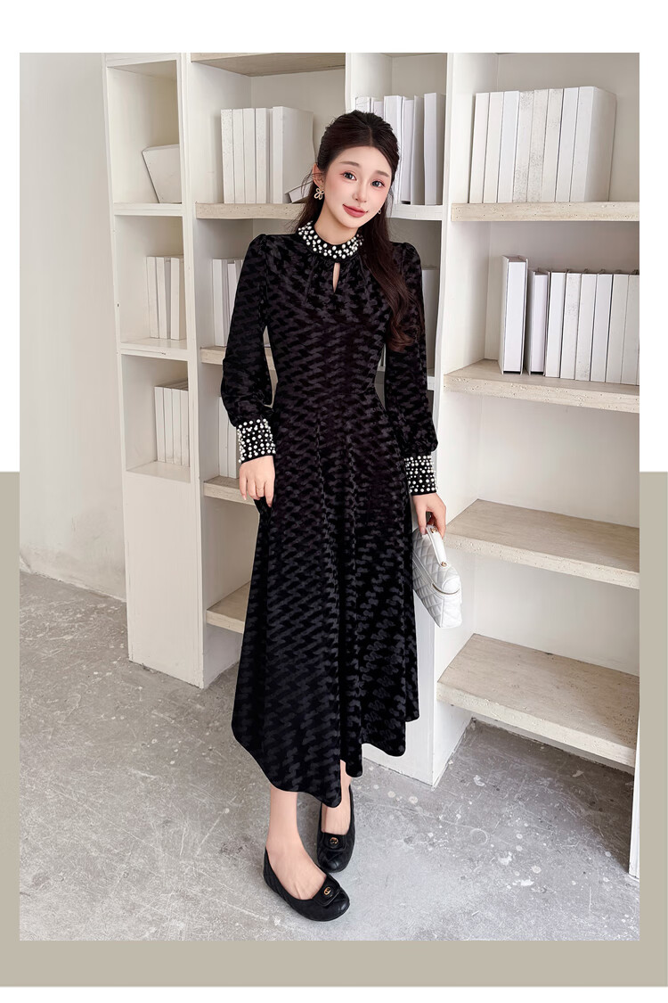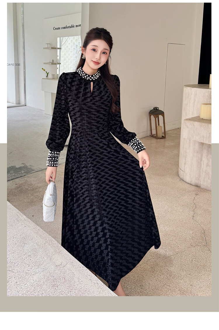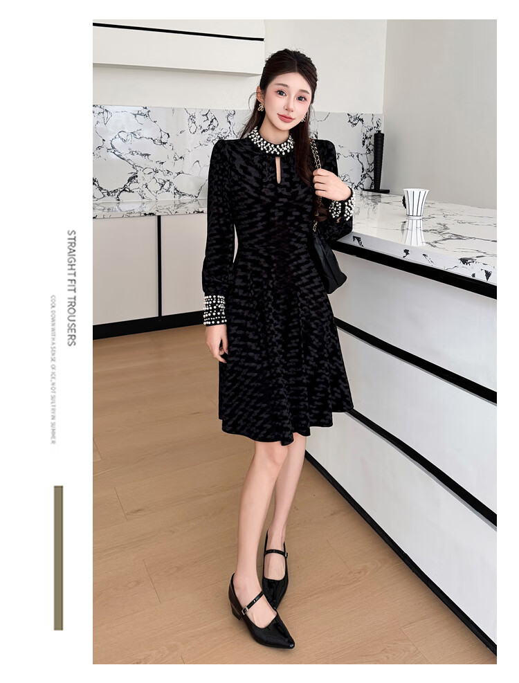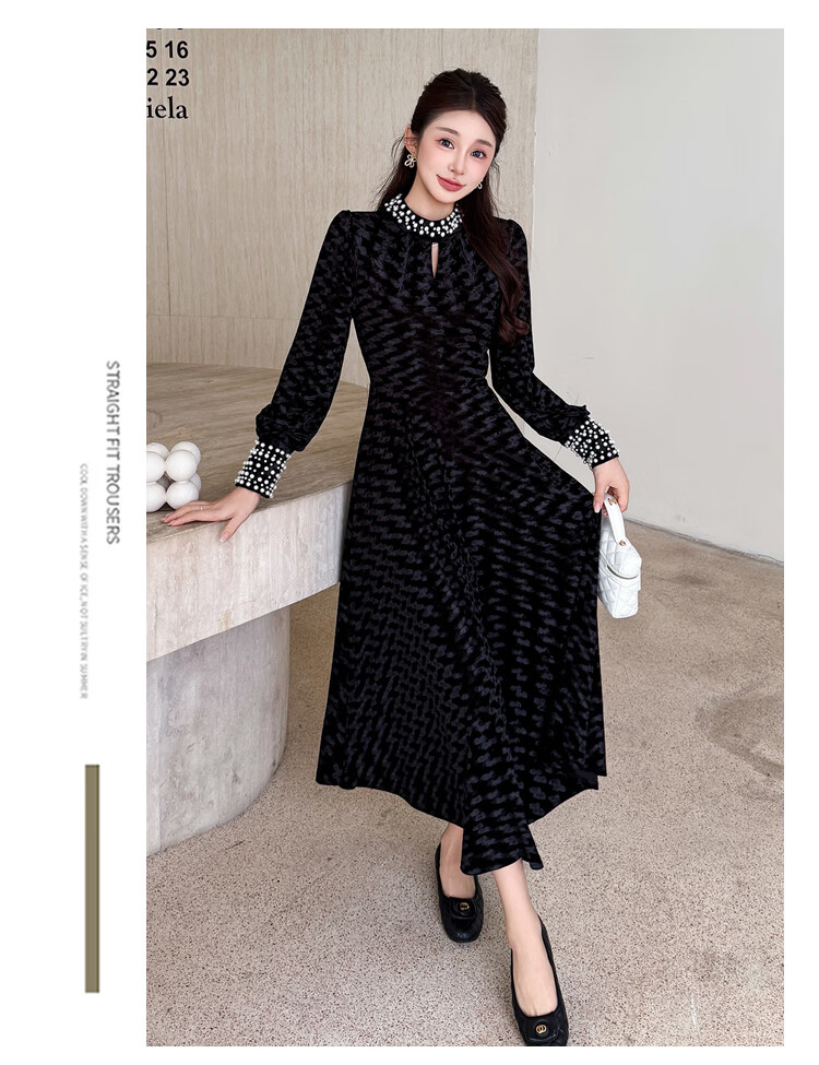 Five orange dresses, new autumn and winter styles, with coats and large beading, Hepburn style black velvet long skirt, black short style L