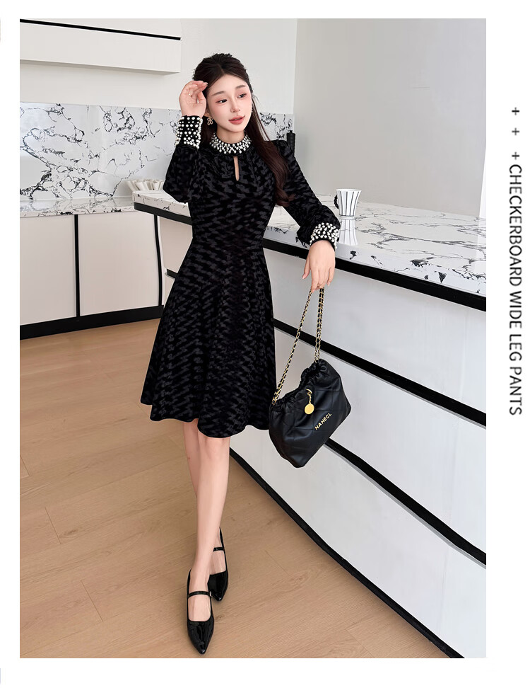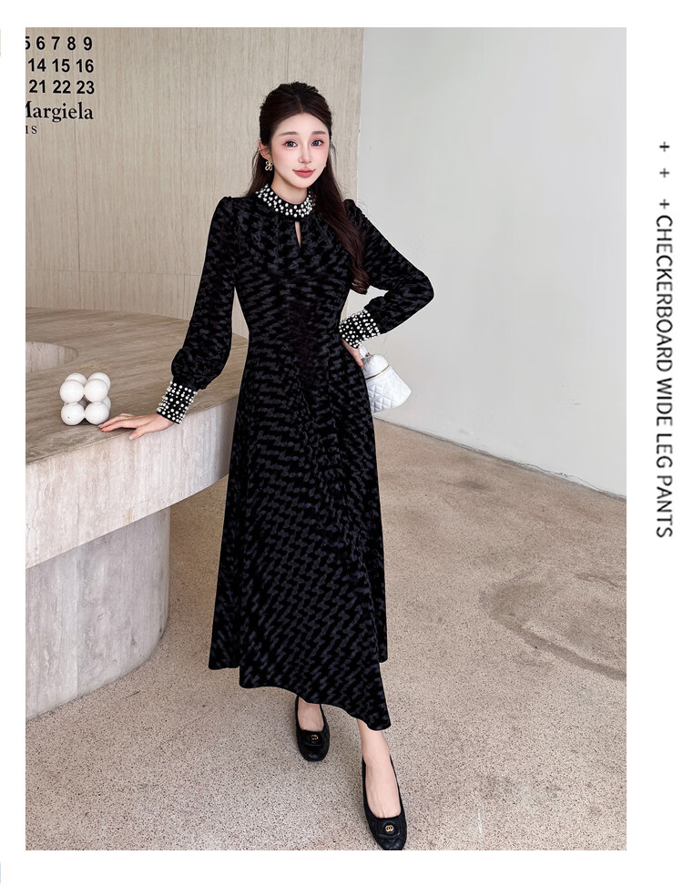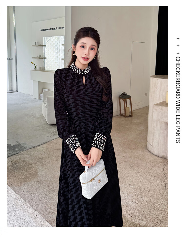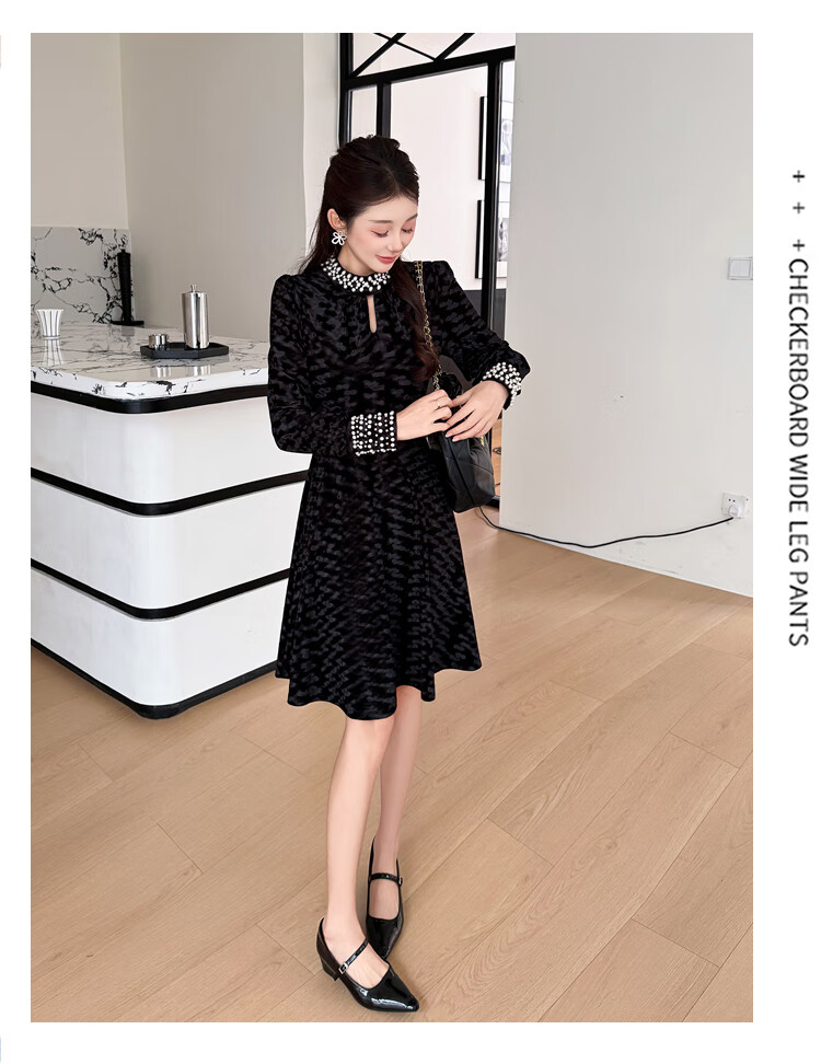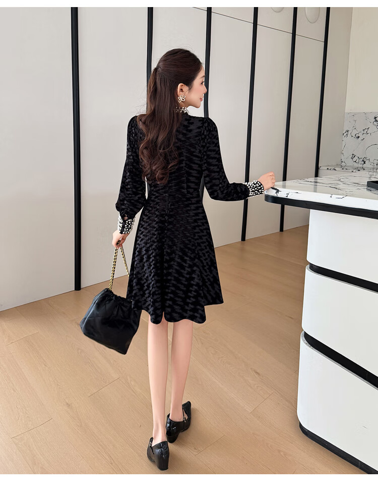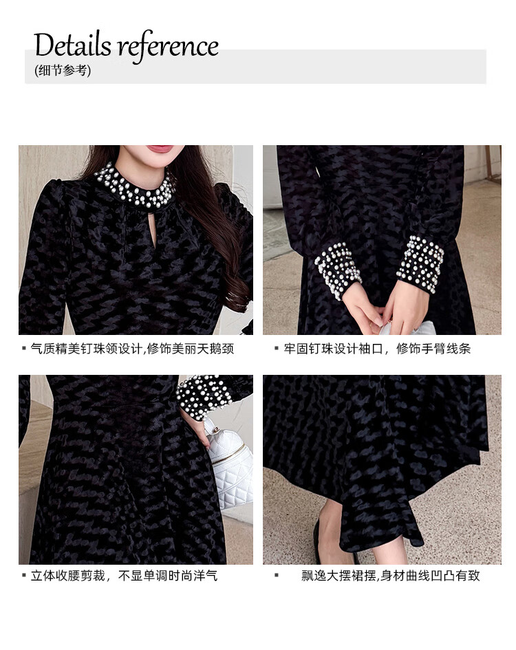 Five orange dresses, new autumn and winter styles, with coats and large beading, Hepburn style black velvet long skirt, black short style L