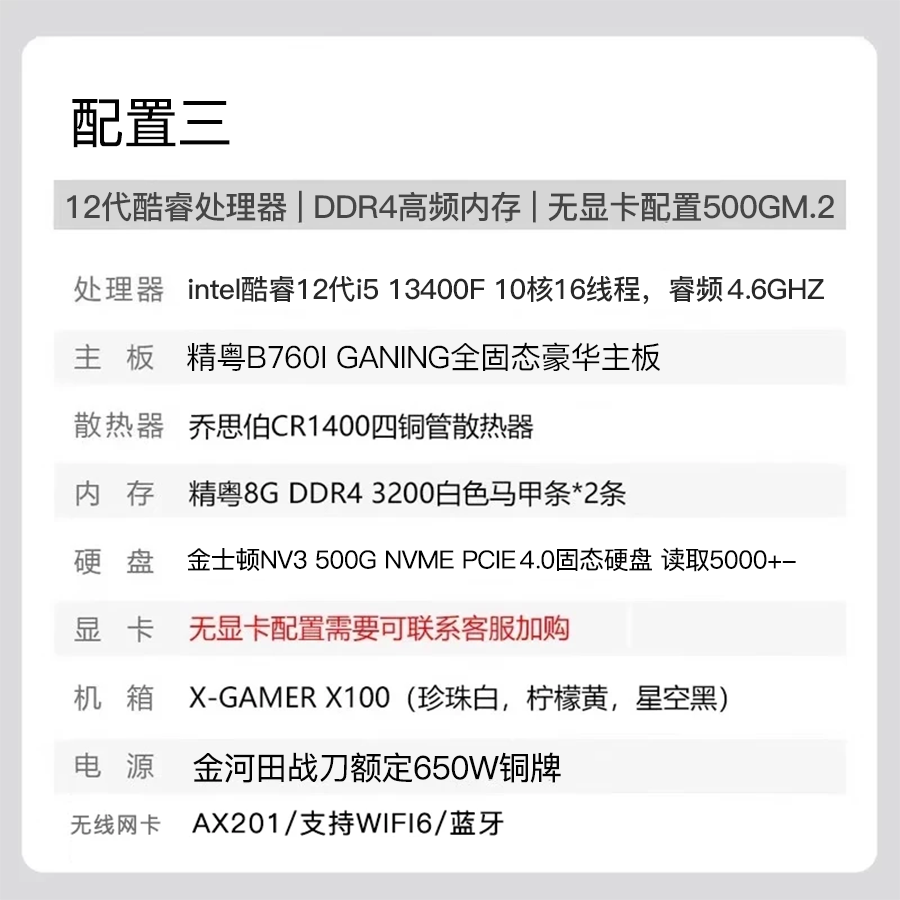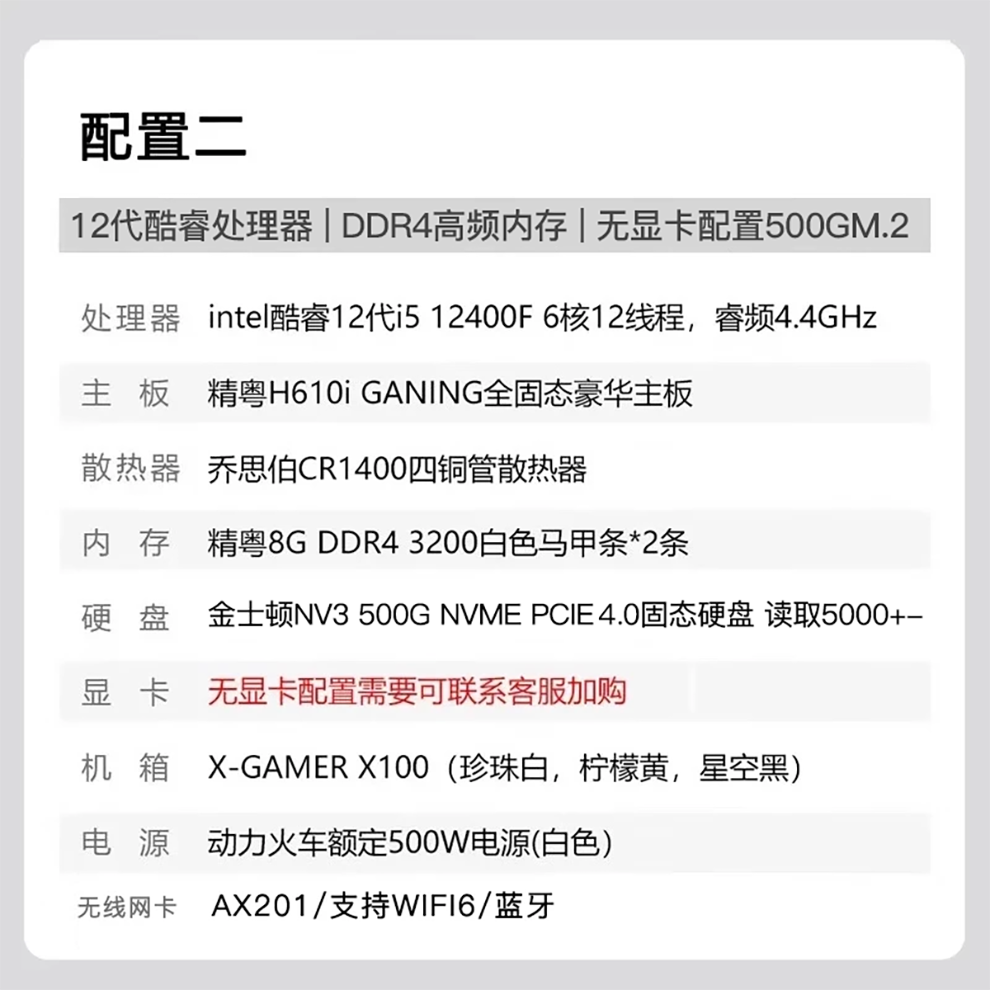 Jingyue Core i3 12100F/i5 12400F/no graphics card computer console game ITX mini host desktop computer eating chicken LOL Yongjie game console DIY assembly machine configuration two i5 12400F/no graphics card/16G/500G with Jingyue RTX3060 12G