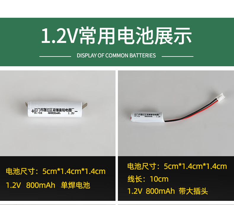 Gongma fire emergency light power accessories 1.2V2.4V3.6V6V800 safety lighting rechargeable battery pack 1.2V800mAh with plug and card strip 5 pcs