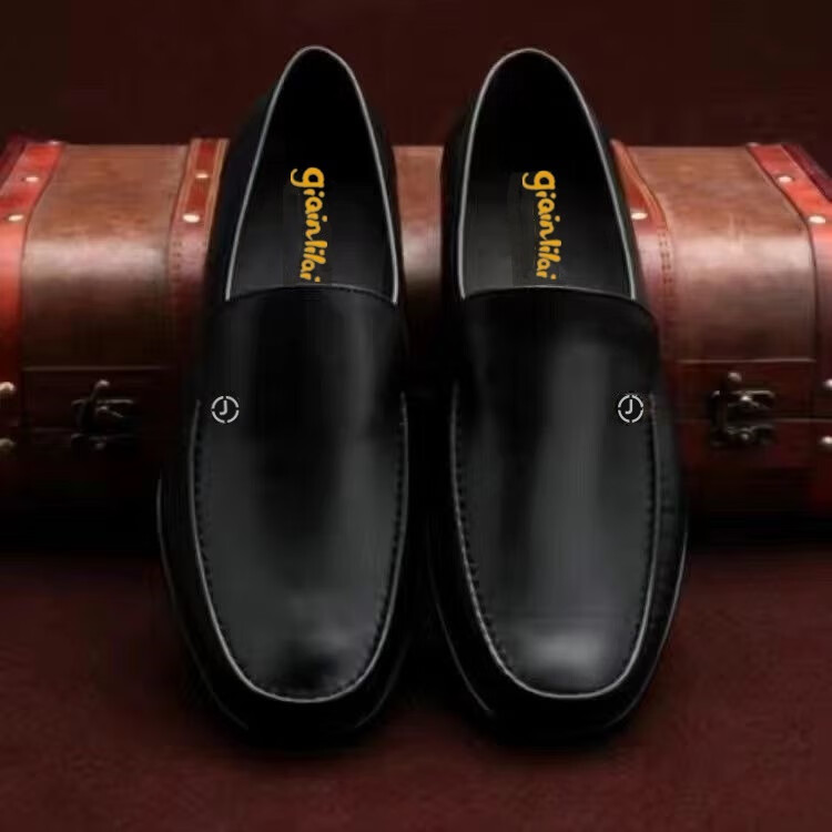 Counter men's toe-layer cowhide business casual shoes men's shoes soft sole soft surface breathable formal shoes office shoes cowhide shoes black first model 40 European size one size larger