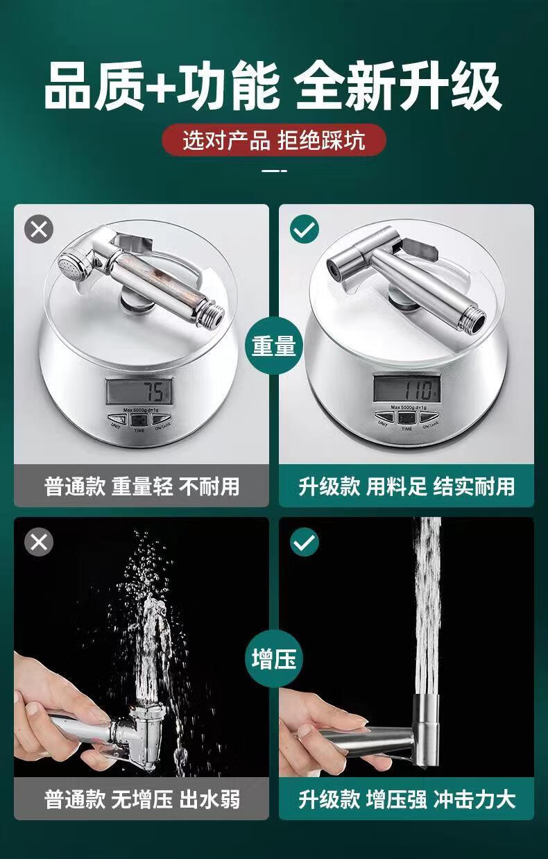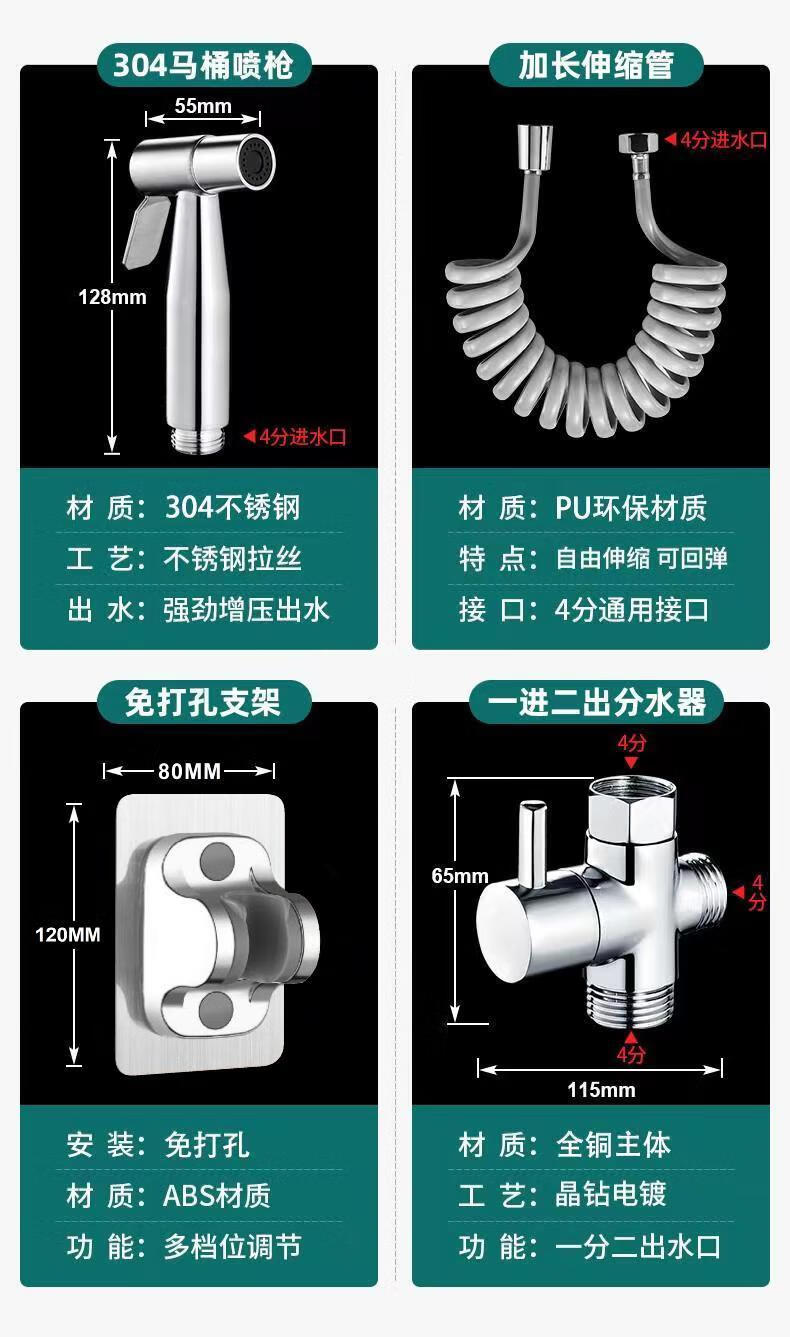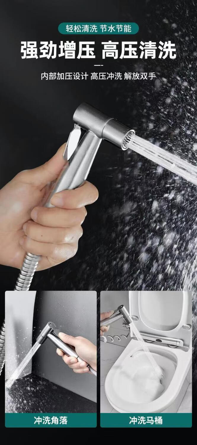 Jomoo new 304 stainless steel booster spray gun faucet flush gun bathroom toilet companion toilet high pressure flushing set brass water diverter switch + spray gun + telescopic tube + paste