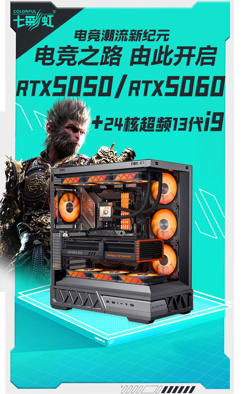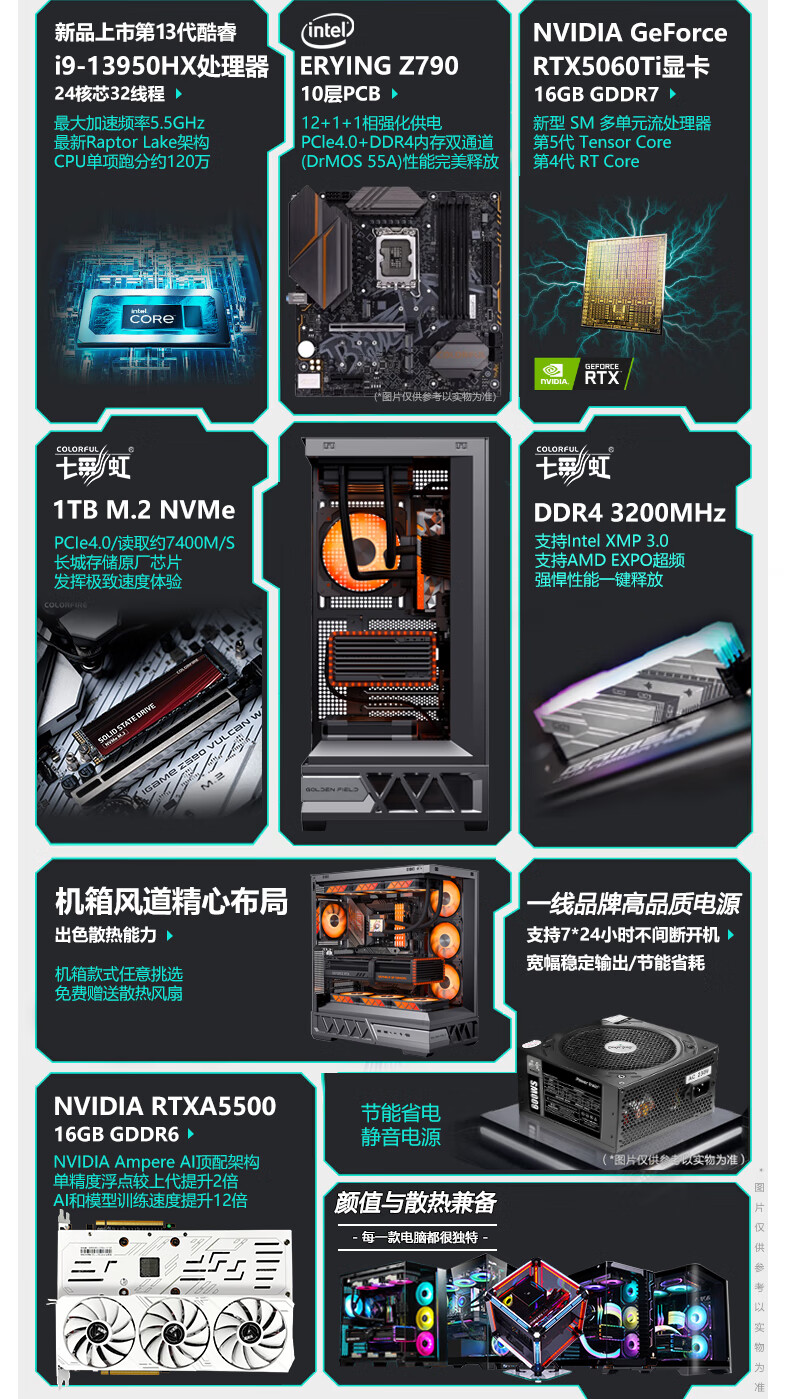 Colorful RTX5060Ti 16G/RTX5060/5050 independent graphics + Intel 24-core overclocked 13th generation i9 13900KF desktop computer e-sports AI design live broadcast assembly host with 10丨24-core 13th generation i9+RTX5060Ti 16G computer host five-year warranty丨new and authentic