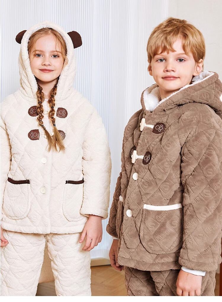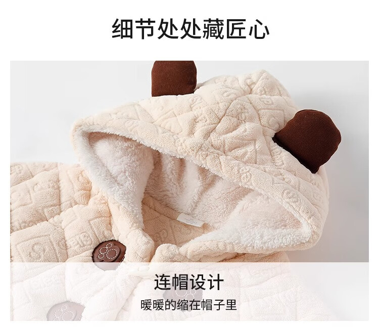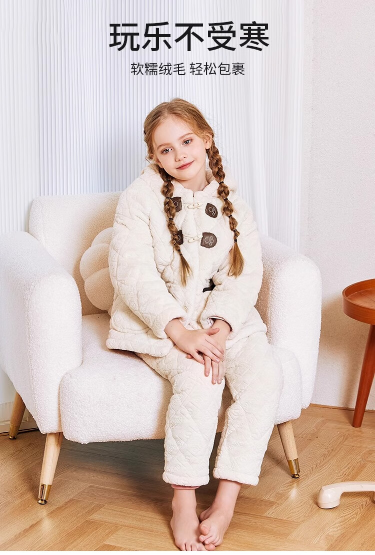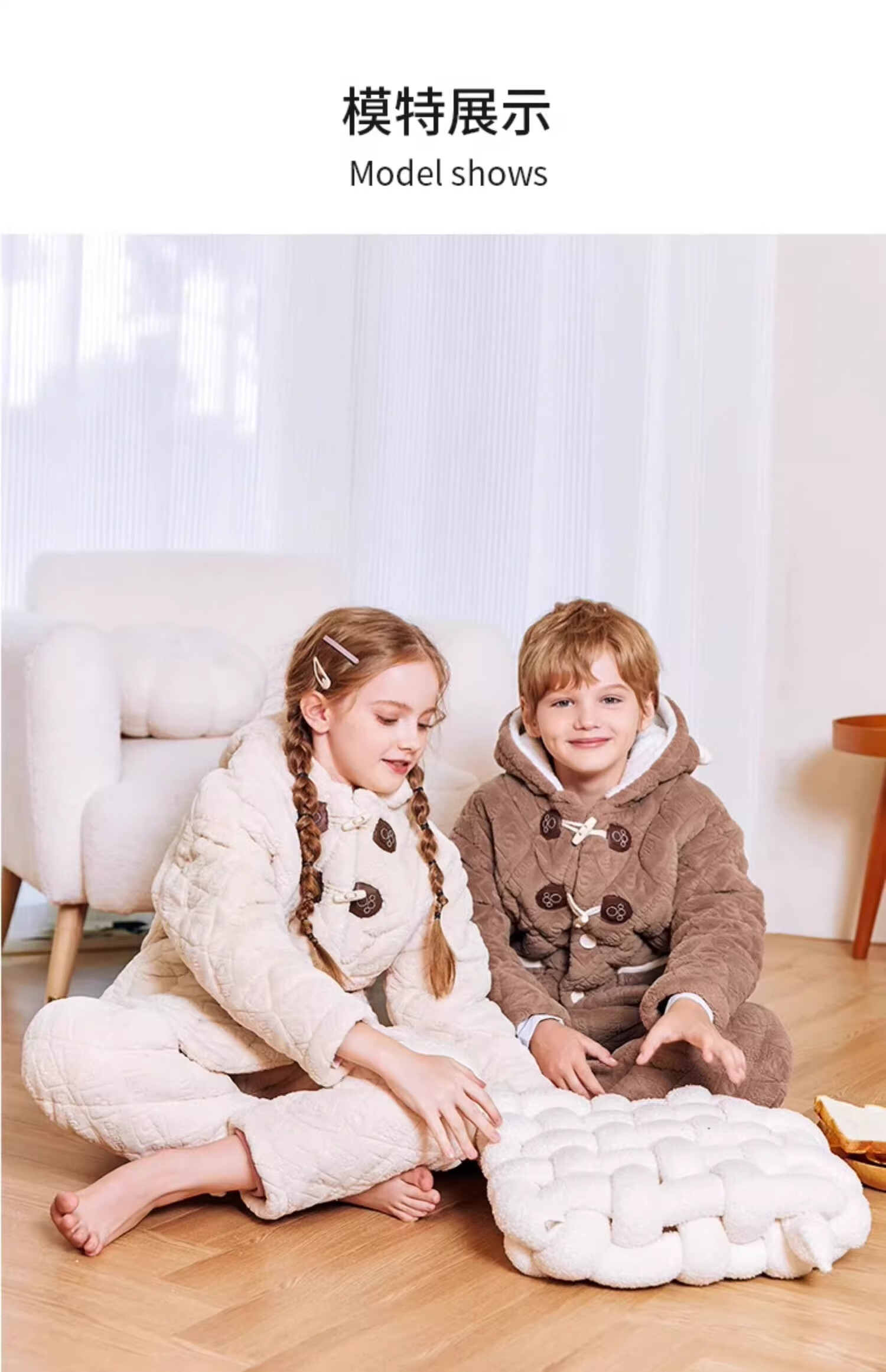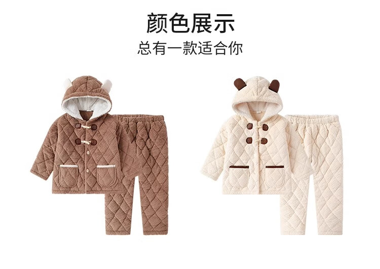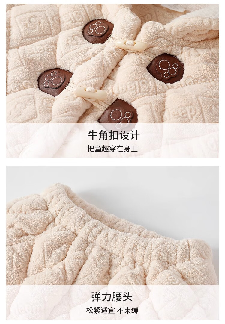 Ying's children's velvet thickened home clothes suit winter style boys and girls autumn and winter hooded outer pajamas beige 140