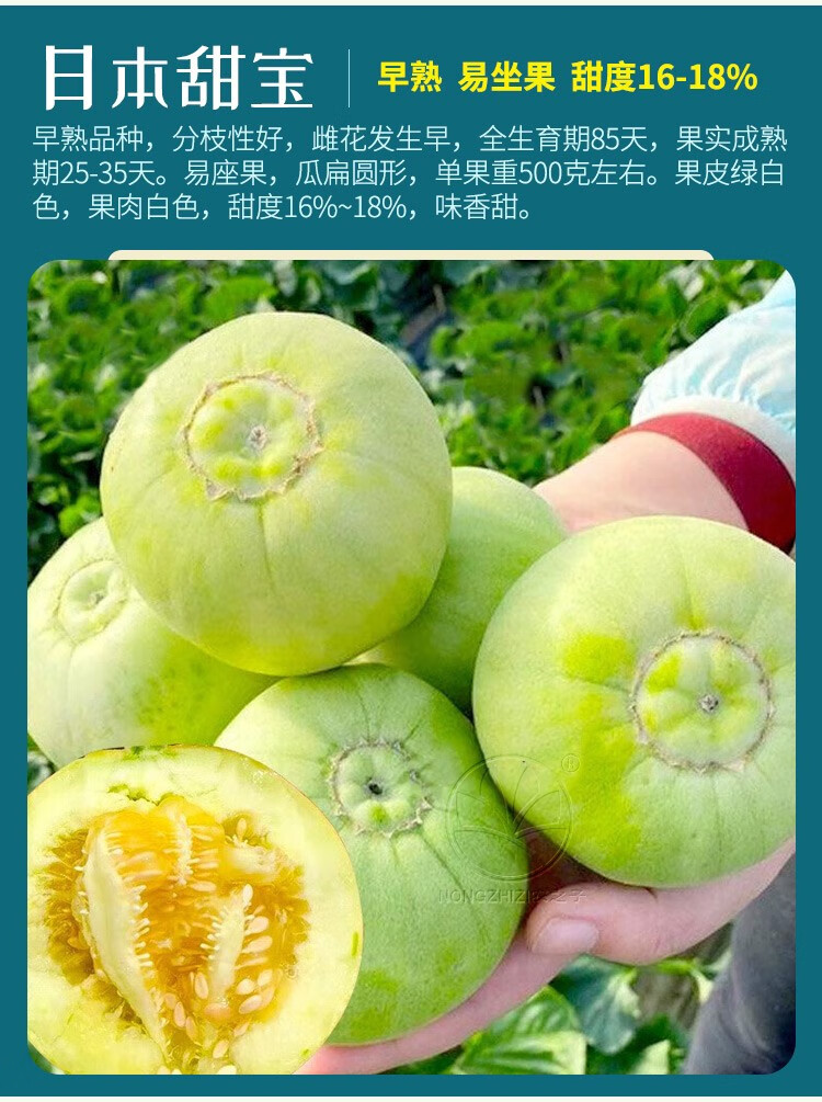Farmer's Son Japanese Sweet Treasure Melon Seeds Old Variety Early-maturing Thin-Skinned Rock Sugar Melon Seeds (R) Fuji Sweet Treasure Musk Melon Seeds 10gx2