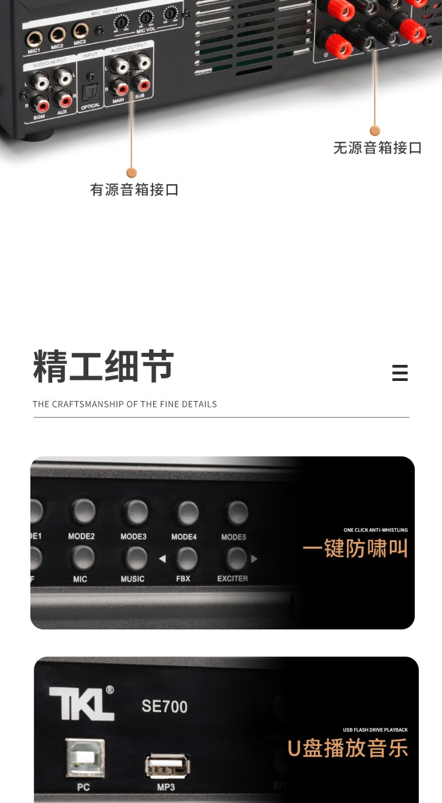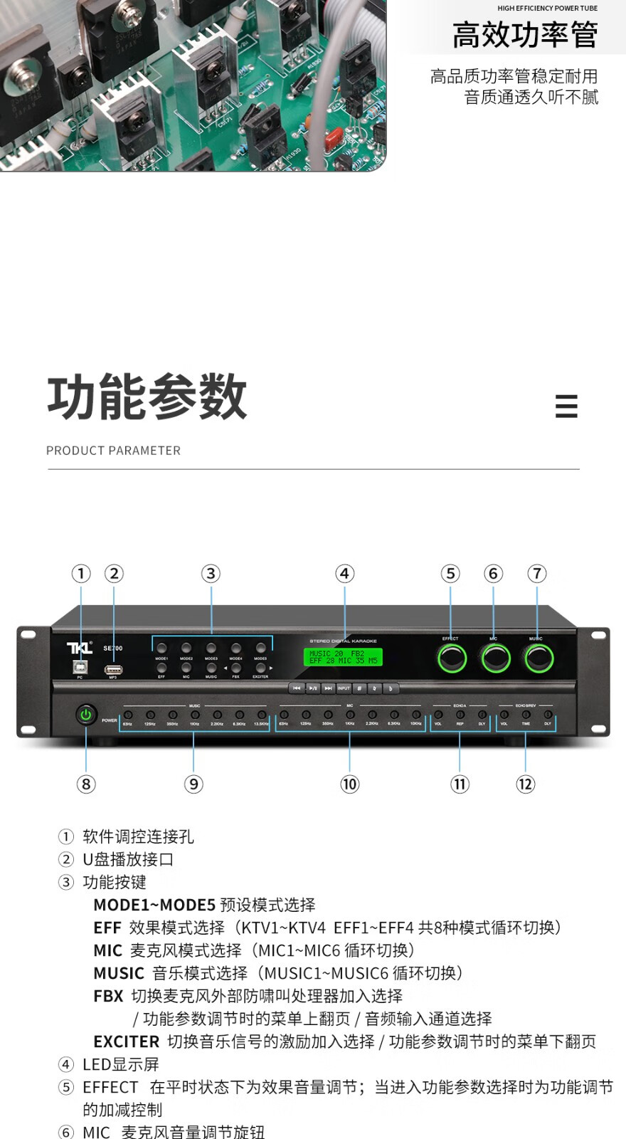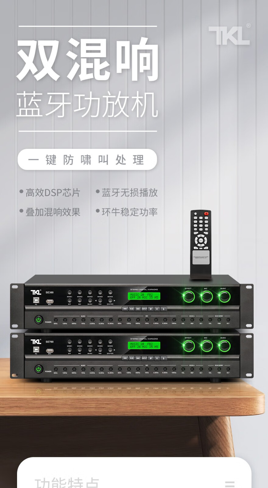 TKL SE series pre-amp effector with power amplifier all-in-one home intelligent suppression and anti-howling home karaoke digital reverberation amplifier KTV SE700 (500W*2)