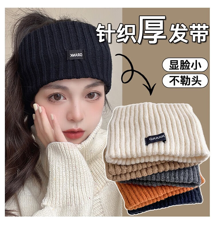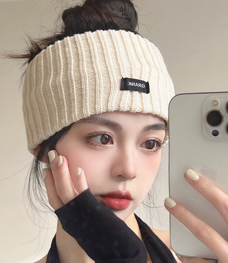 Laishuhui headband warm hairband wool knitted hairband autumn and winter forehead protector wiping forehead sports headband women's confinement headscarf headband off-white wide-brimmed thick hairband