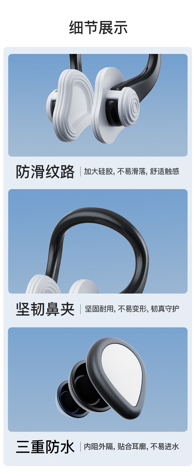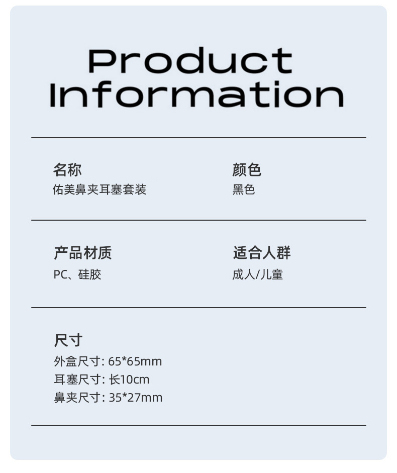 Youmei Swimming Earplugs Waterproof Professional Swimming and Bathing Anti-water Ingress No Soundproof Anti-Choking Children's Diving Nose Clip Artifact Set Nose Clip + Earplugs Piano Black