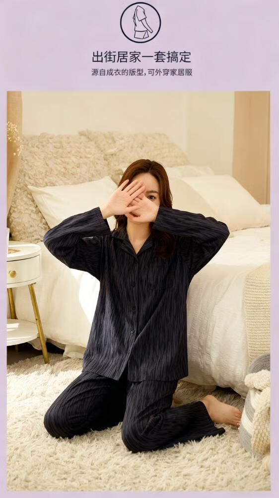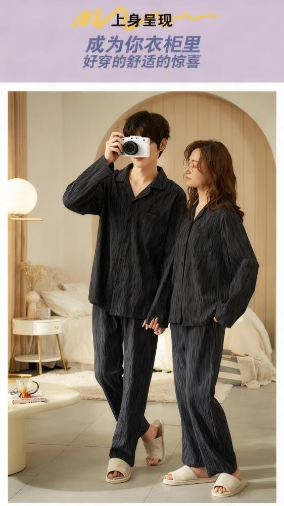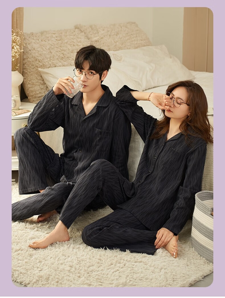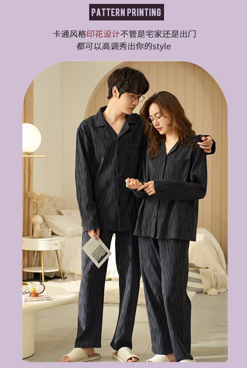 Bo Na Ling Pajamas Couple One Male One Female Cardigan Long Sleeve Tree Pattern Men and Women Can Wear Out Printed Pocket Pajamas Home Clothes Set Couple Pajamas Black Stripes Men's XL