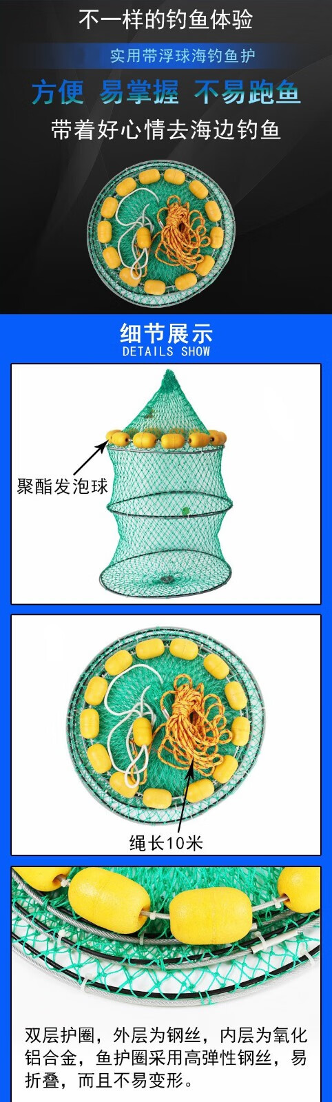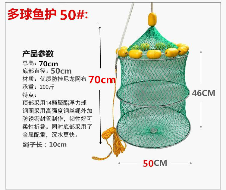 Mi Lan Duo Floating Ball Sea Fishing Equipment Fishing Net Bagji Fishing Boat Fishing Platform Fishing Floating Fish Bag Foldable Portable Fishing Gear Three Floating Ball Fish Protector Diameter 40
