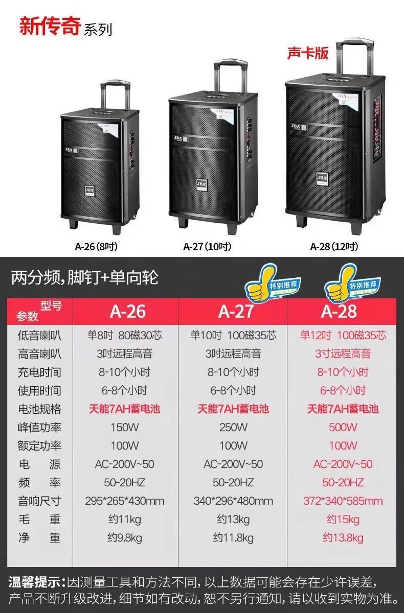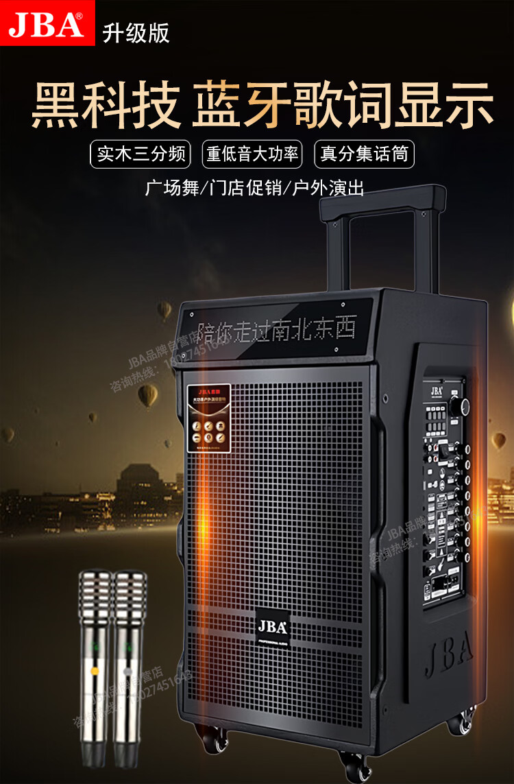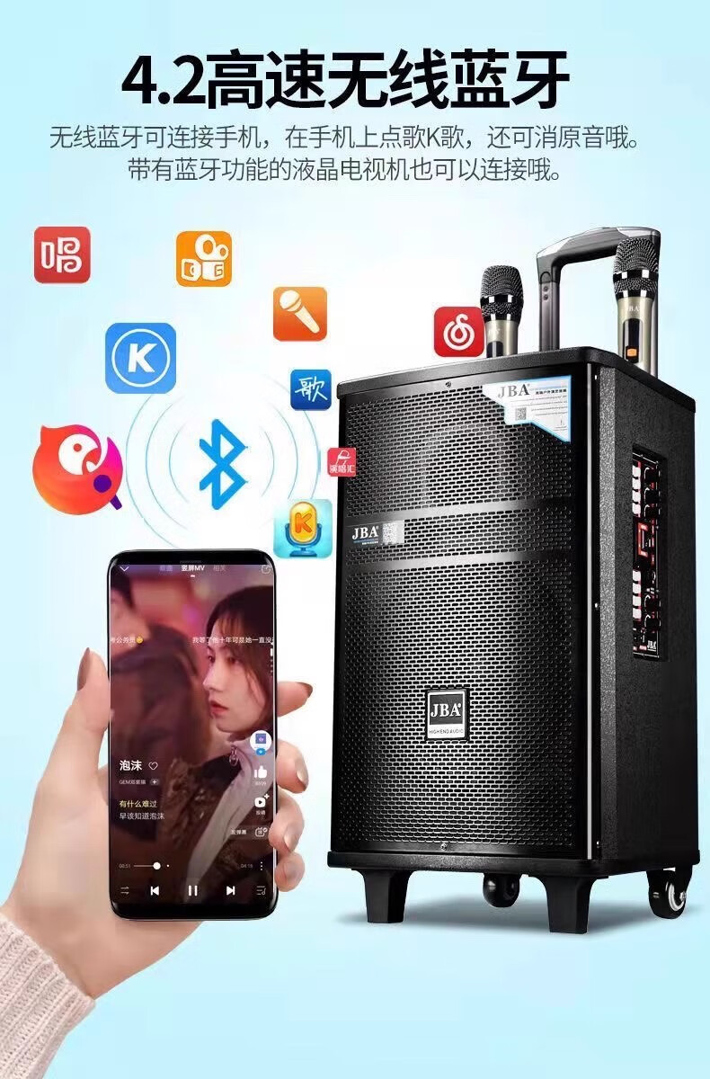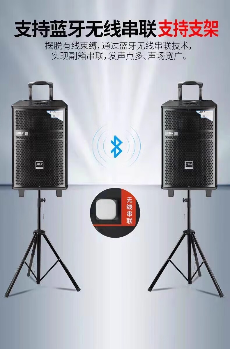JBA outdoor square dance singing speaker with sound card professional karaoke speaker high-power trolley speaker wireless bluetooth school meeting event hotel portable wireless microphone A-26 (8 inches) + luxury gift package
