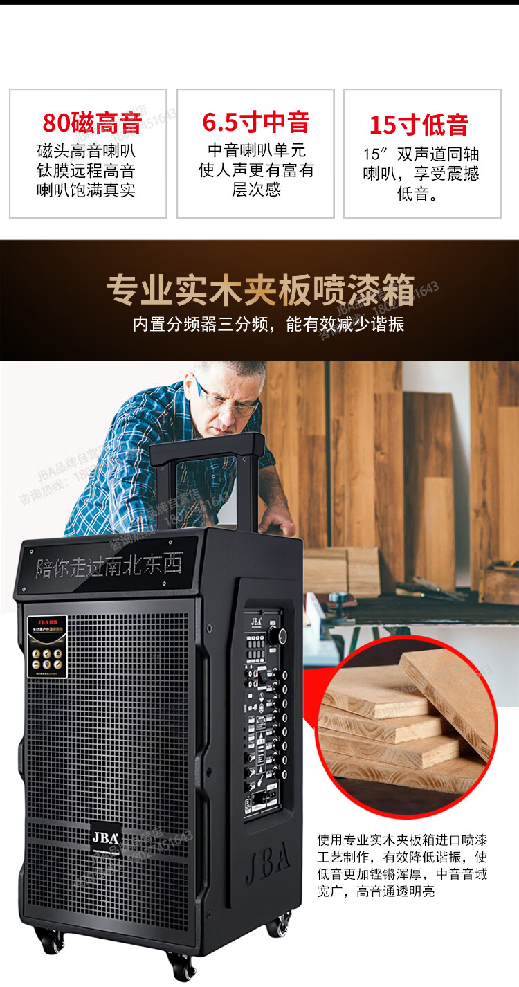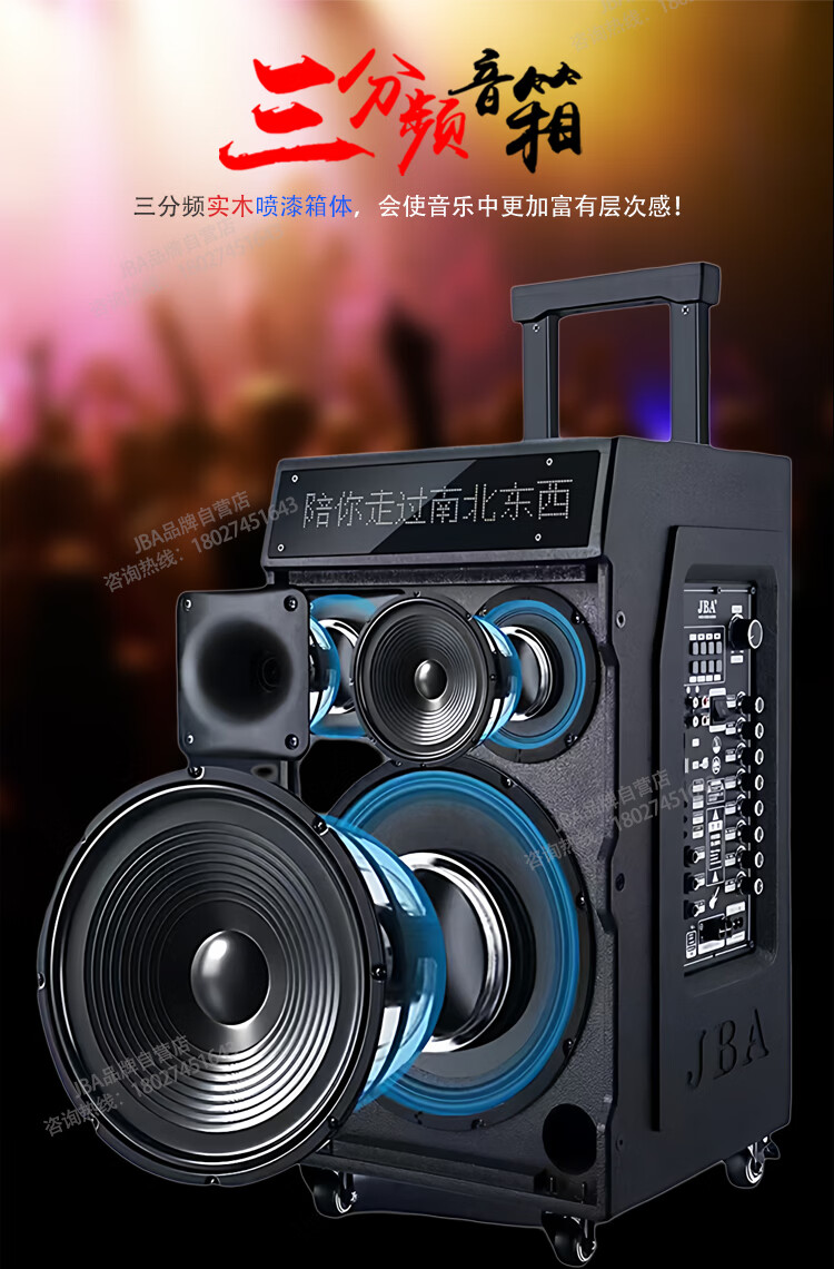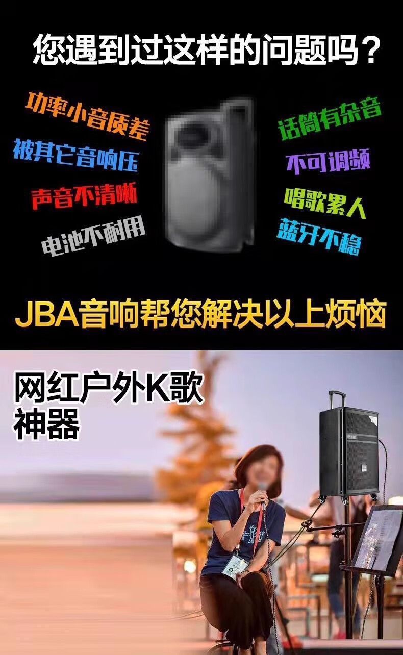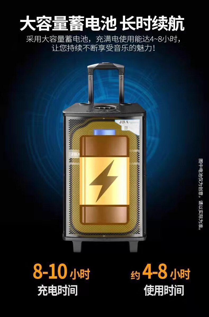 JBA outdoor square dance singing speaker with sound card professional karaoke speaker high-power trolley speaker wireless bluetooth school meeting event hotel portable wireless microphone A-26 (8 inches) + luxury gift package