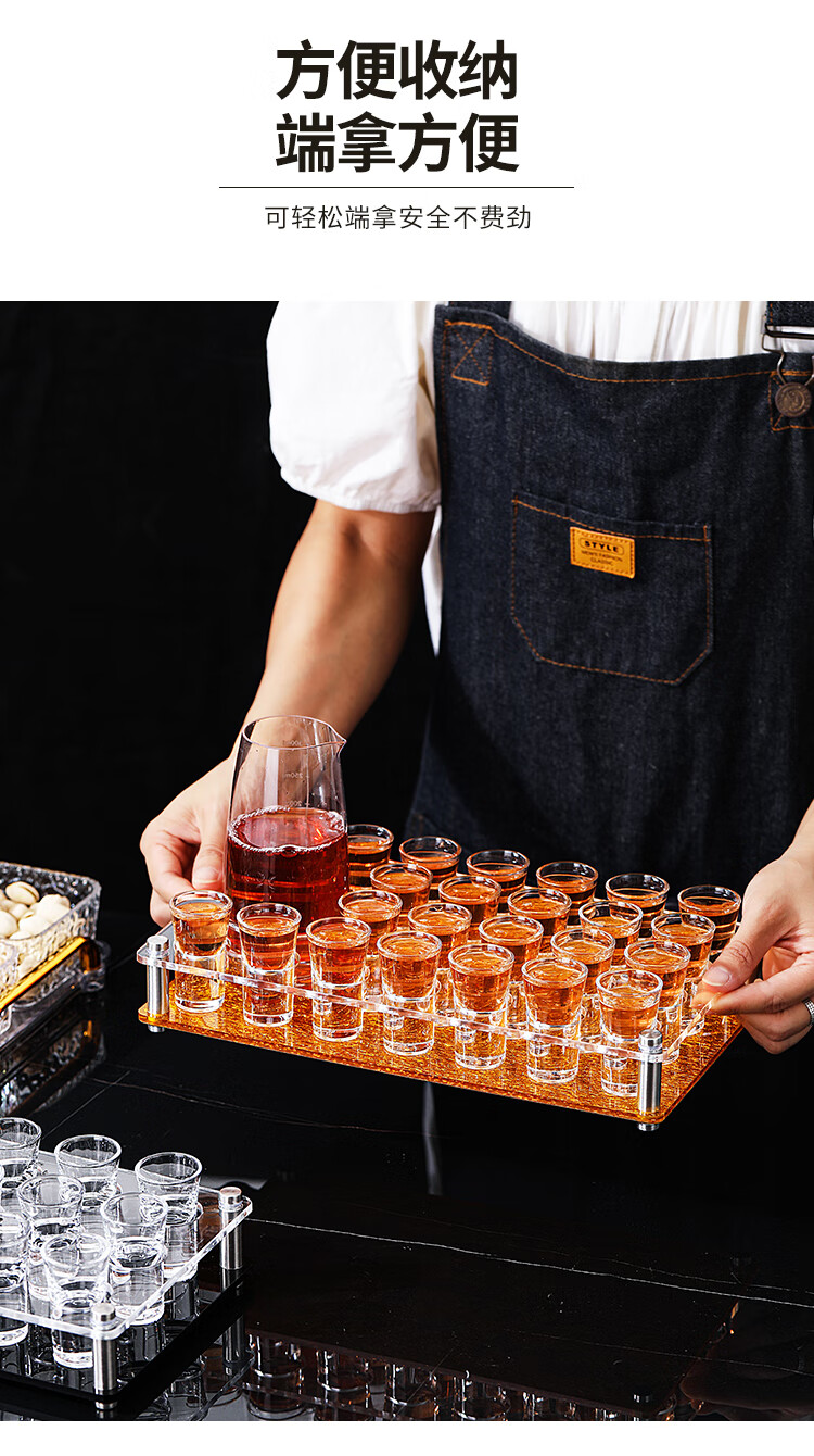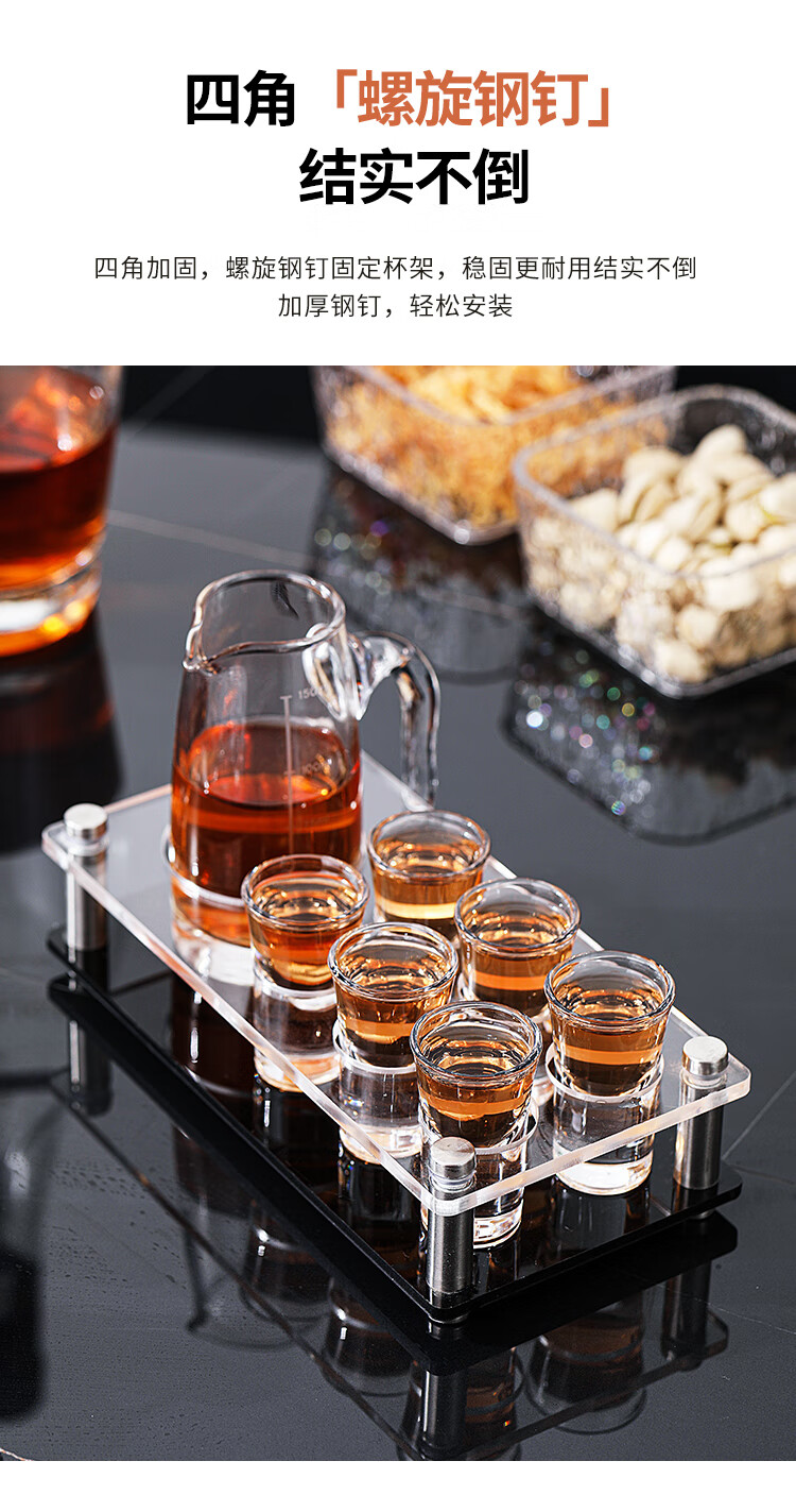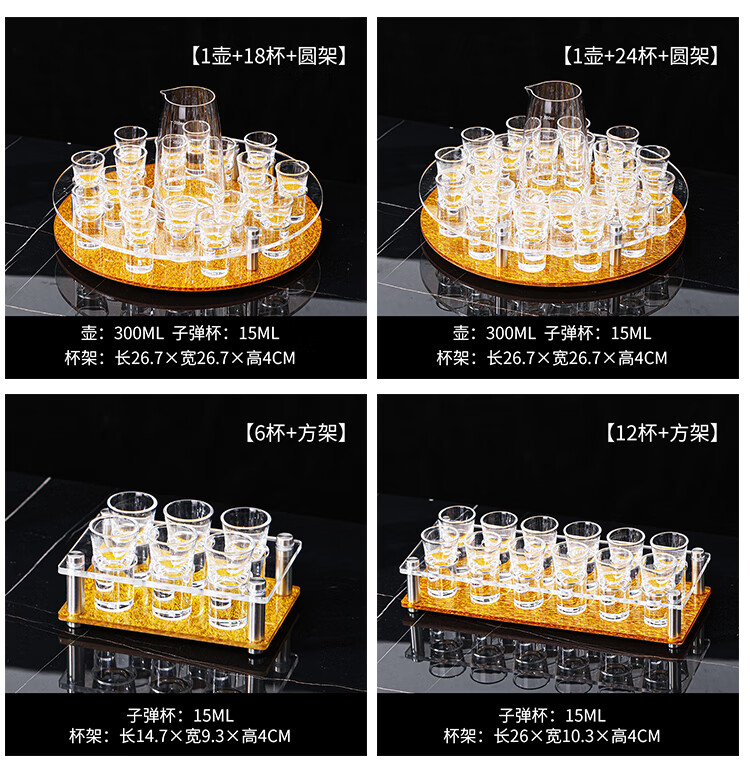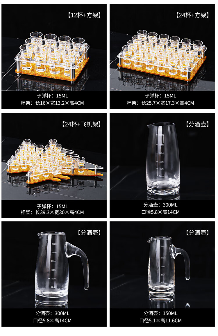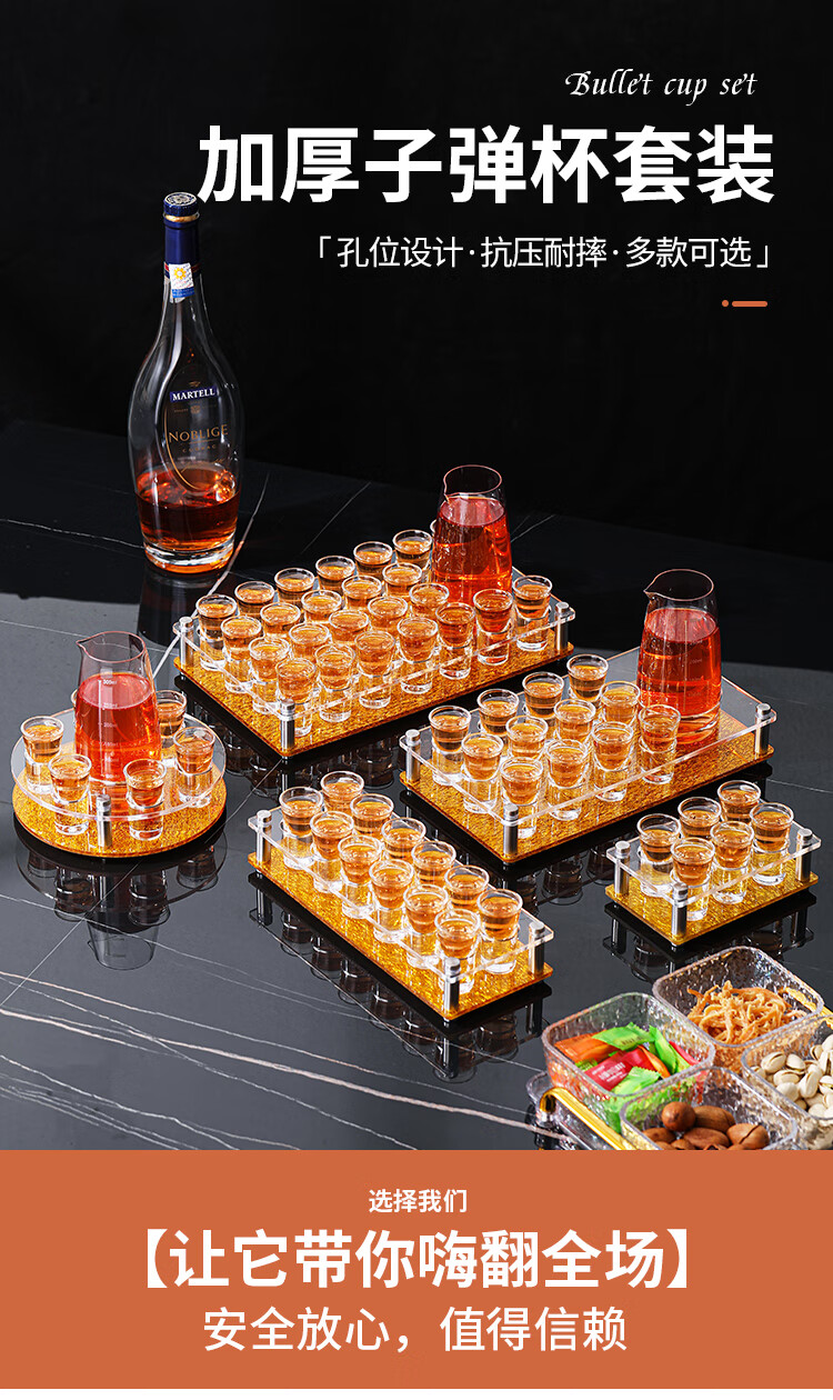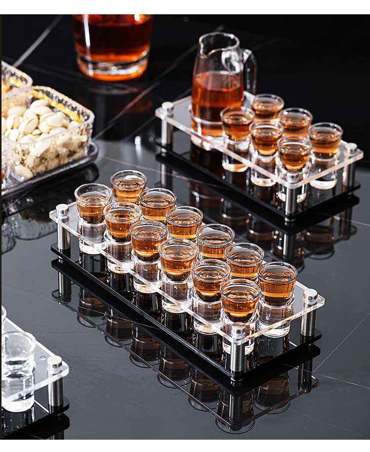 Bullet cup holder set bar KTV liquor glass shot small home foreign wine one cup cocktail b52 12 pieces + 12 holes double row black bottom cup holder 15ml bullet cup