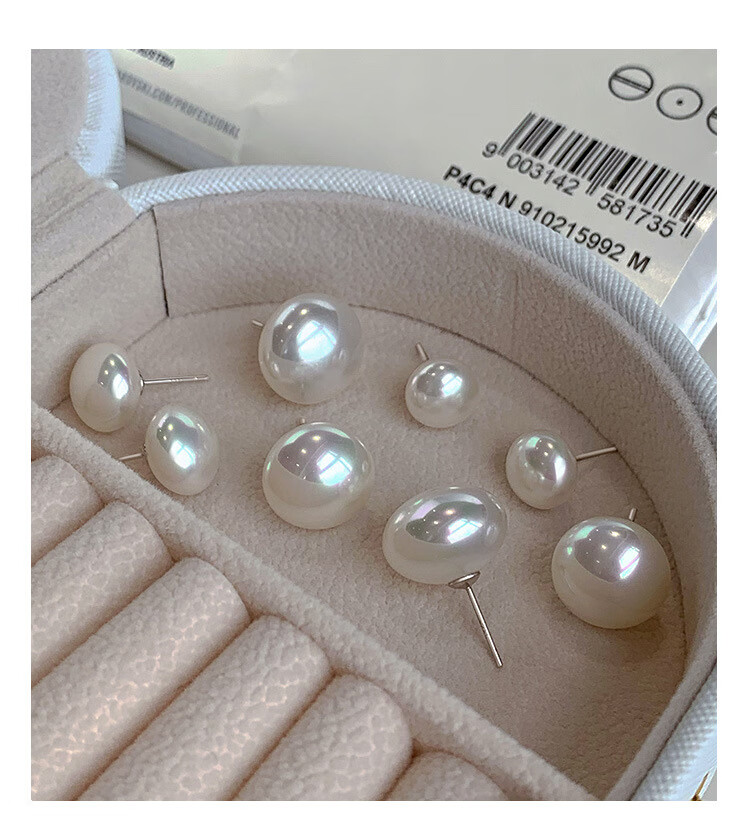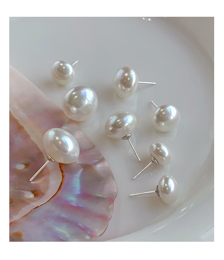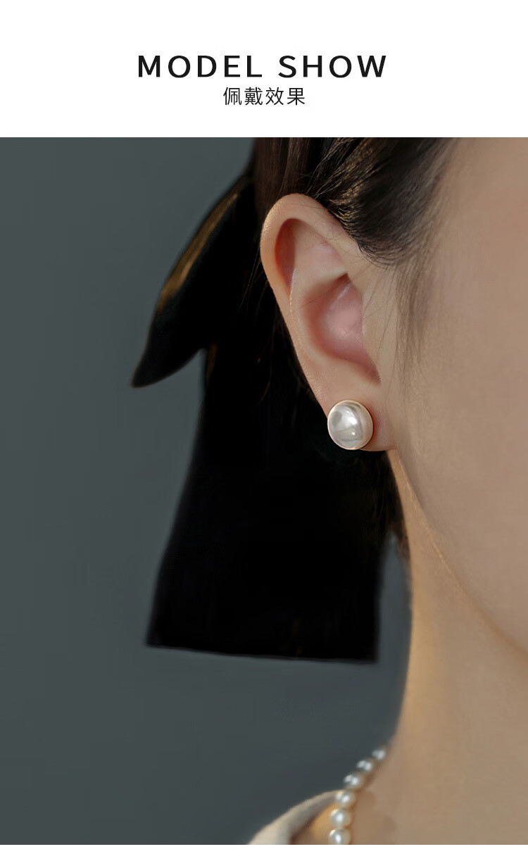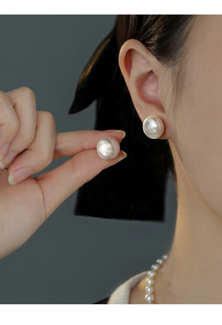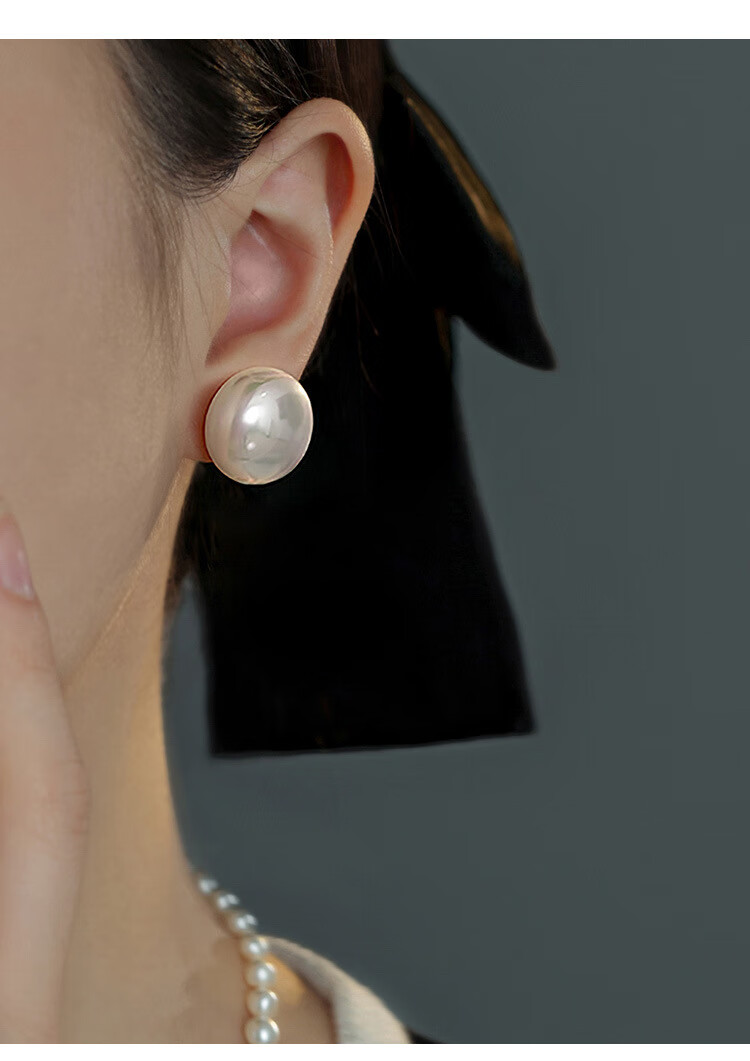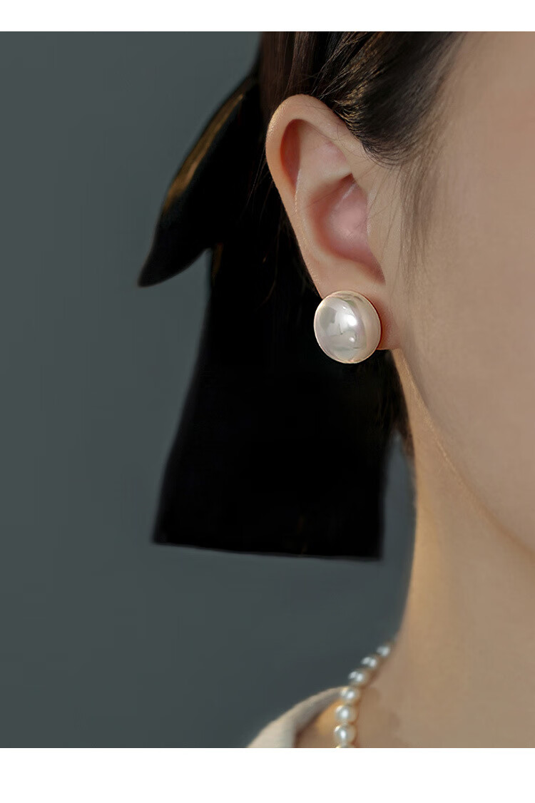 YaoYiZun Steamed Bun Beads Pearl Earrings Women's Valentine's Day Gift Birthday Gift for Wife Earrings Light Luxury Earrings Flat Round Pearl Earrings-14mm
