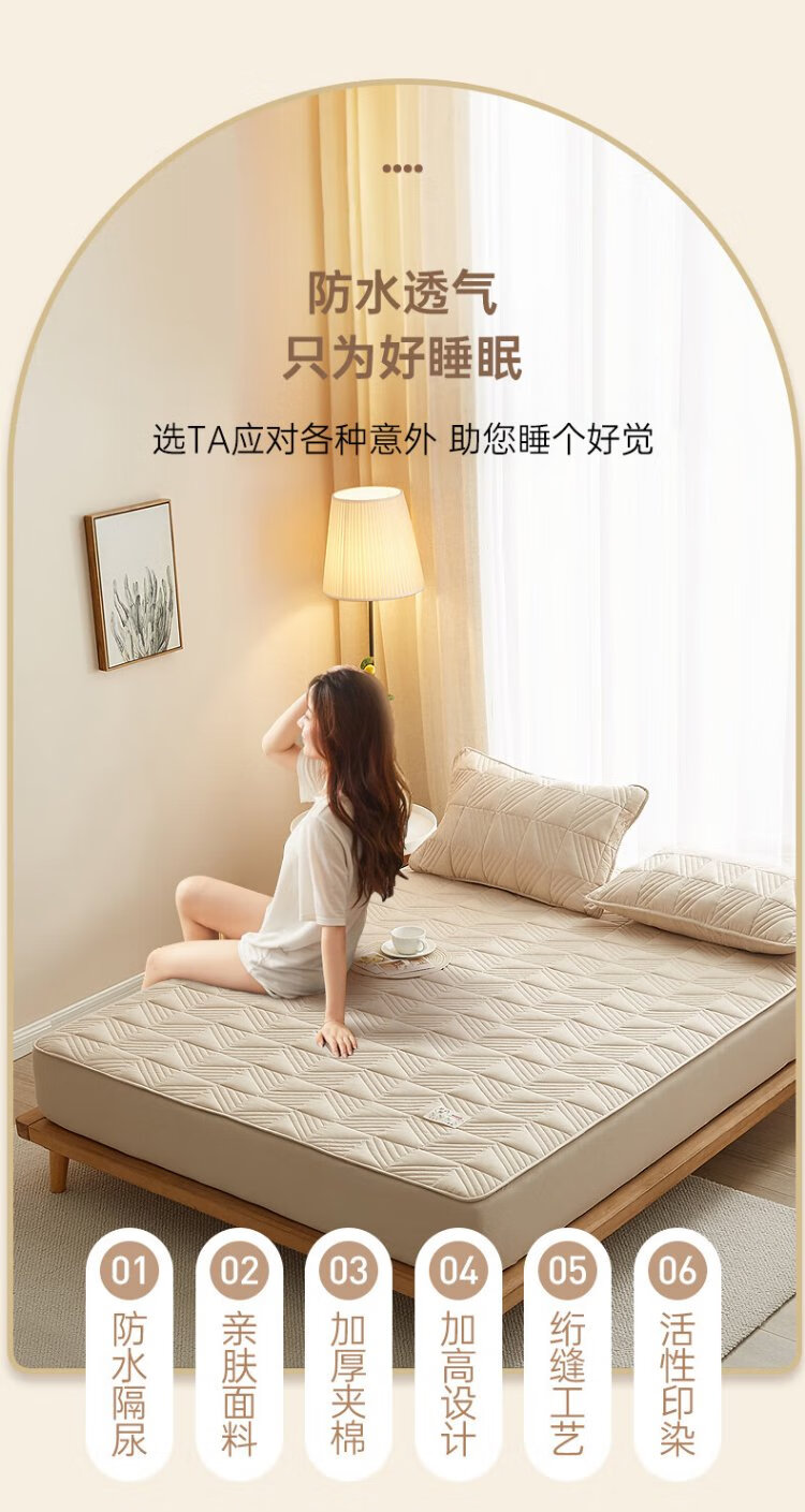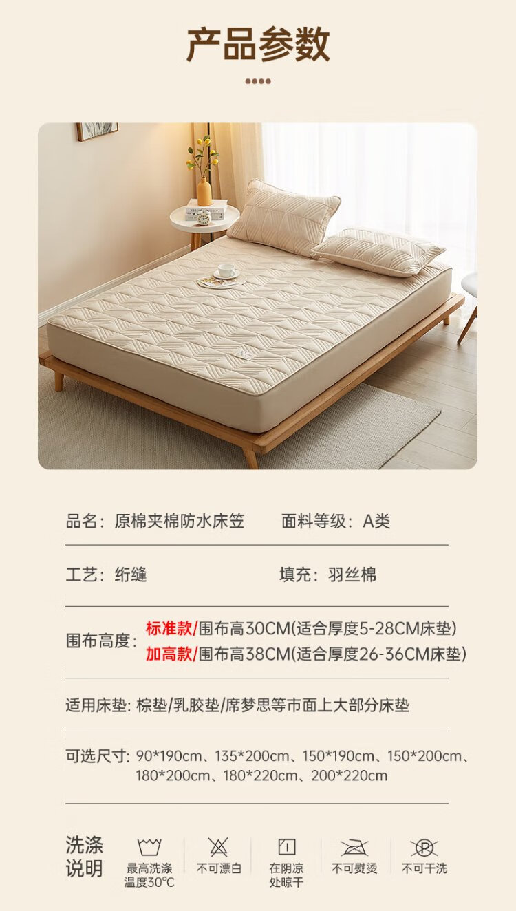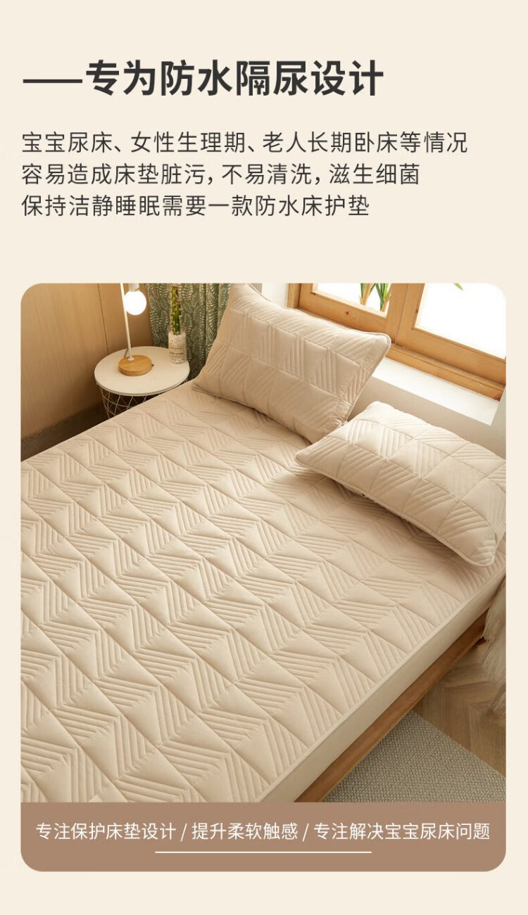 Fitted sheet single-piece bed cover quilted Simmons mattress protector breathable non-slip bed sheet fully covered waterproof urine barrier thickened waterproof raw cotton gray A-grade maternal and infant grade fabric 200x220cm standard style