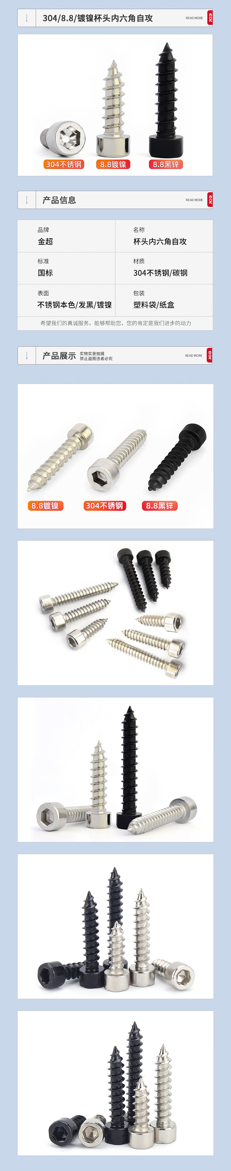Jinchao grade 8.8 black nickel-plated hexagonal self-tapping screws 304 stainless steel audio box speaker screws M2-M6 304-M5*20 (20 pcs)