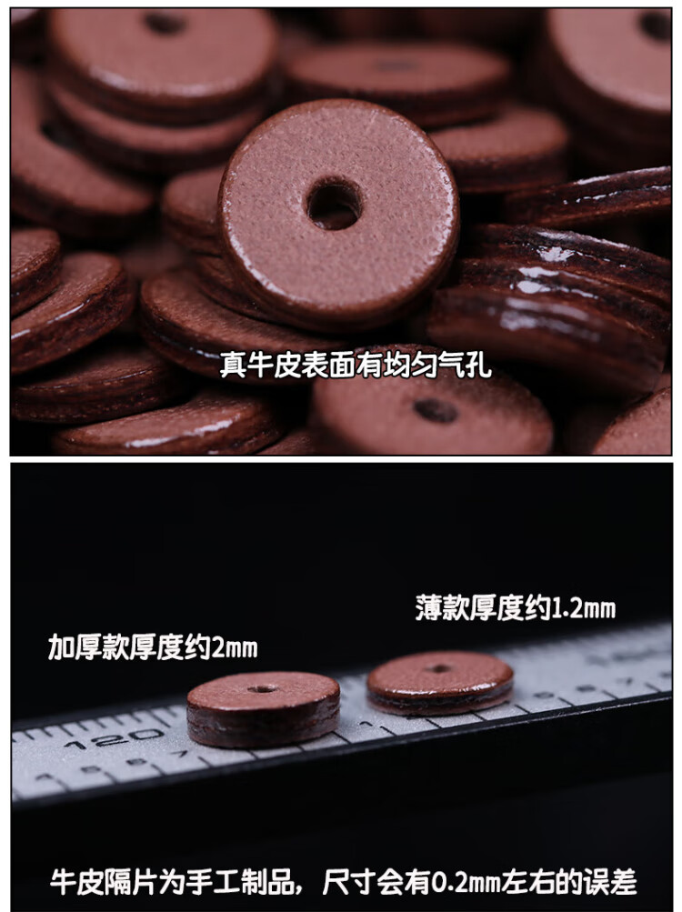 Jingcheng Yipintang double-sided sealing cowhide separator high-end leather gasket double-layer edge sealing Wenwan Diamond Star and Moon Bracelet Necklace Accessories Brown 6mm/1.2 Thick/Hole 1.7 20 pieces