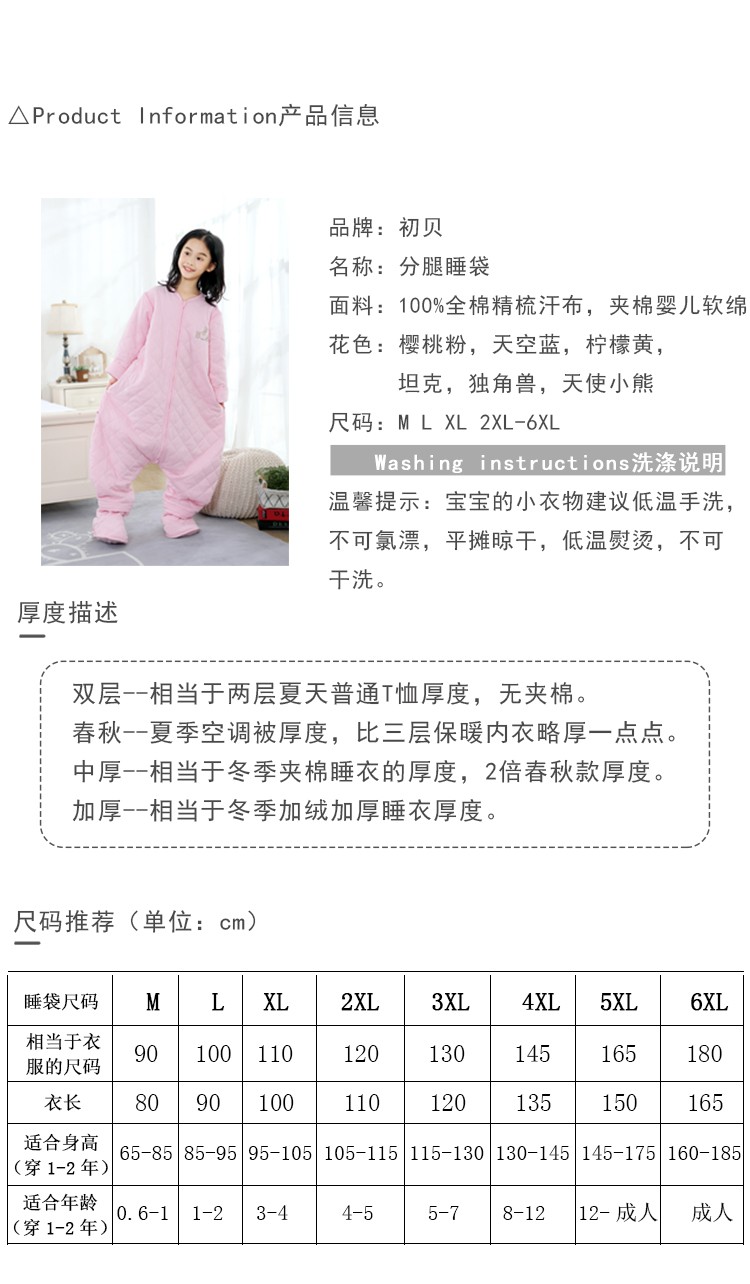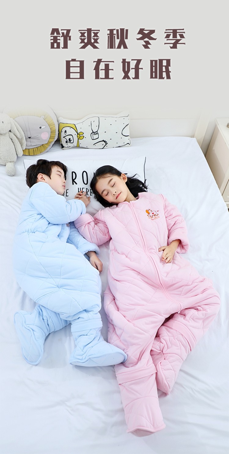 Chubei (CHUBEI) Children's Sleeping Bag Baby Primary School Boys and Girls Spring Autumn and Winter One-piece Pajamas Split Leg Anti-Kick Quilt Spring and Autumn With Leg Covers Red 3XL Recommended Height 115-125 (130 Code)