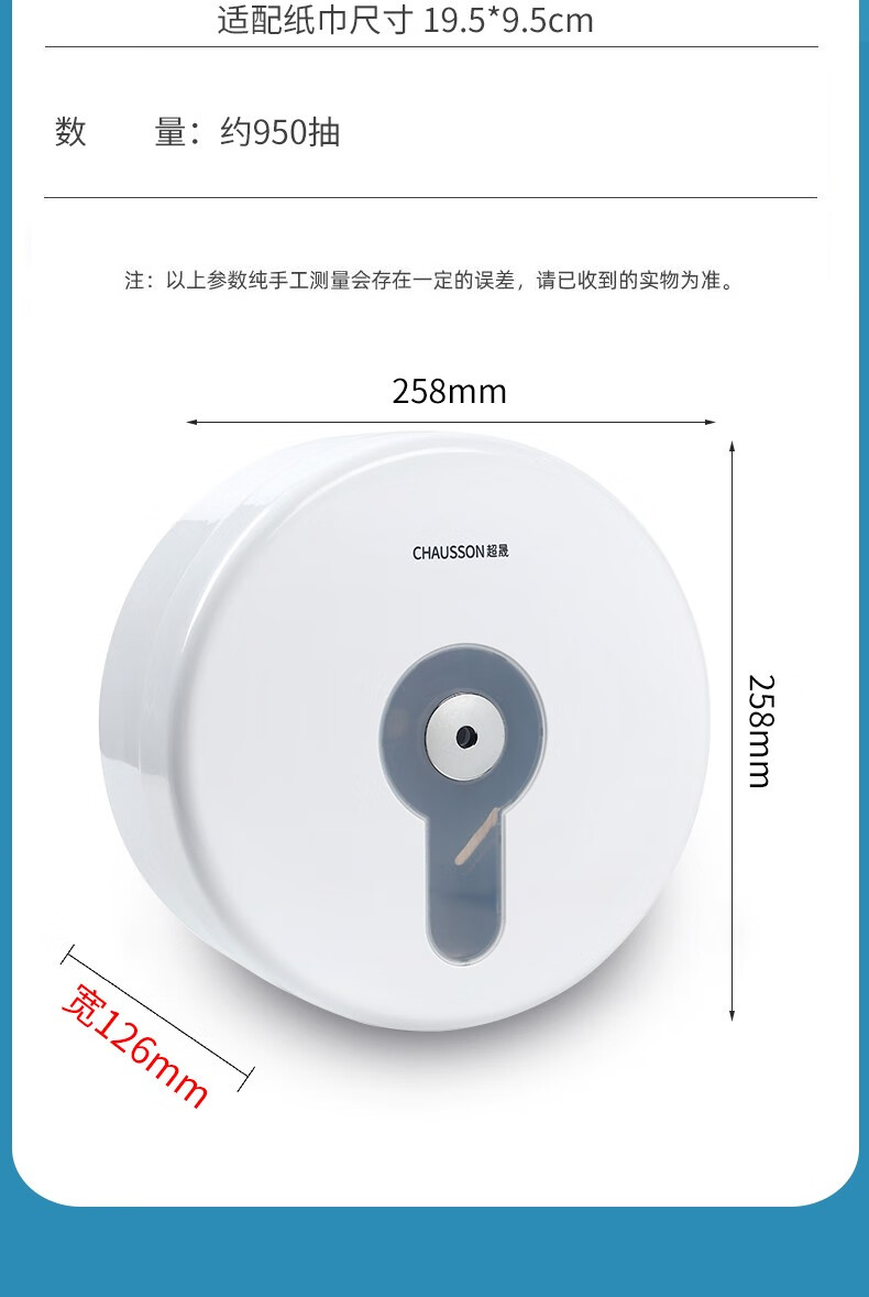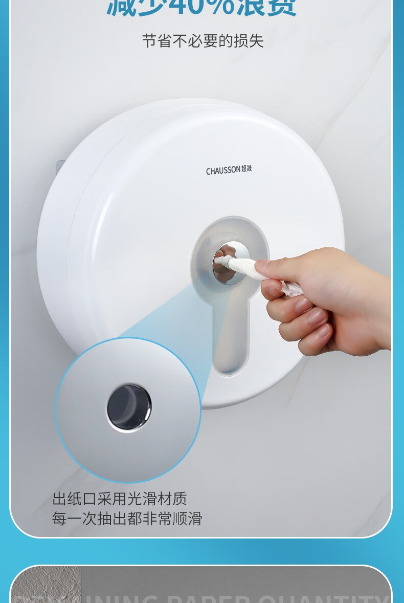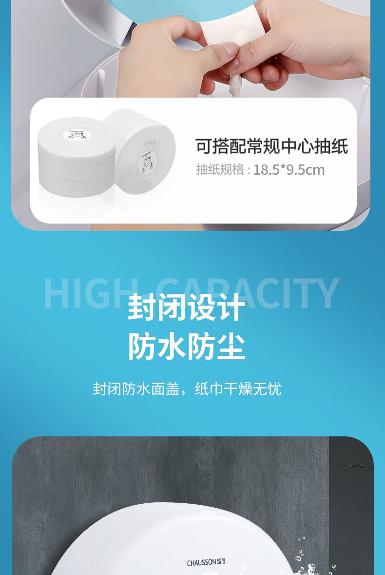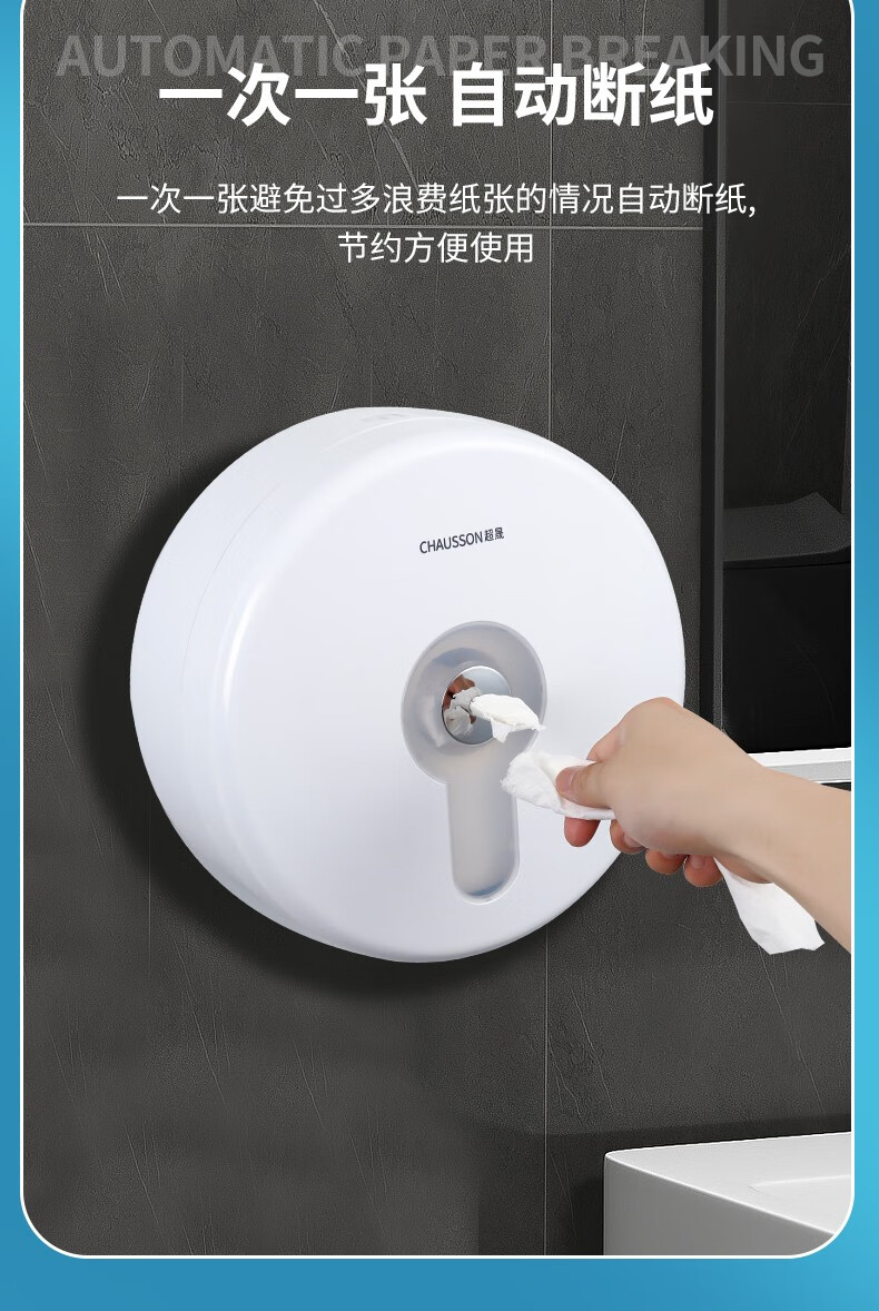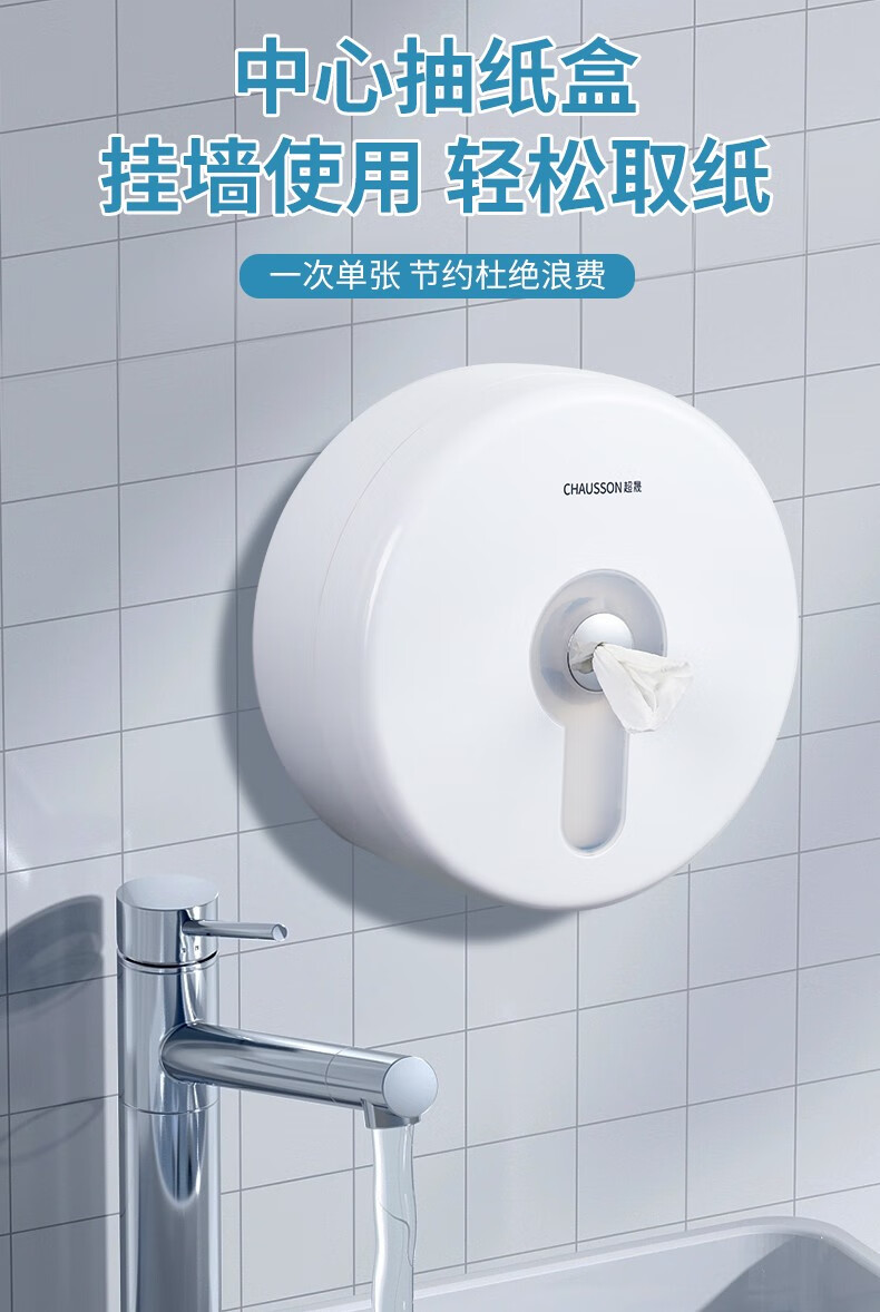 CHAUSSON center-drawing large roll paper box hotel bathroom waterproof paper commercial large tissue box toilet wall-mounted punch-free center-drawing special paper * 12 rolls full box (950 rolls