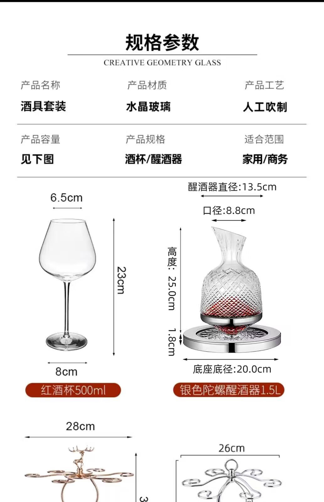 MARTIGUES Burgundy red wine glass set home handmade crystal glass wine goblet 500ml Burgundy glass 2 pieces