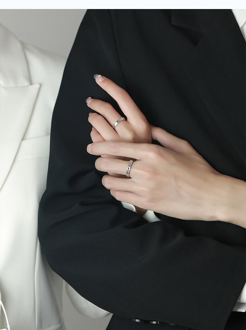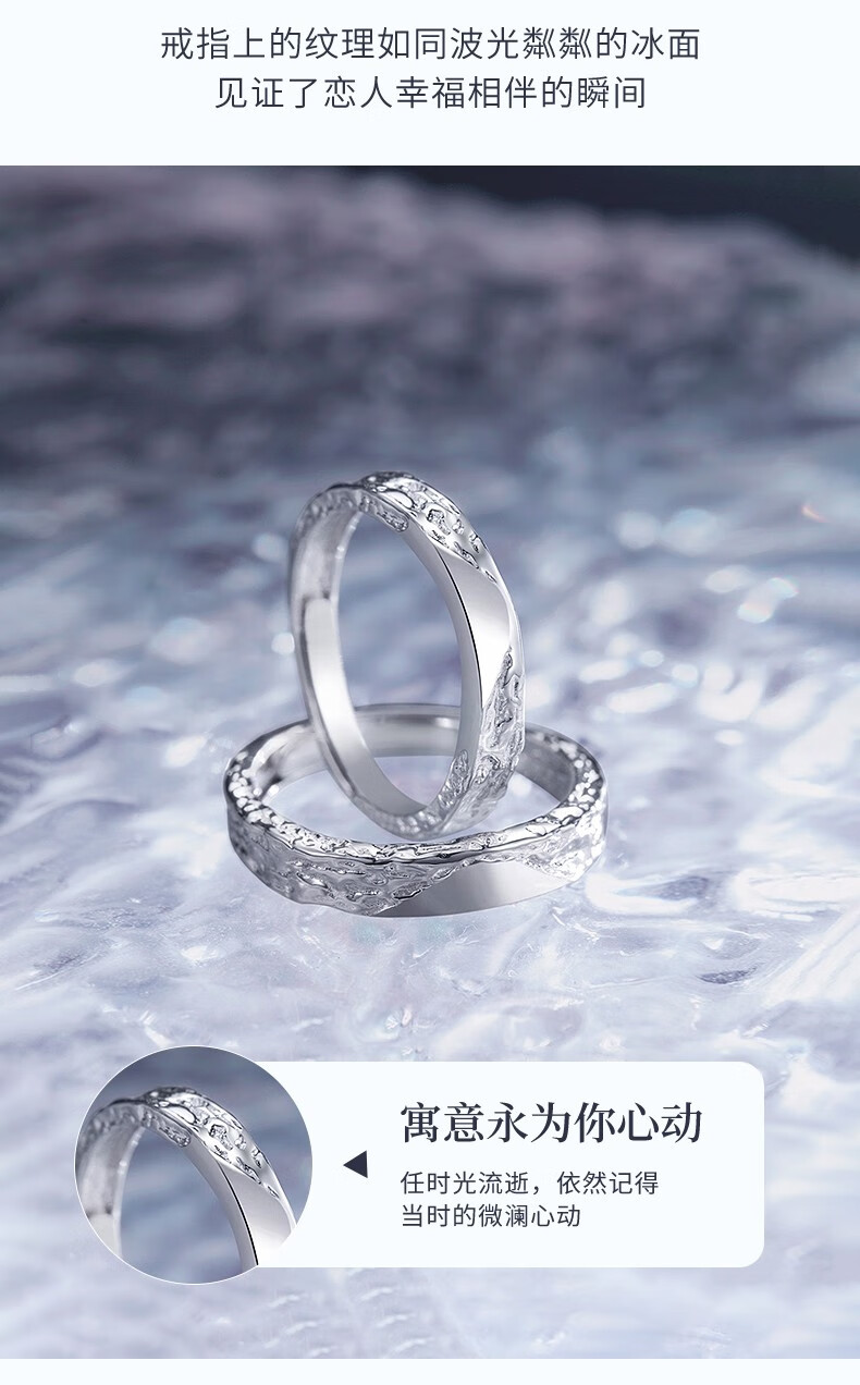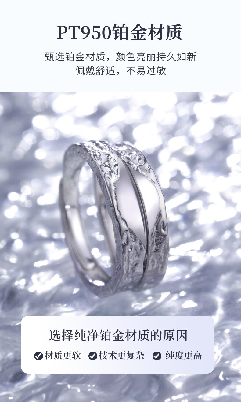 Chinese gold crushed ice platinum ring for women, platinum wedding couple ring, birthday gift for girlfriend and wife, platinum glacier couple ring - one pair