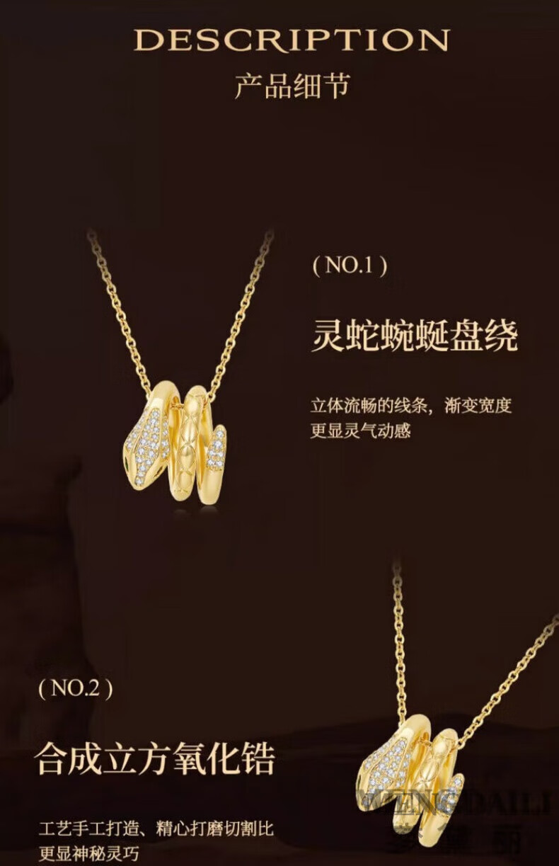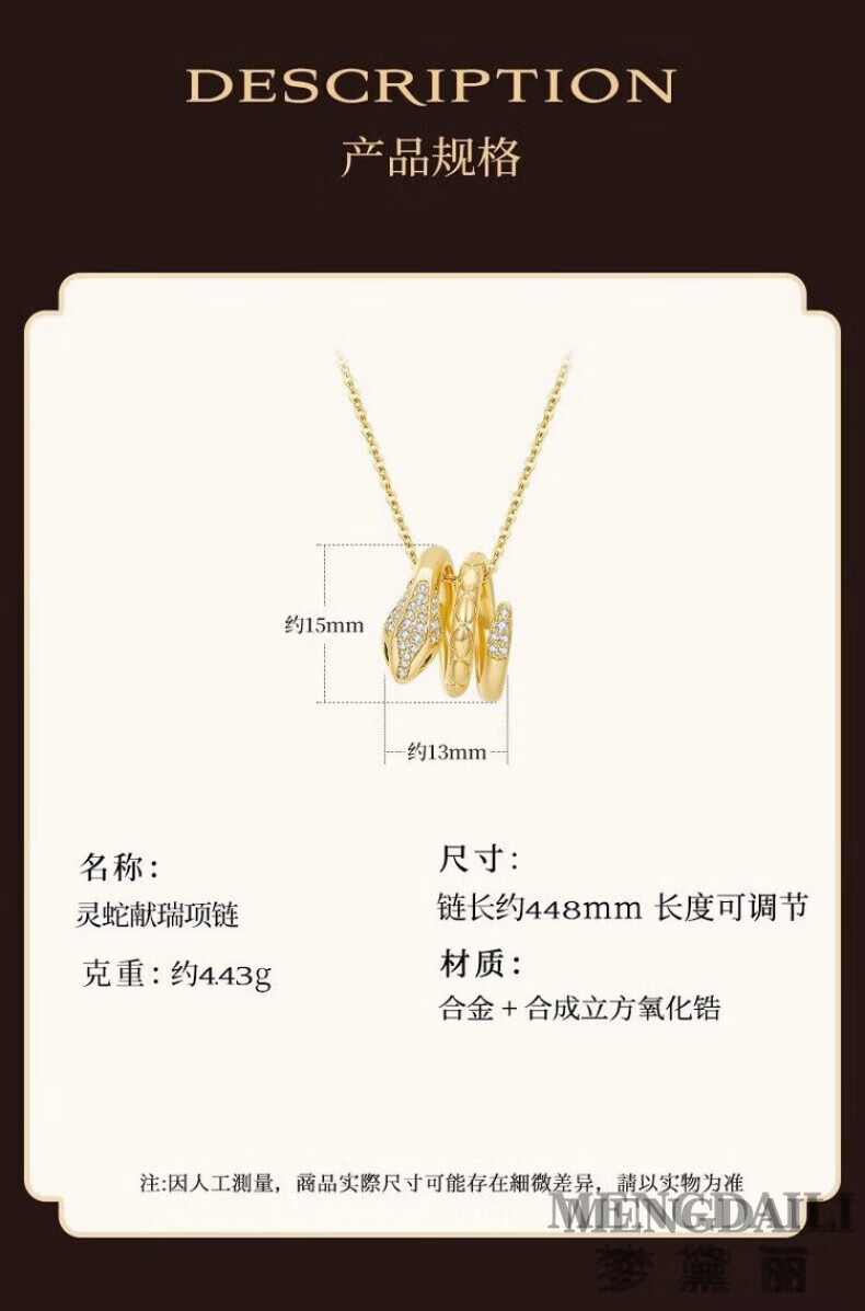 MENGDAILI Snake Necklace Women's New Golden Pendant Niche Clavicle Chain Birthday Gift for the Year of the Life Snake Necklace