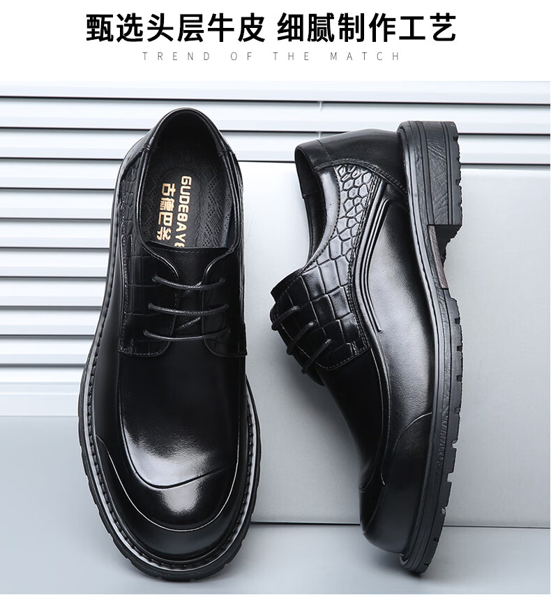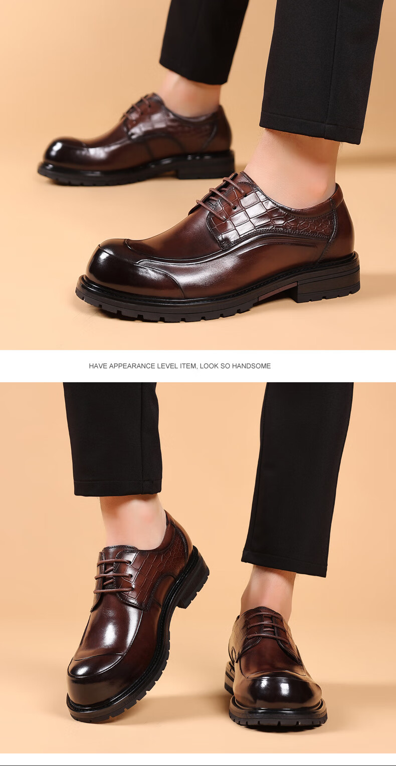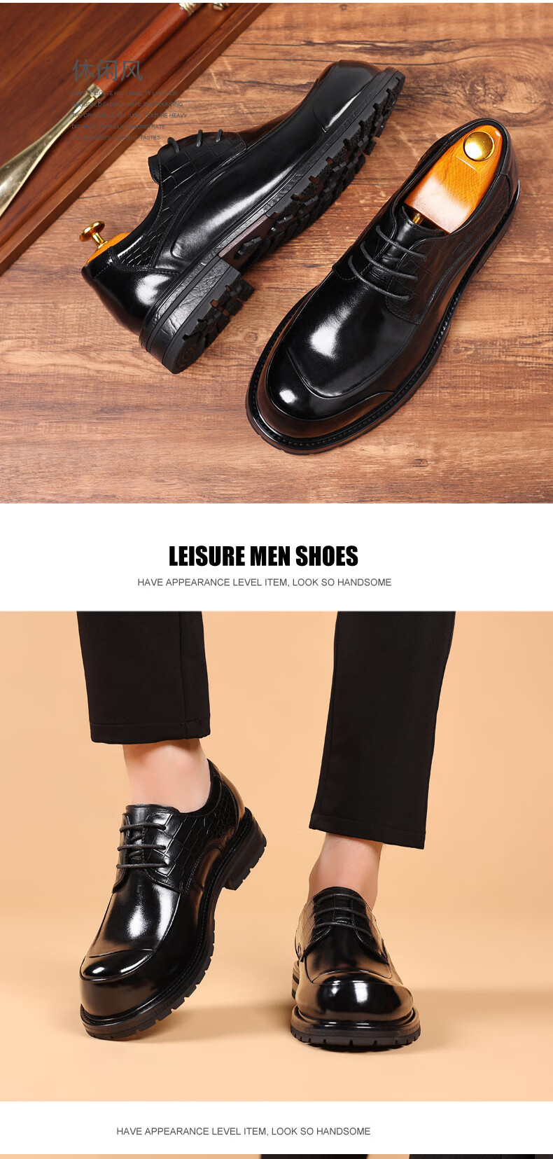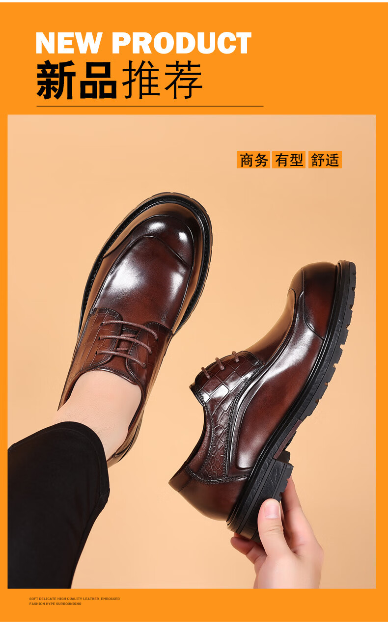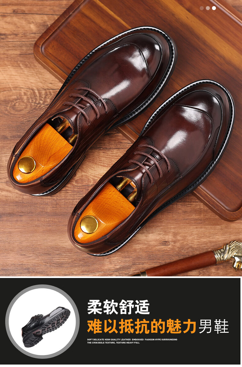 Goodba Ye casual large leather shoes for men genuine leather business men's leather shoes toe layer cowhide formal shoes breathable men's shoes Derby shoes for men brown 42