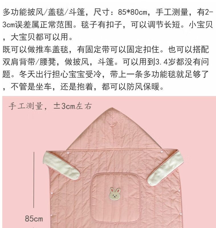 CLCEY children's cloak autumn and winter windproof blanket stroller cover blanket baby baby bag waist stool windproof baby cloak warm and thickened yellow 85*80cm